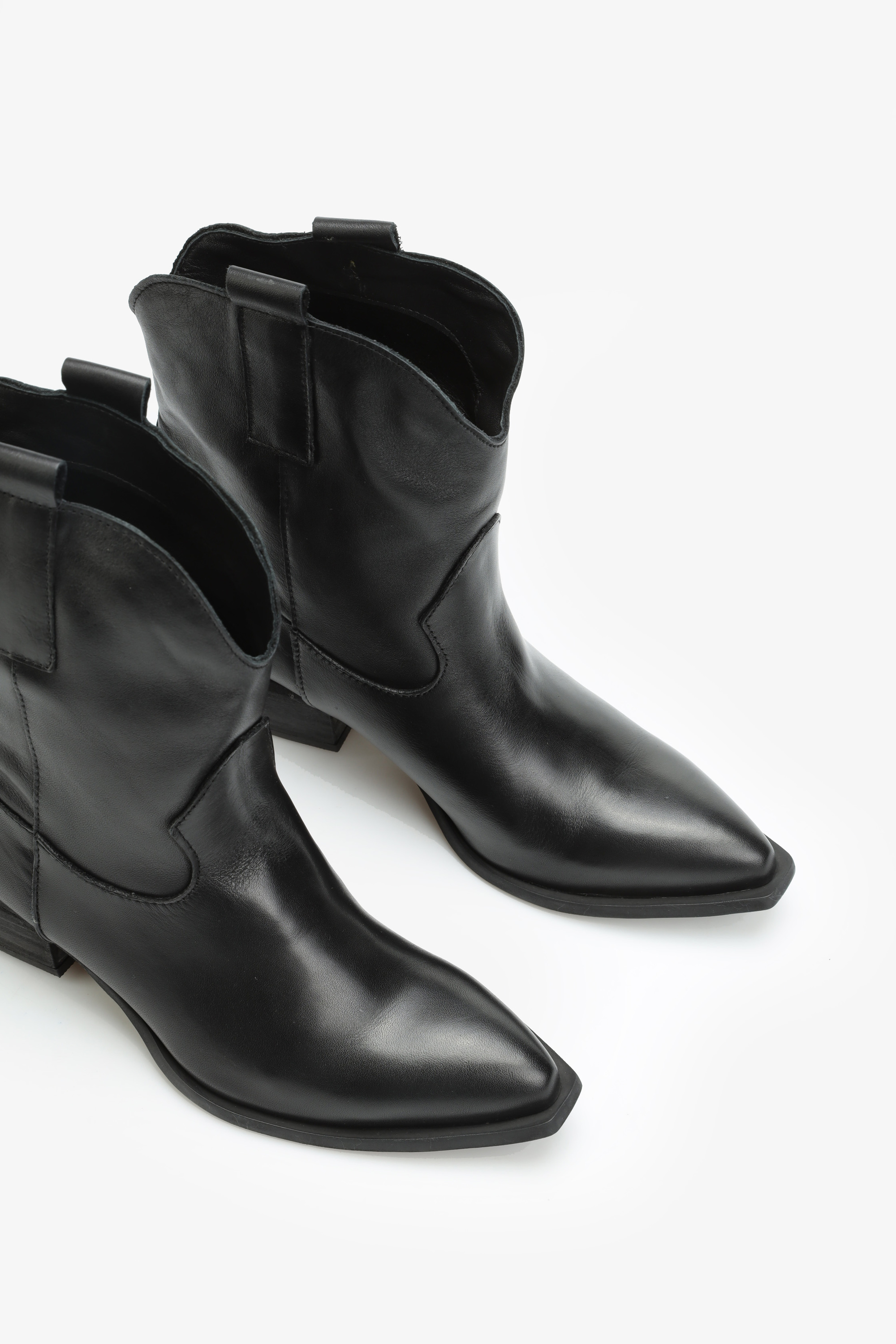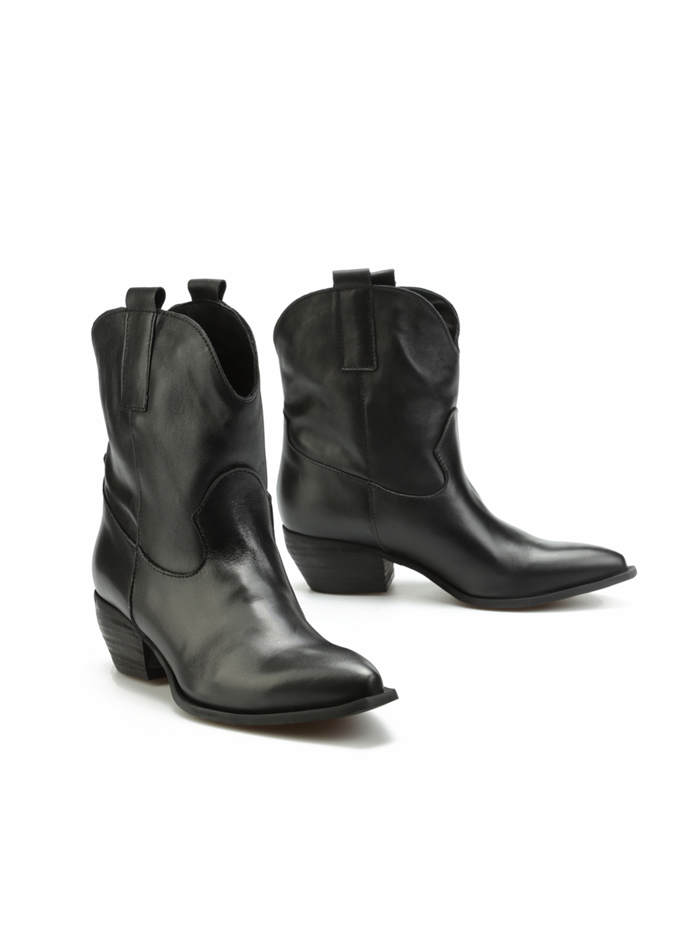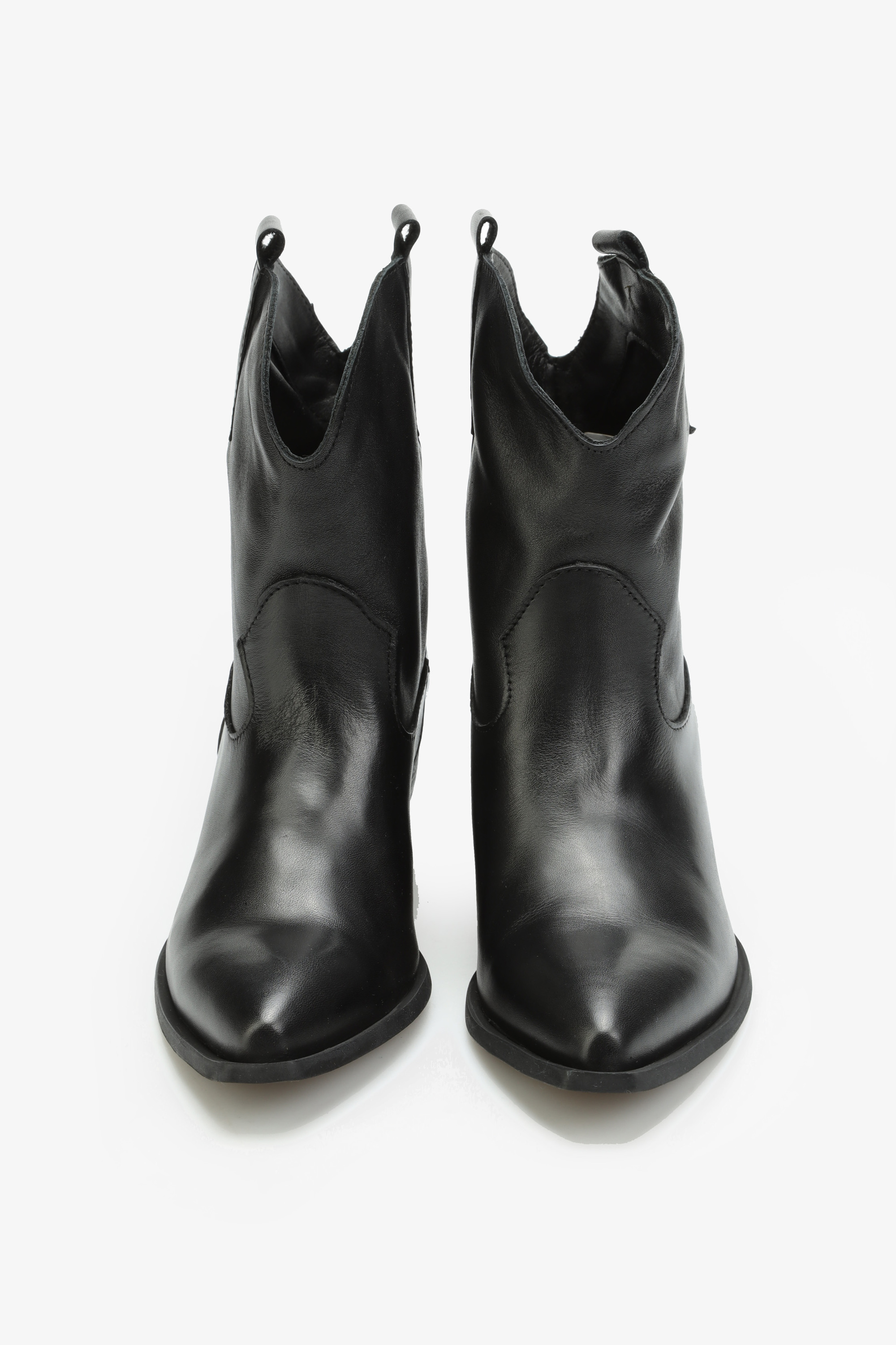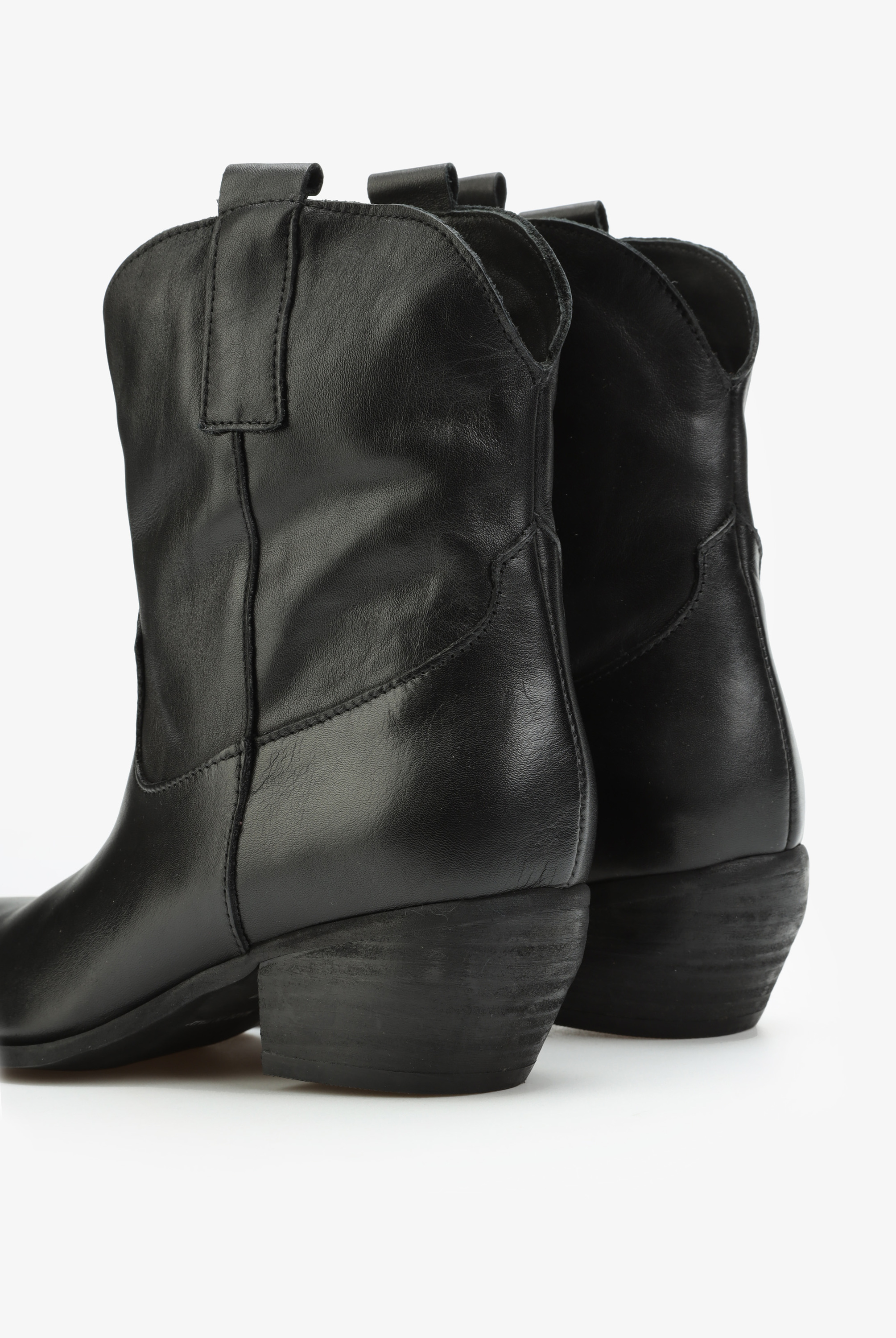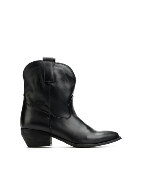 Krótkie, skórzane kowbojki HEGO'S Milano to model prosto z włoskich ulic. Cholewka za kostkę w czarnym kolorze wykonana jest z naturalnej skóry licowej. Charakterystyczny dla tego fasonu ścięty obcas i nosek w szpic idealnie wpisują się w Trendy sezonu. Prosty fason w klasycznym kolorze będzie doskonałym uzupełnieniem kapsułowej garderoby kobiety.