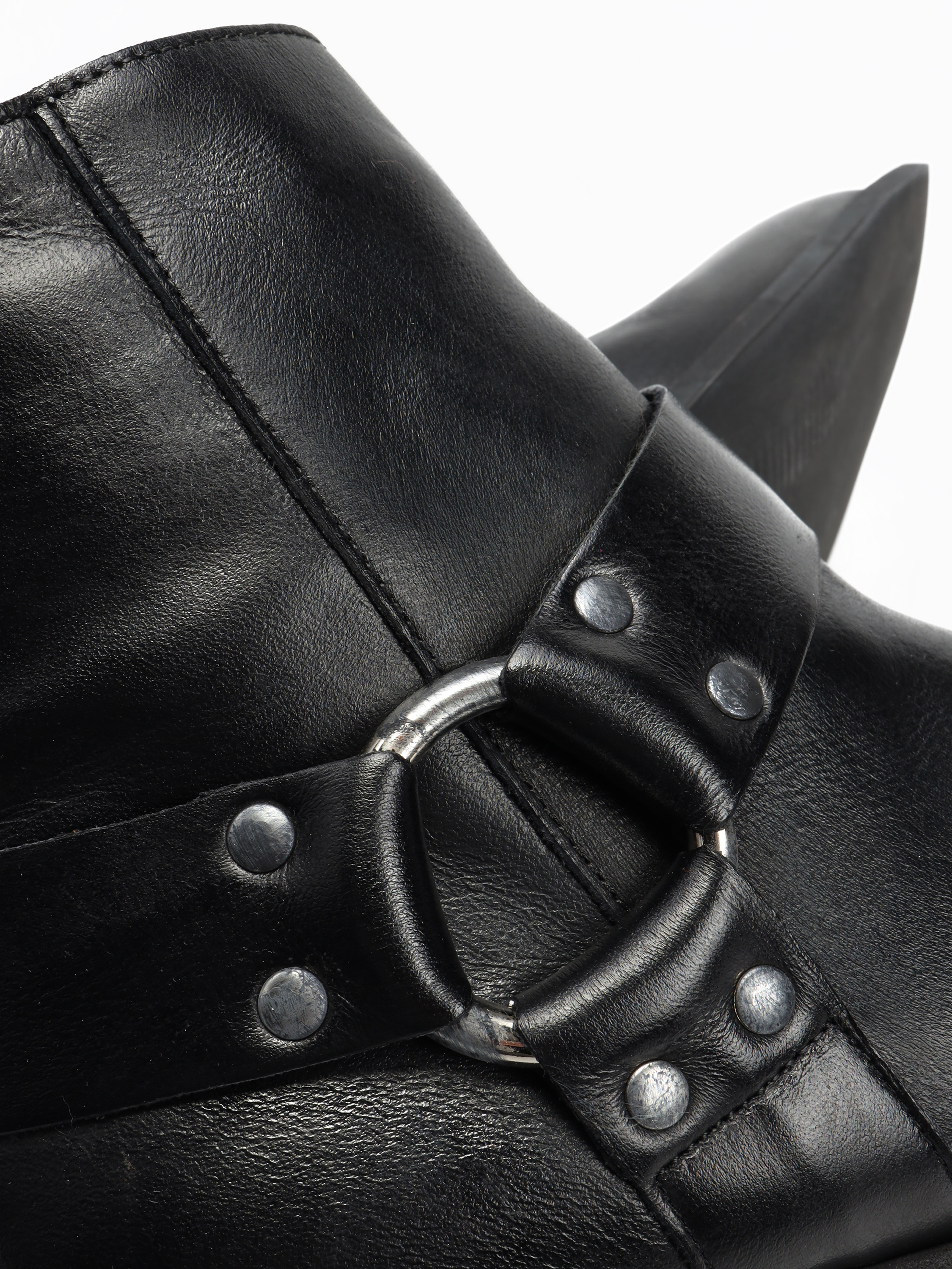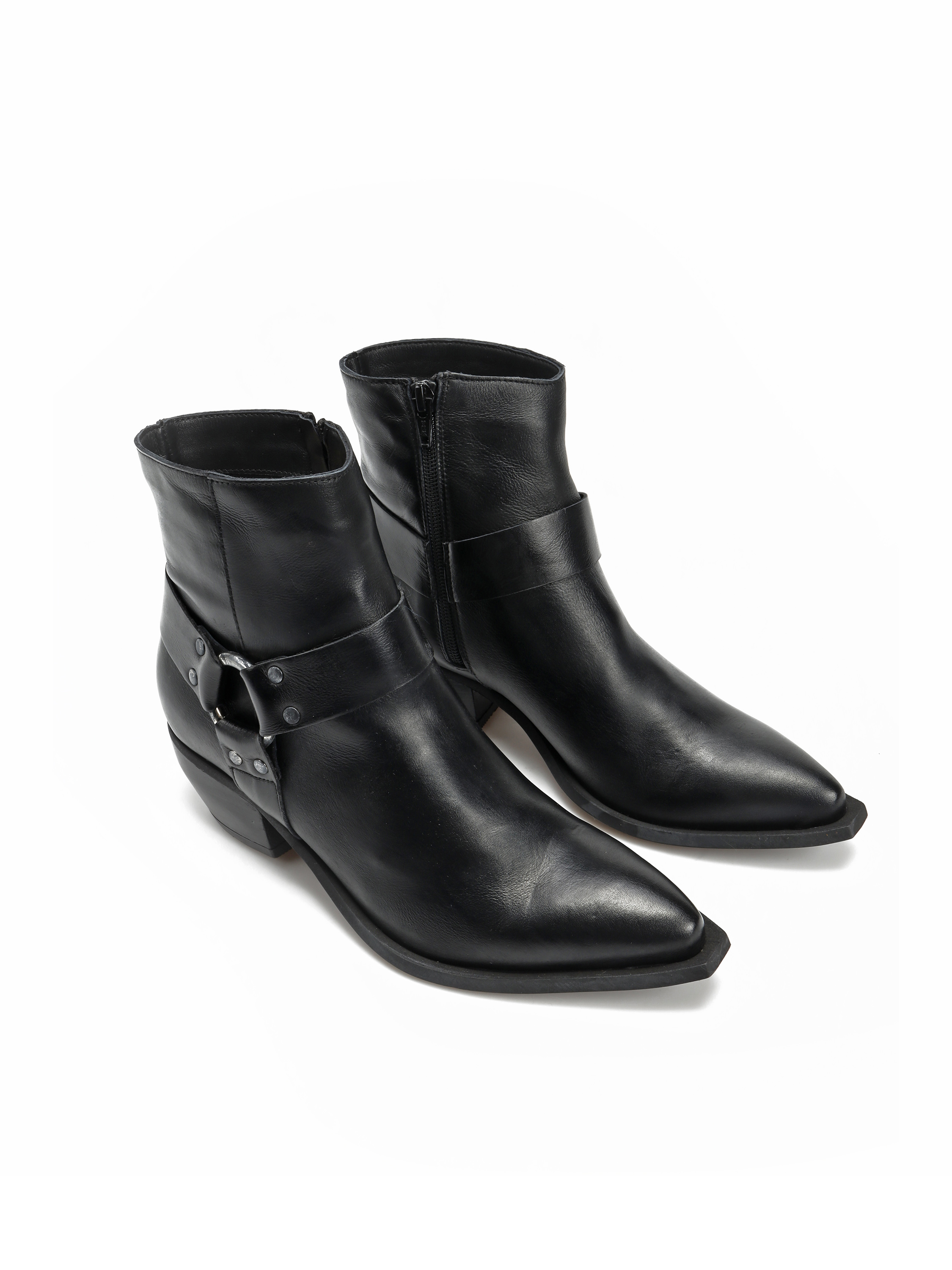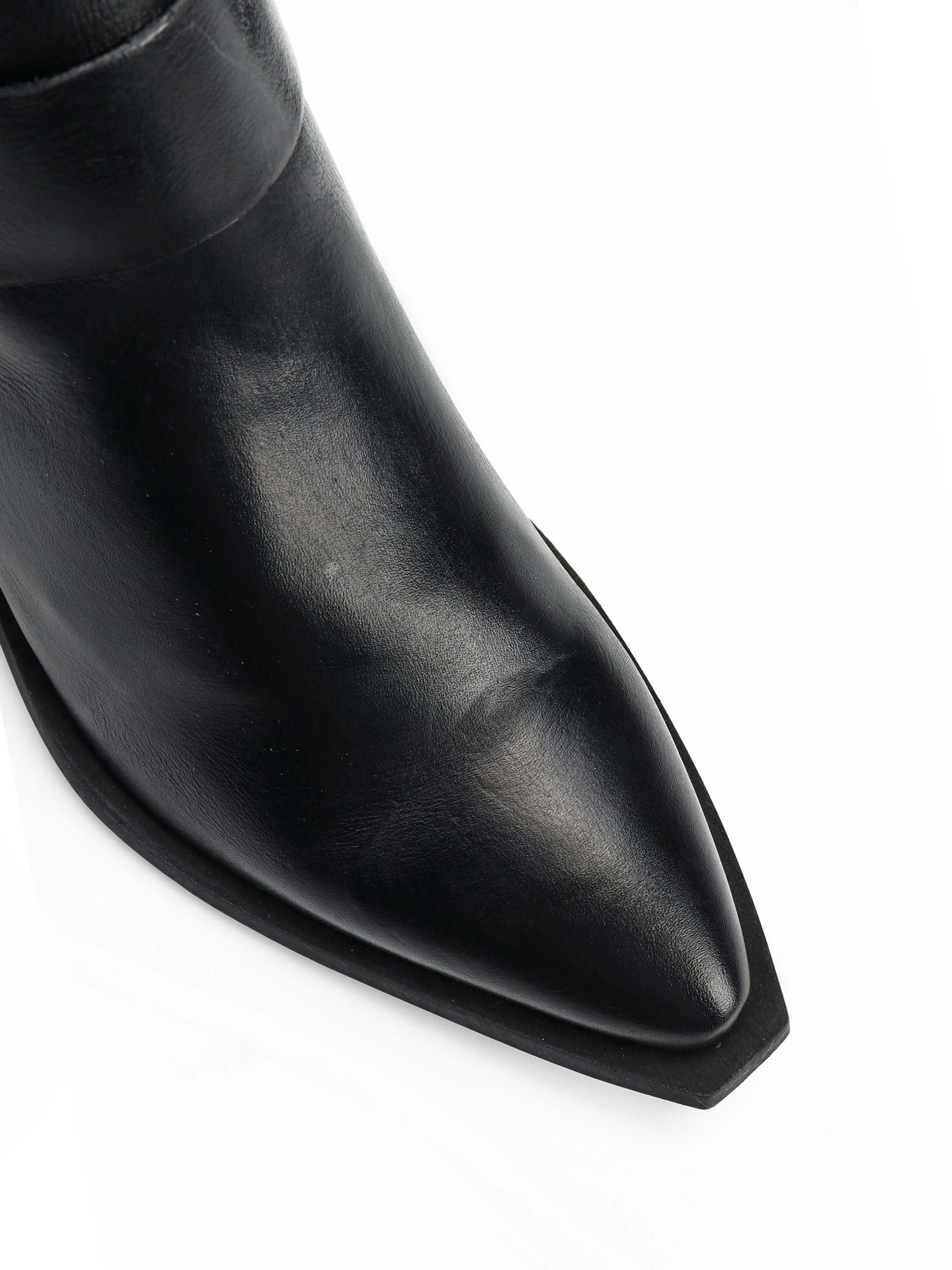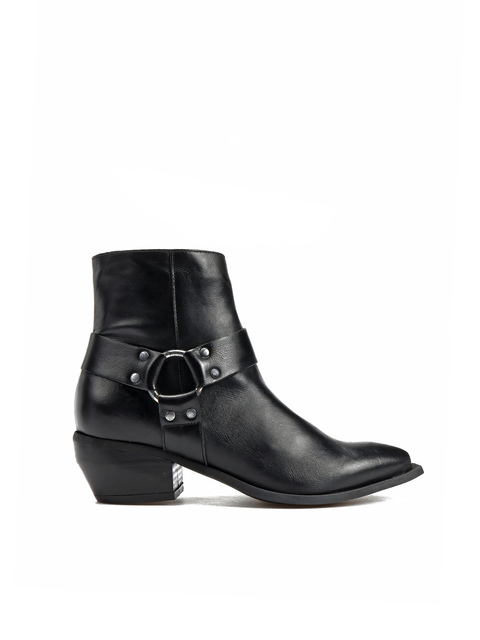 Krótkie kowbojki to gorący Trend sezonu. Wsuwana cholewka w kolorze czarnym wykonana jest z naturalnej skóry . Charakterystyczny dla tego fasonu ścięty obcas i nosek w szpic wyróżniają ten model.