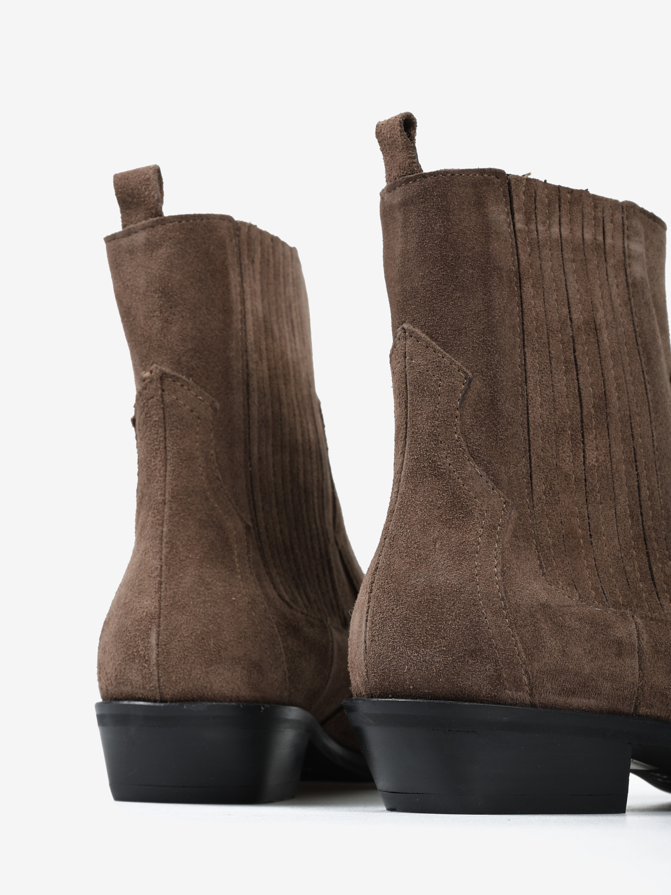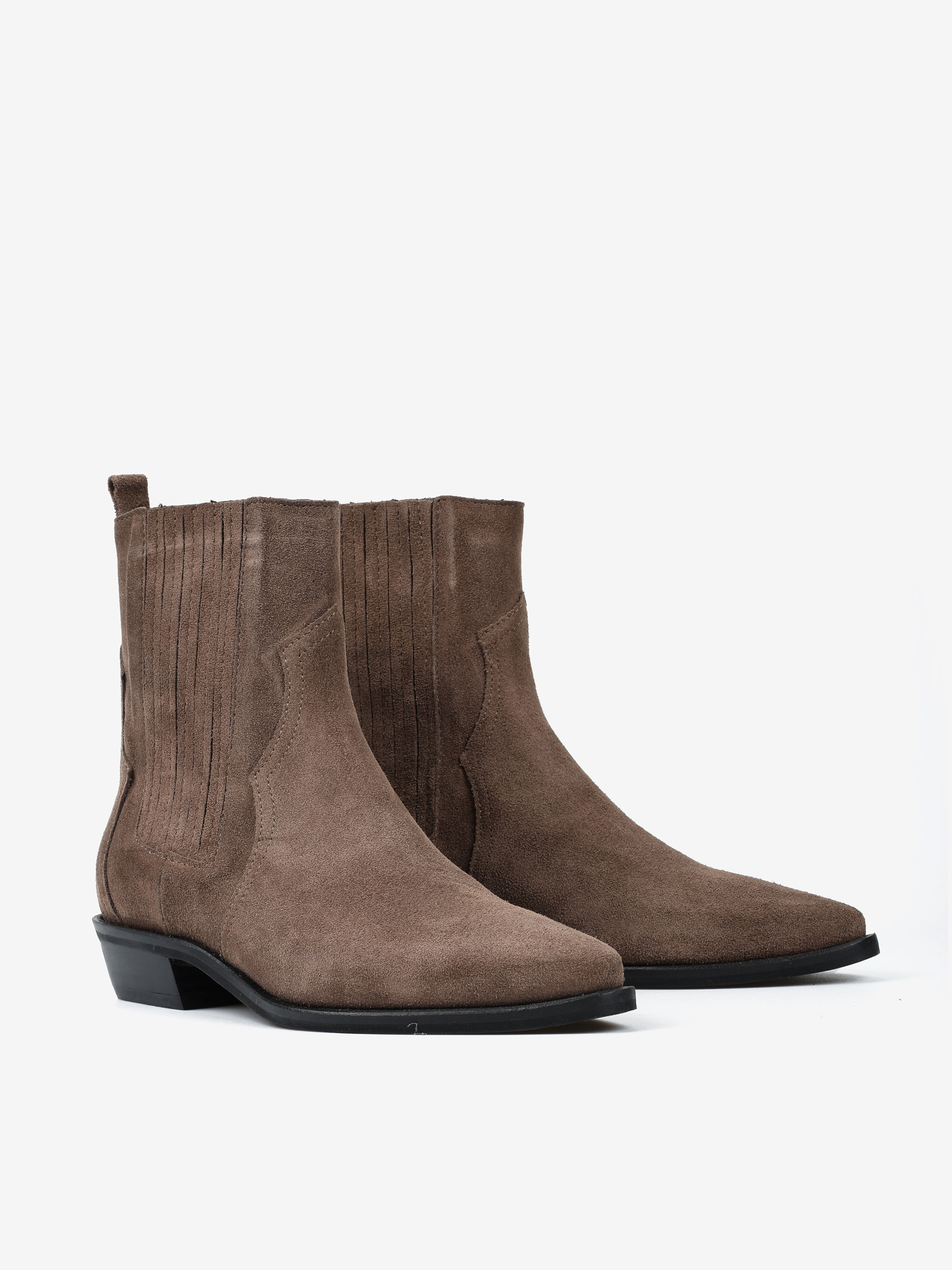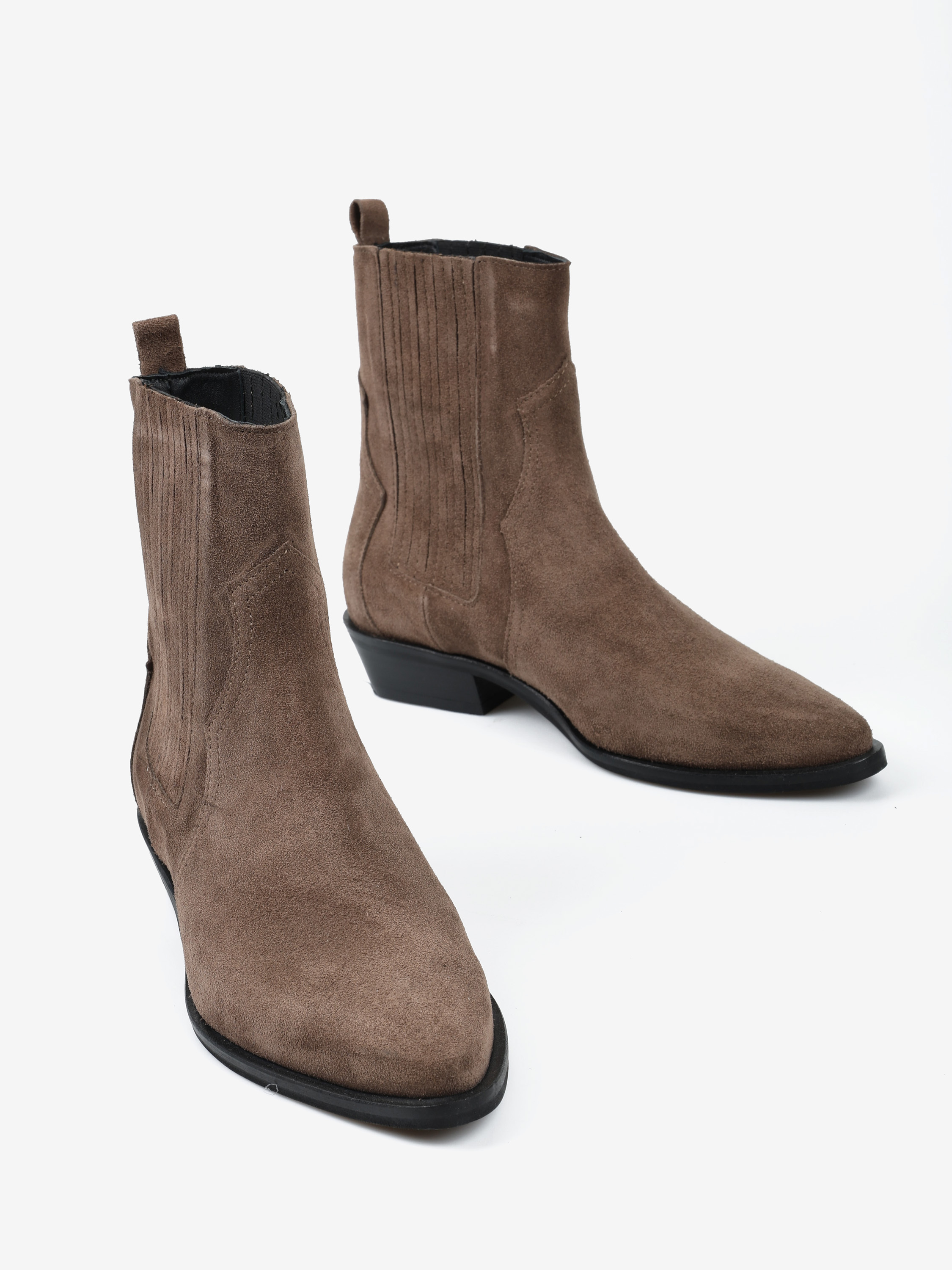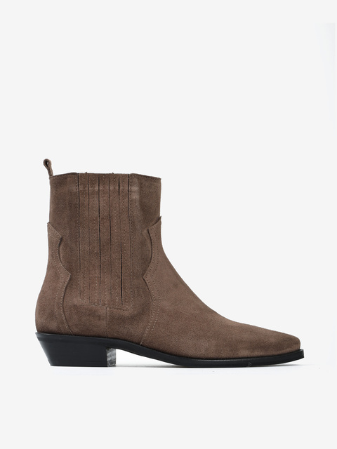 Klasyczne kowbojki wykonane z zamszu w kolorze taupe.