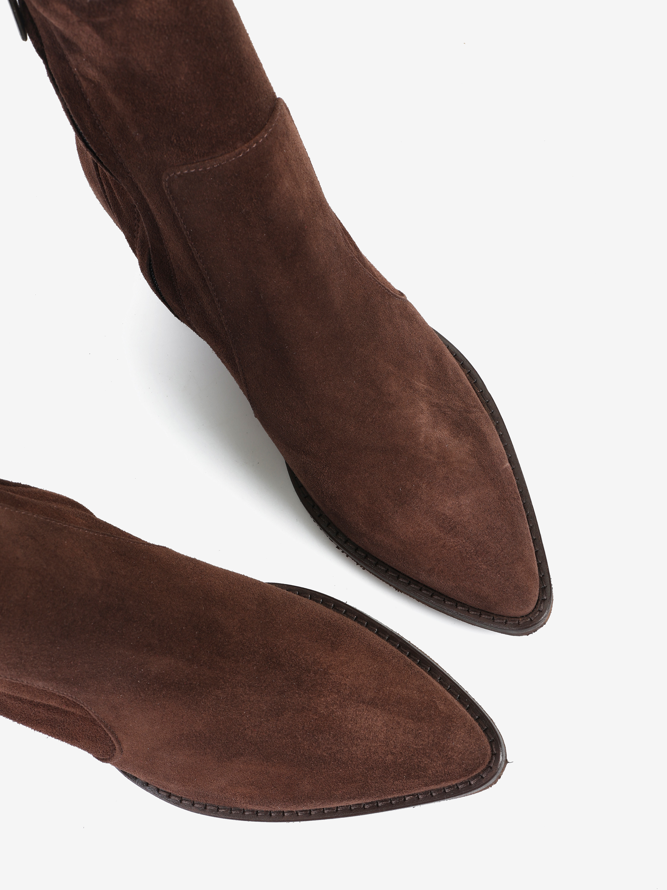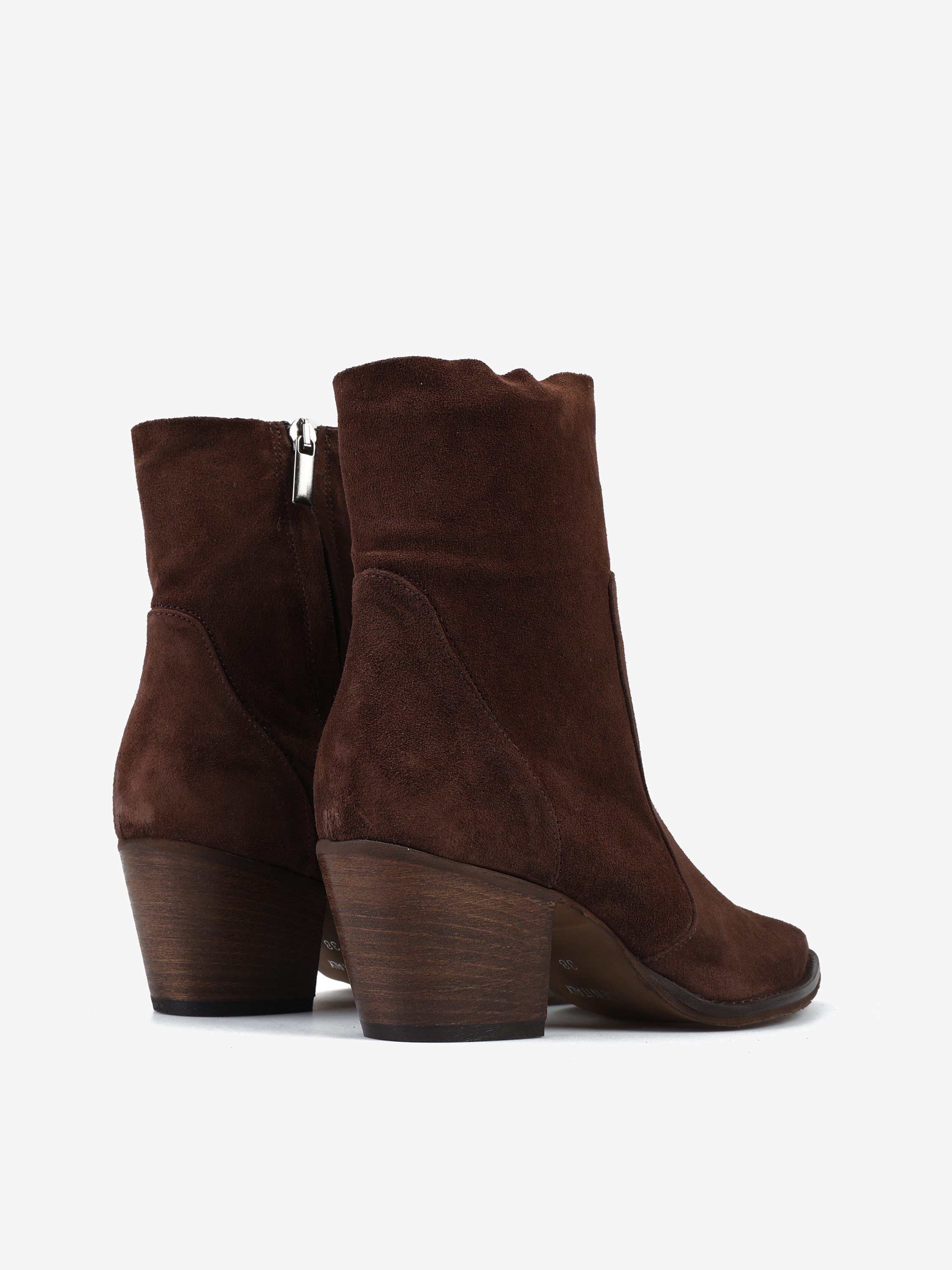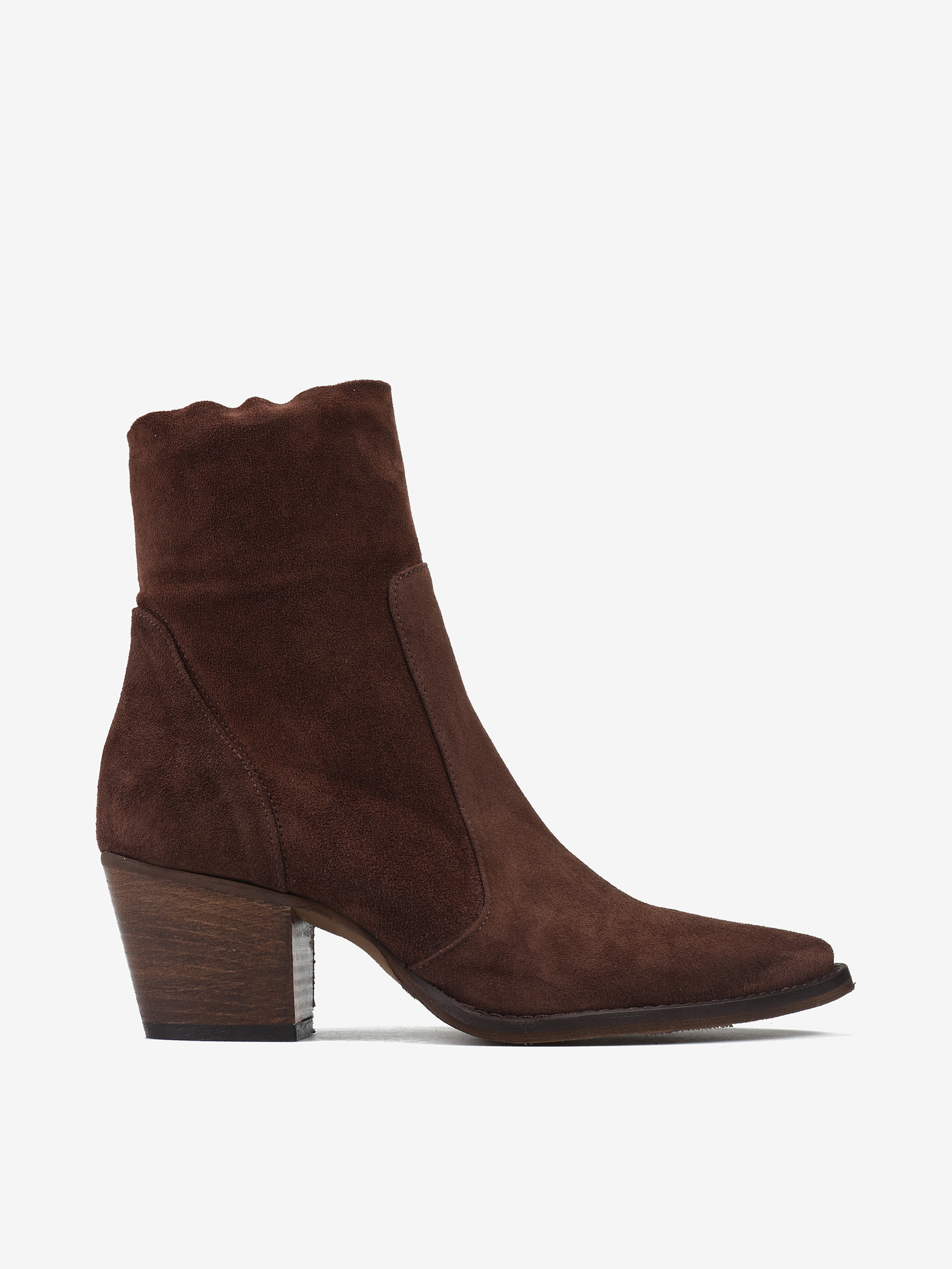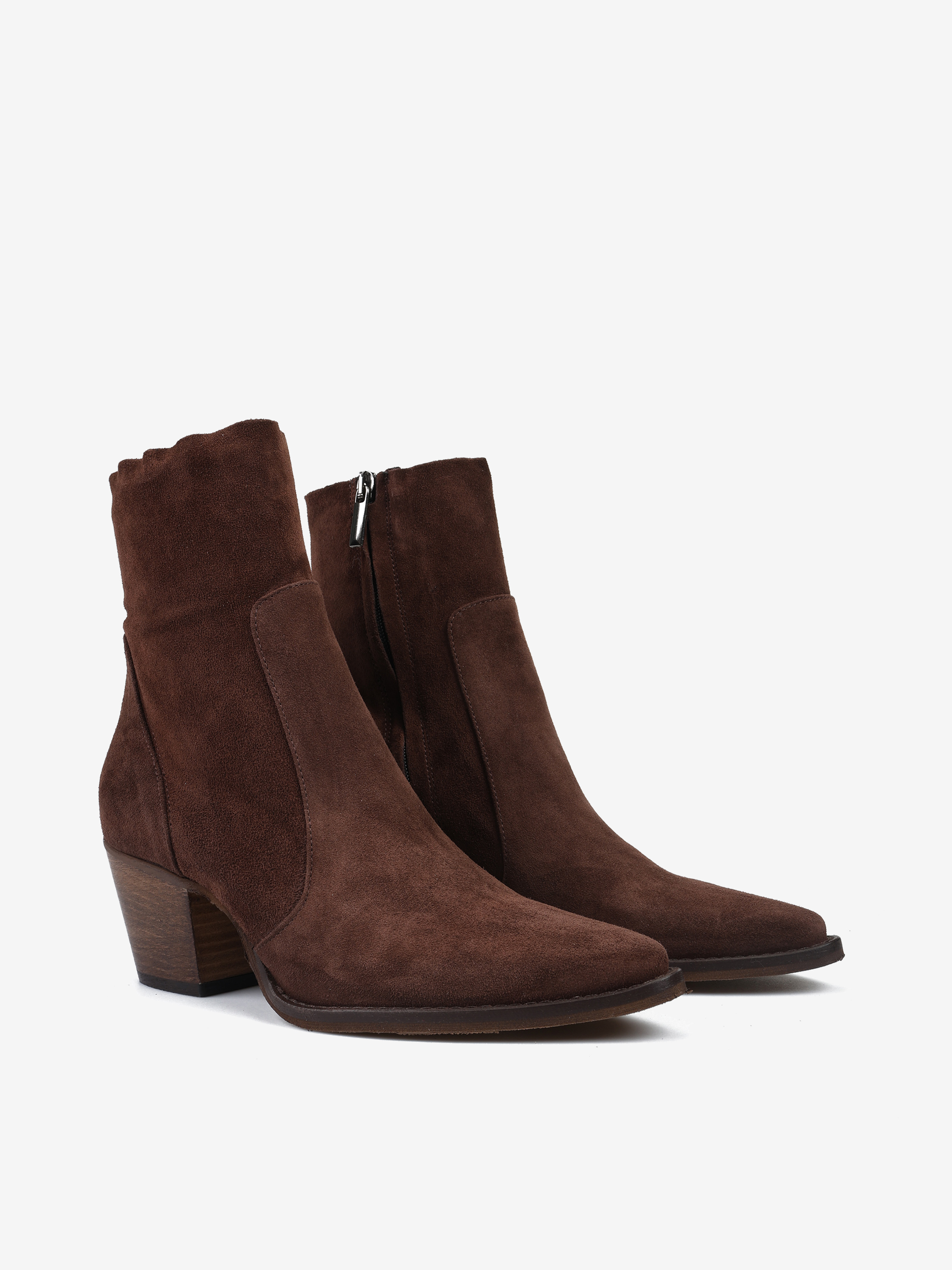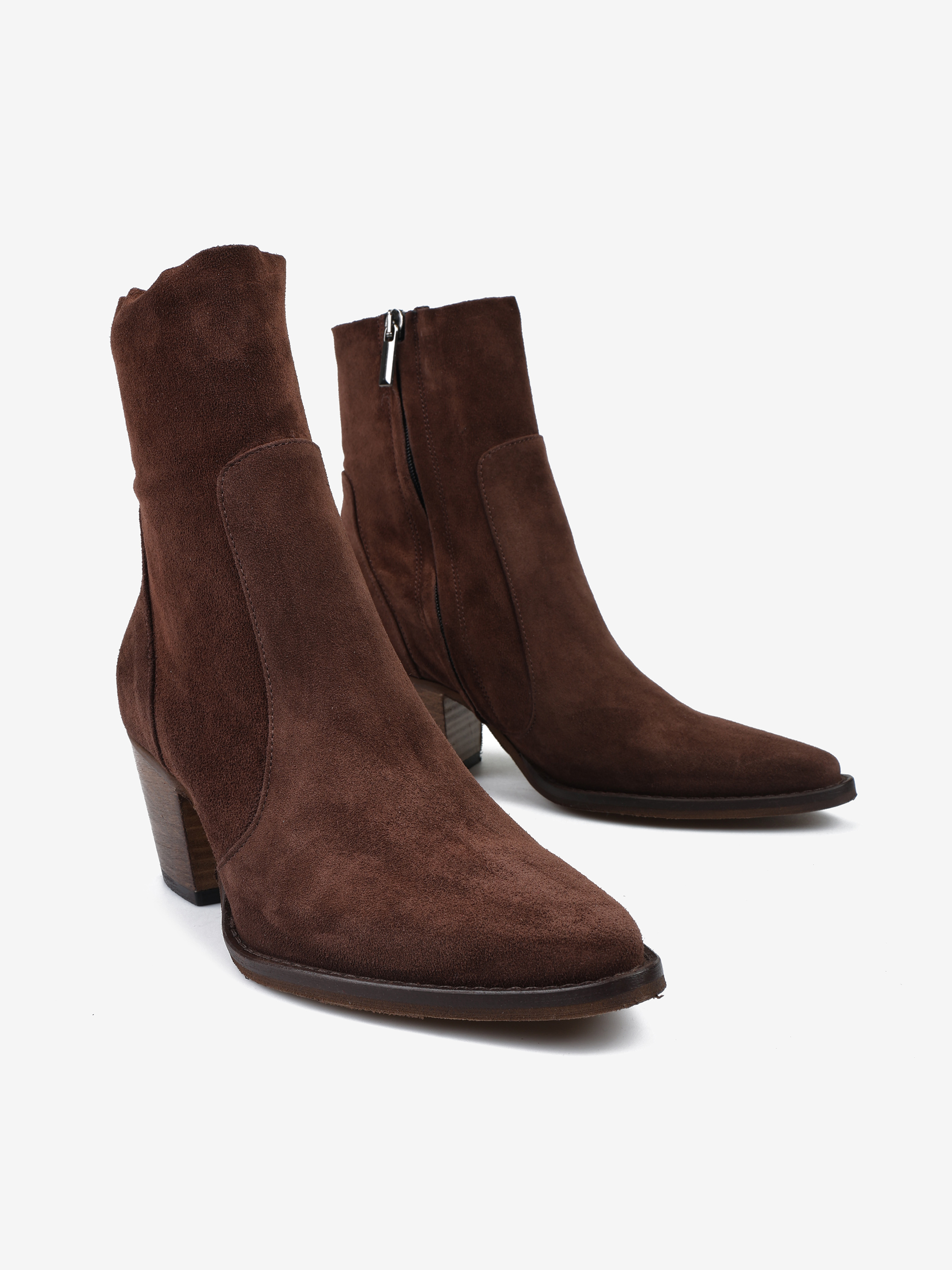 Kowbojki na wysokim obcasie. Zamszowe przeszycia i zapinanie na zamek.