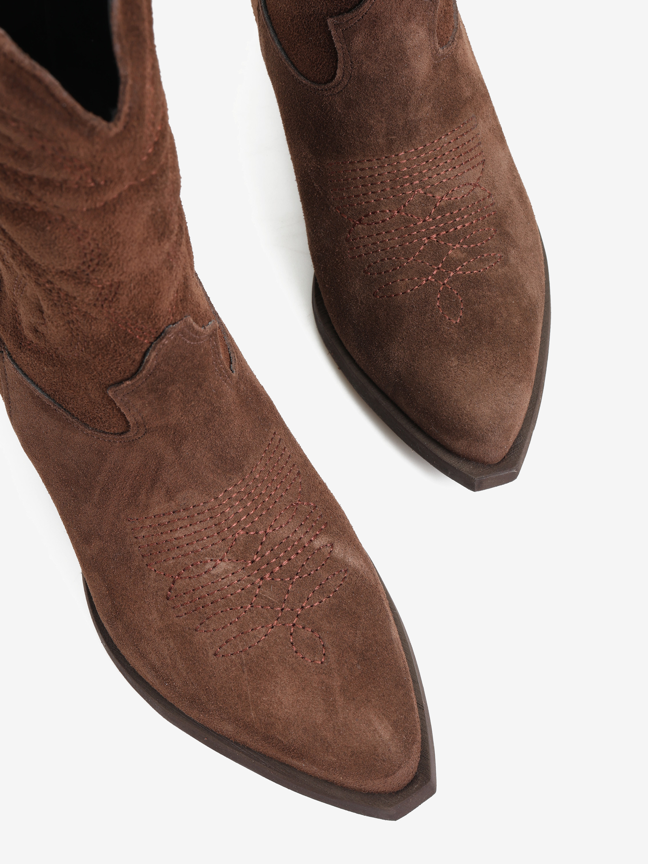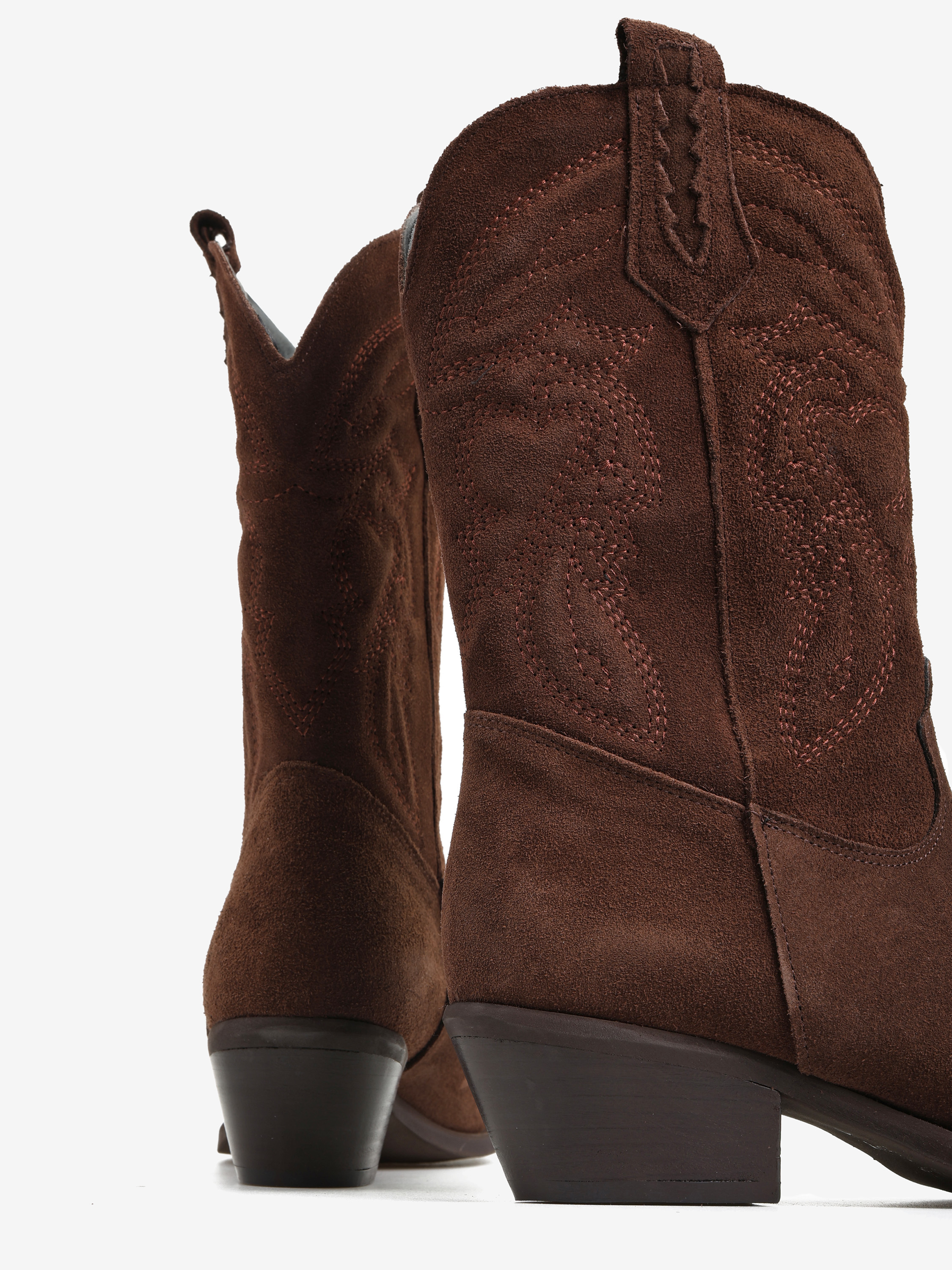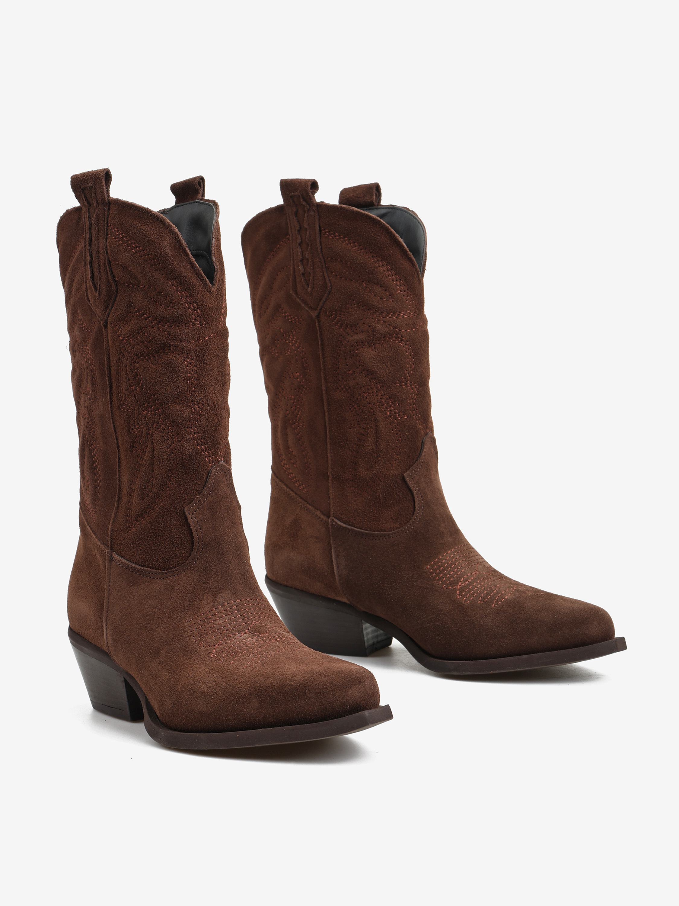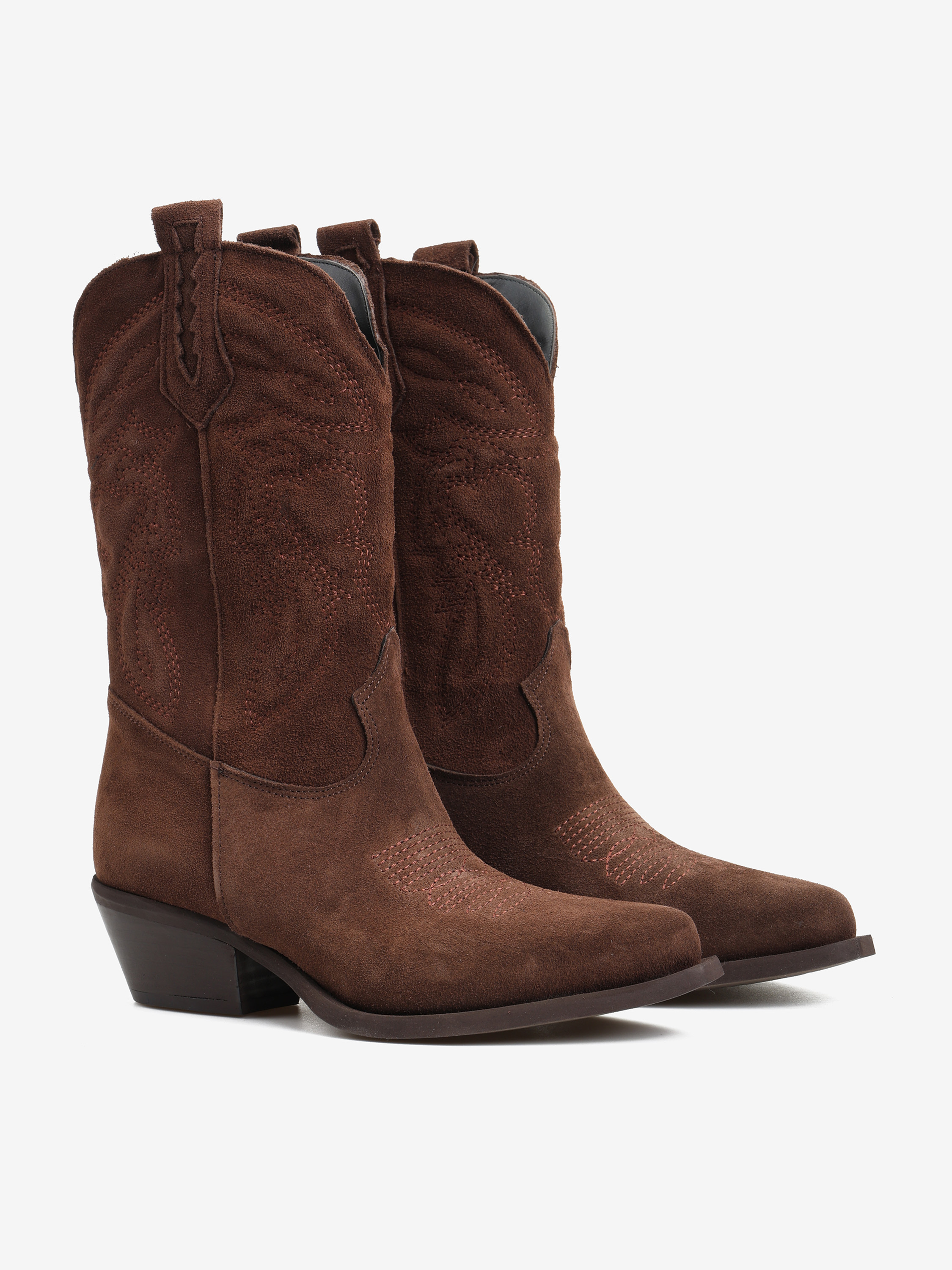 Klasyczne kowbojki z noskami w szpic i monochromatycznym haftem.