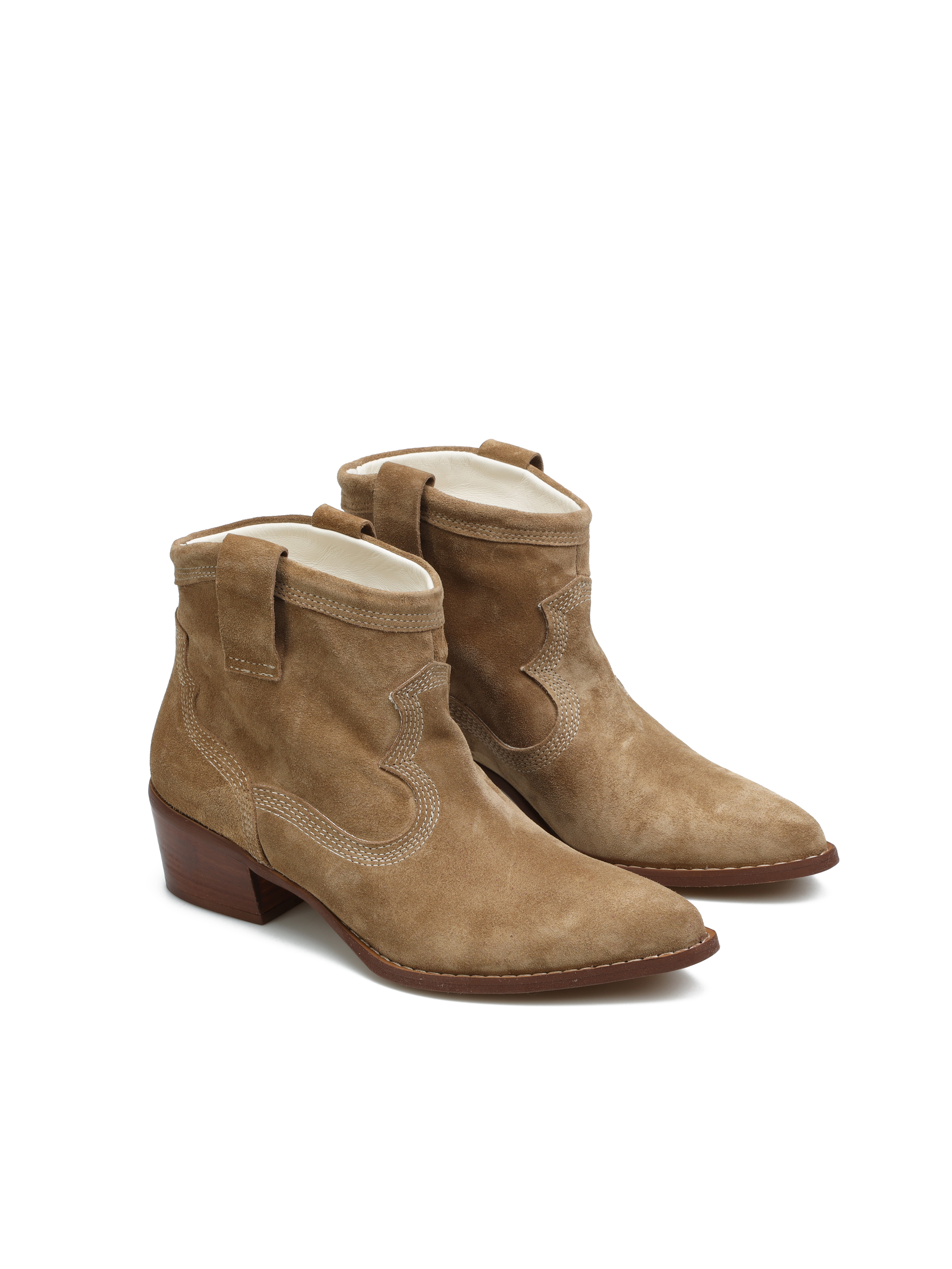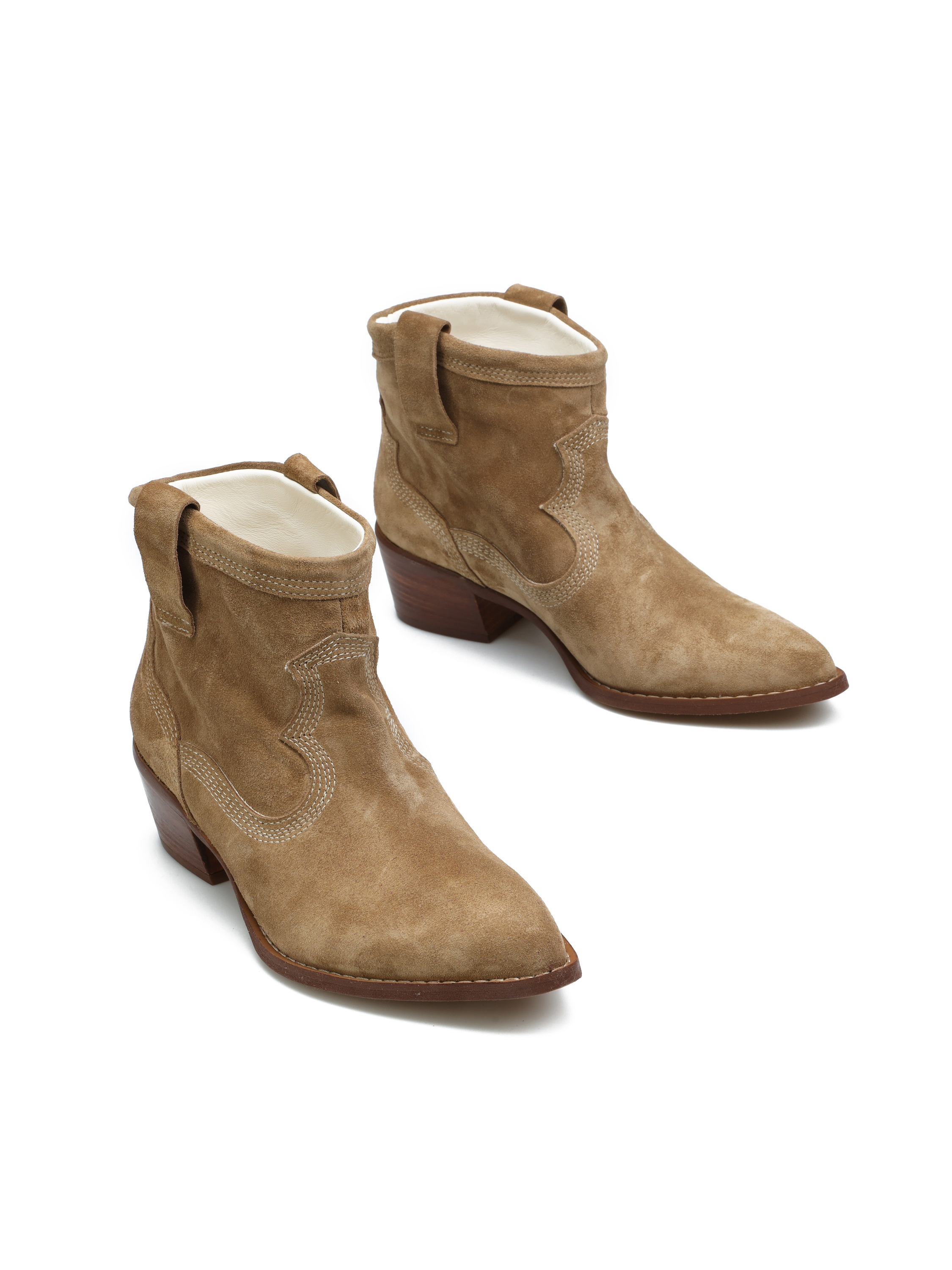 Krótkie zamszowe kowbojki HEGO'S Milano to model prosto z włoskich ulic. Wsuwana cholewka za kostkę w beżowym kolorze natury wykonana jest z naturalnej skóry zamszowej. Charakterystyczny dla tego fasonu ścięty obcas i nosek w szpic idealnie wpisują się w Trendy sezonu. Prosty fason w neutralnym kolorze będzie doskonałym uzupełnieniem kapsułowej garderoby kobiety.