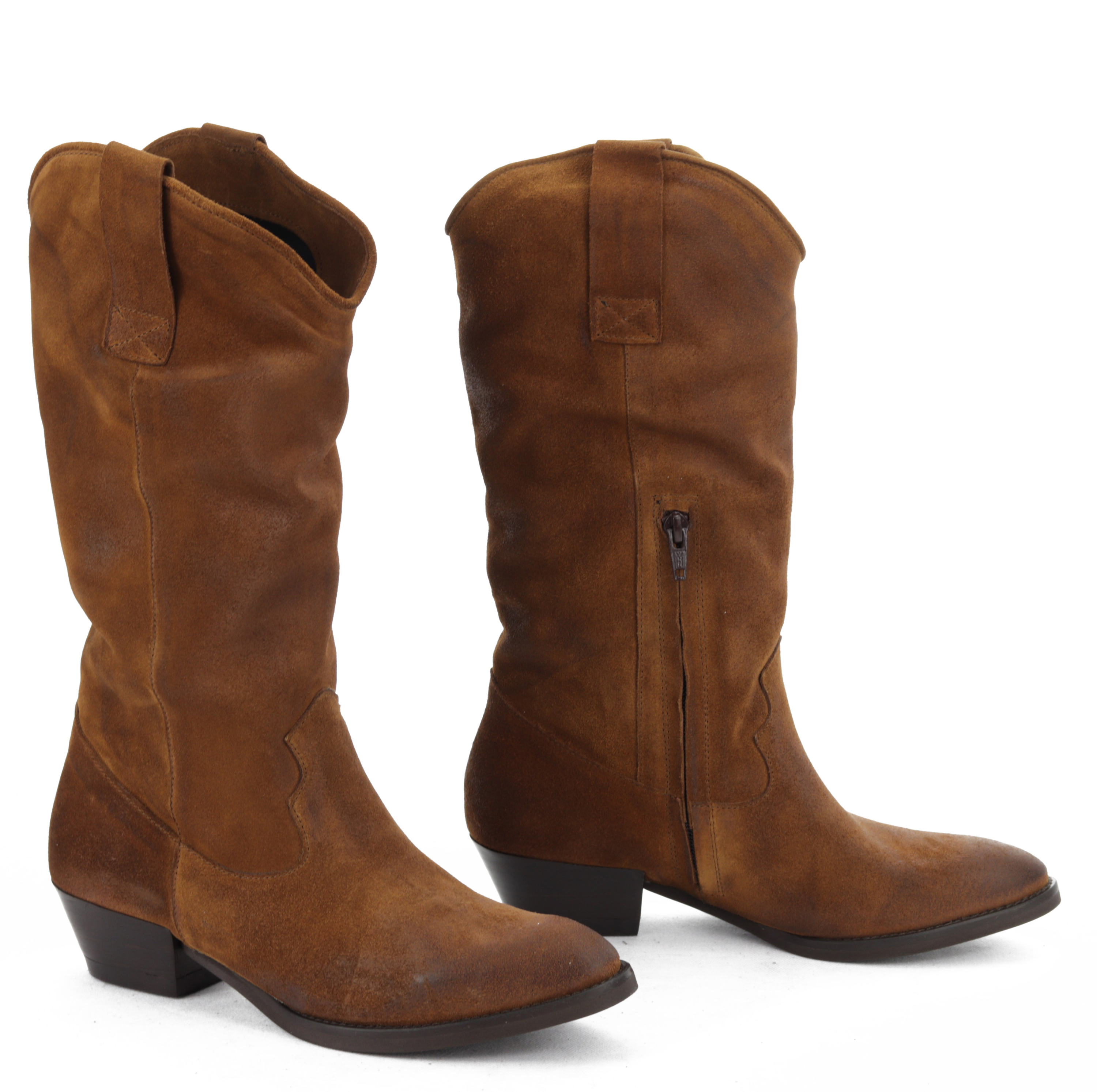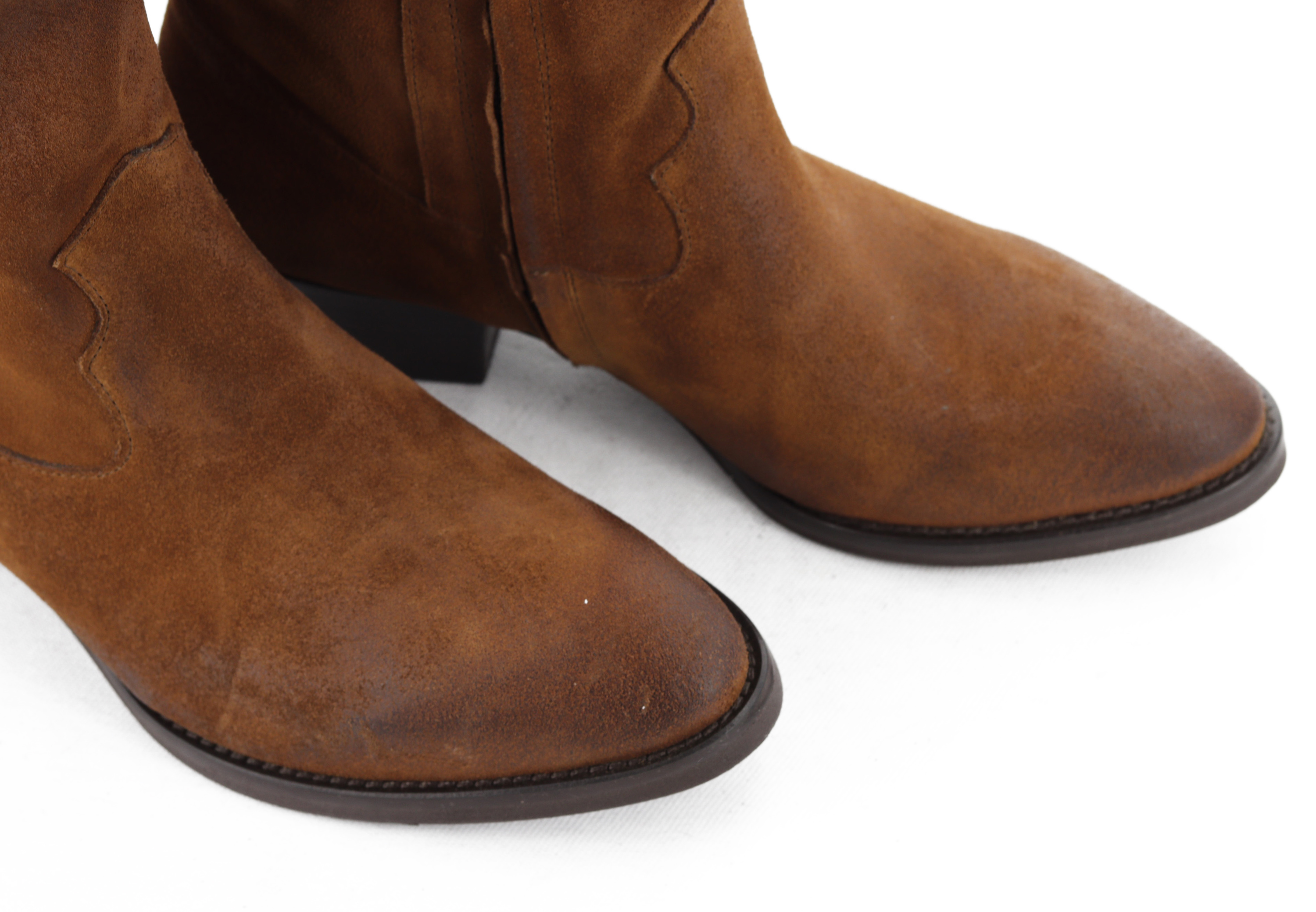Klasyczne kozaki muszą znaleźć się w szafie każdej kobiety w sezonie AW20. Miękka, zamszowa cholewka w połaczeniu ze skórzaną wkładką gwarantuje komfort i wygodę przez wiele godzin na nogach. Ponadczasowy design wzbogacony został o delikatnie ścięty, 4 cm obcas oraz przetarcia, które nadają im charakteru. Będą świetnym dopełnieniem wielu stylizacji!