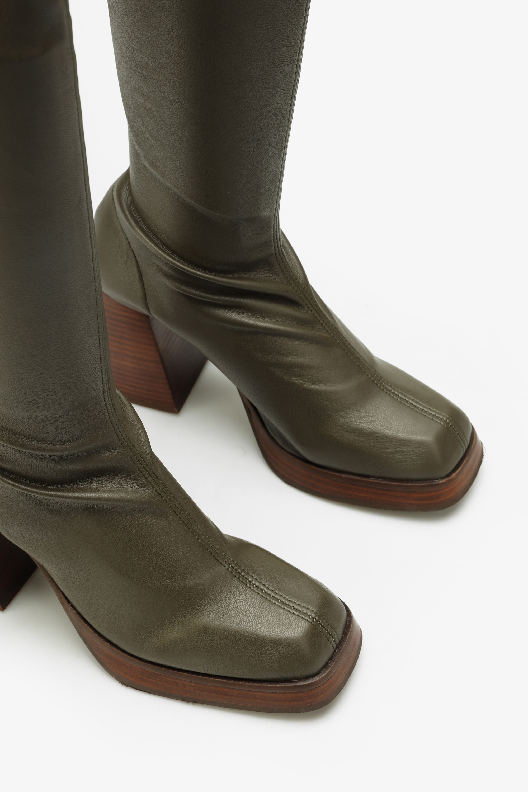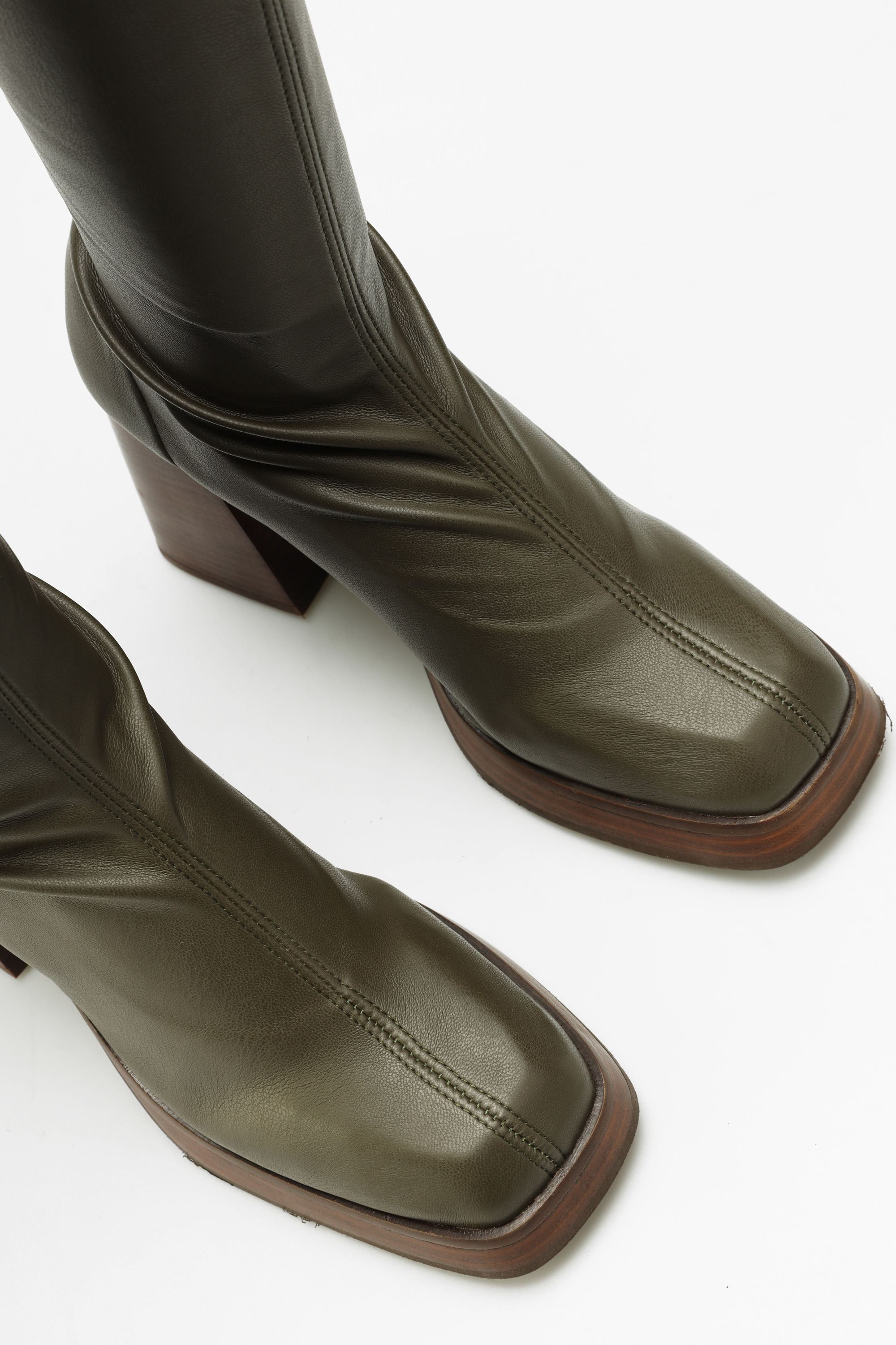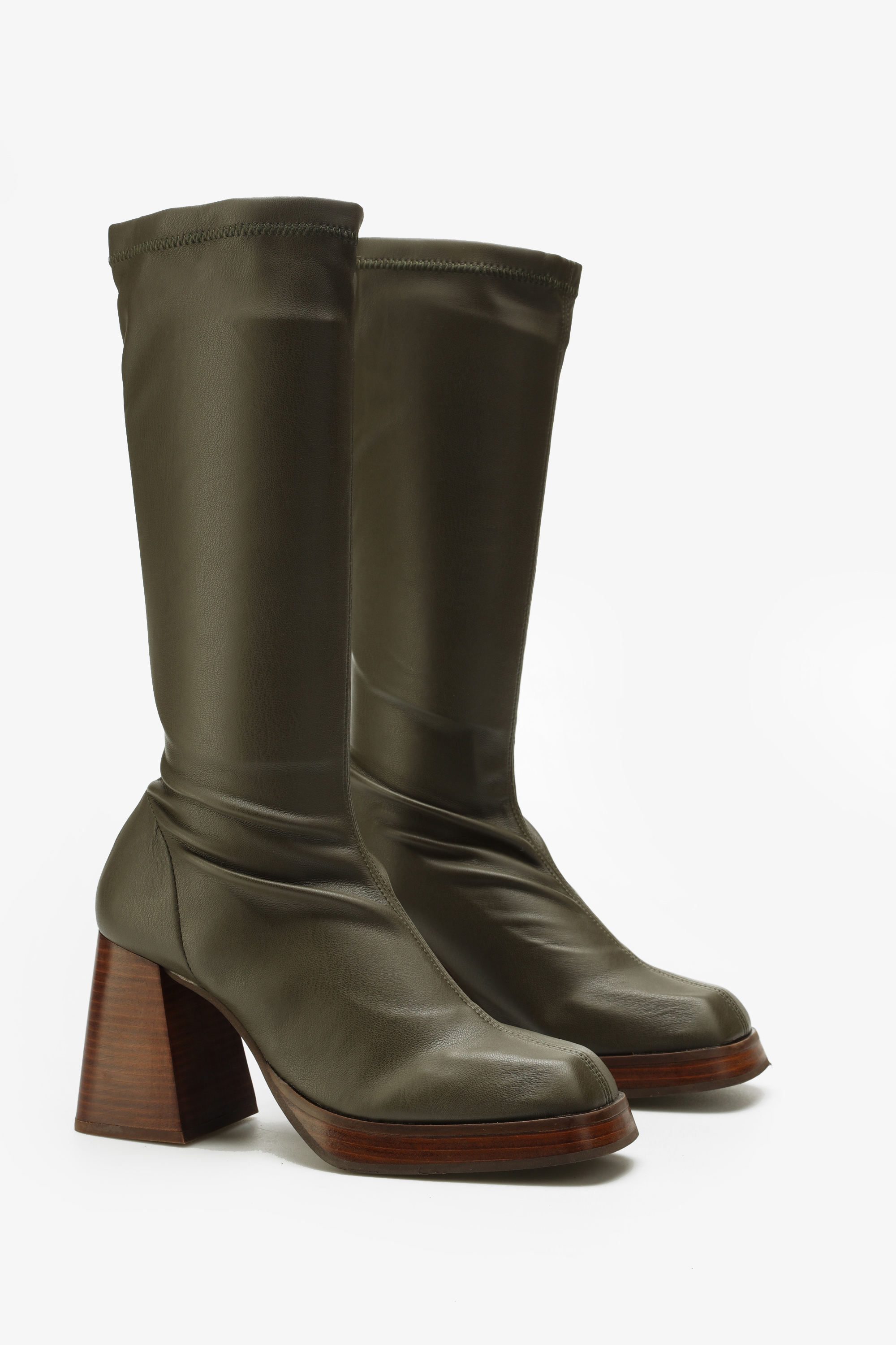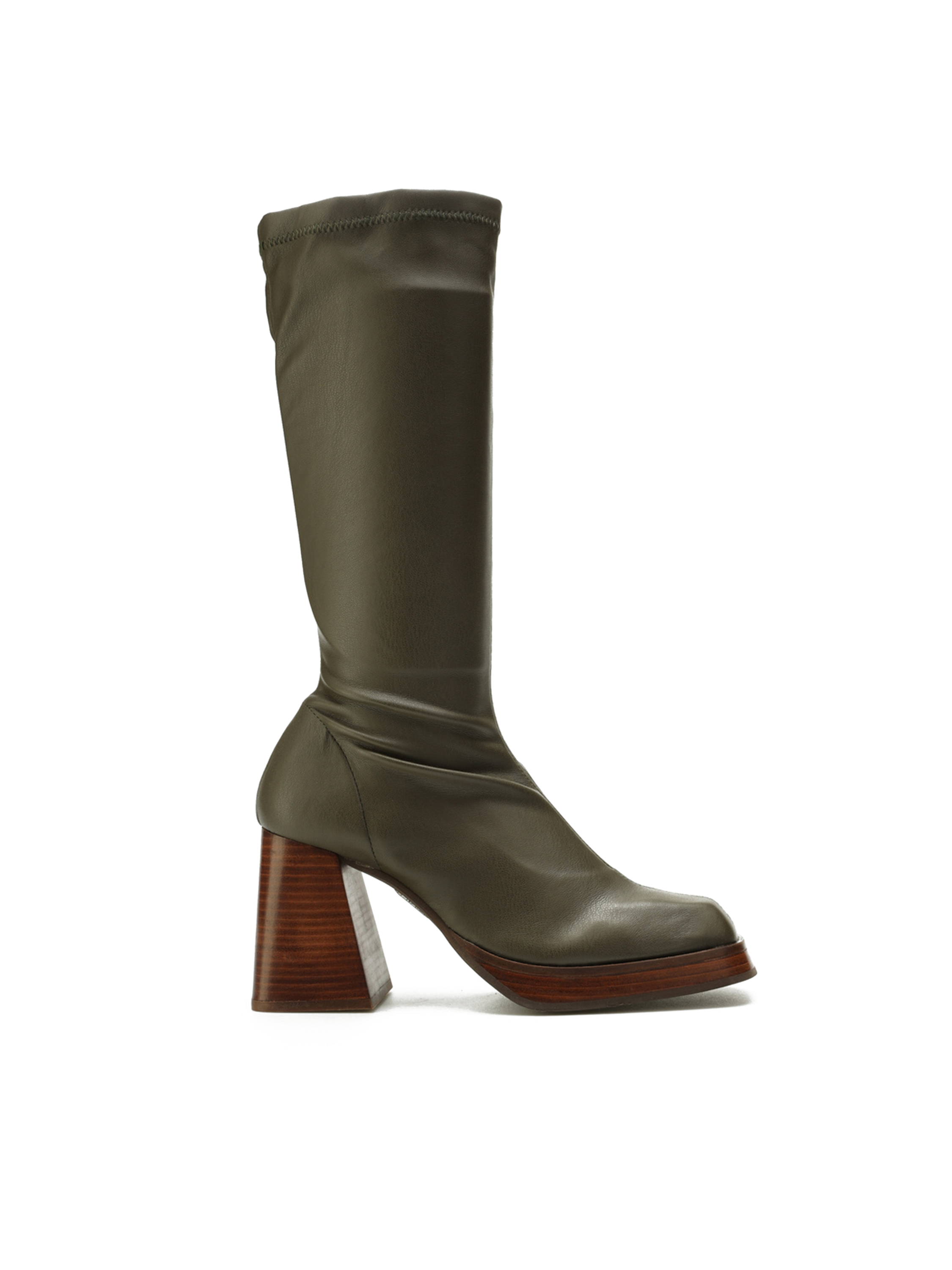 Wsuwane kozaki z elastyczną cholewką w stylu "Socks boots", przylegają do nogi jak druga skóra. Kwadratowy nosek oraz geometryczny obcas na słupku wpisują się Trendy sezonu. Podeszwa na platformie w połączeniu ze skórzaną wkładką odpowiada za komfort i wygodę.