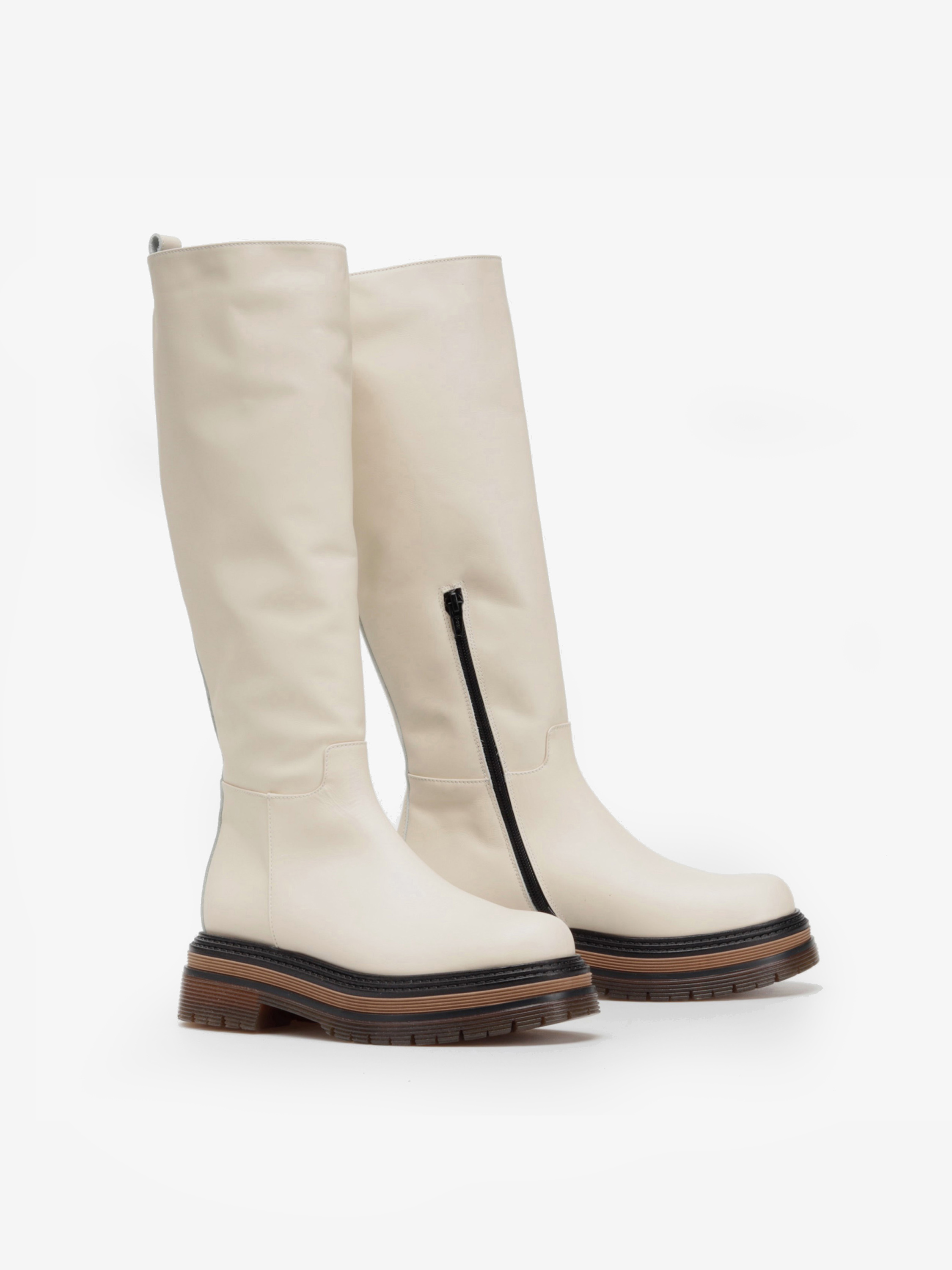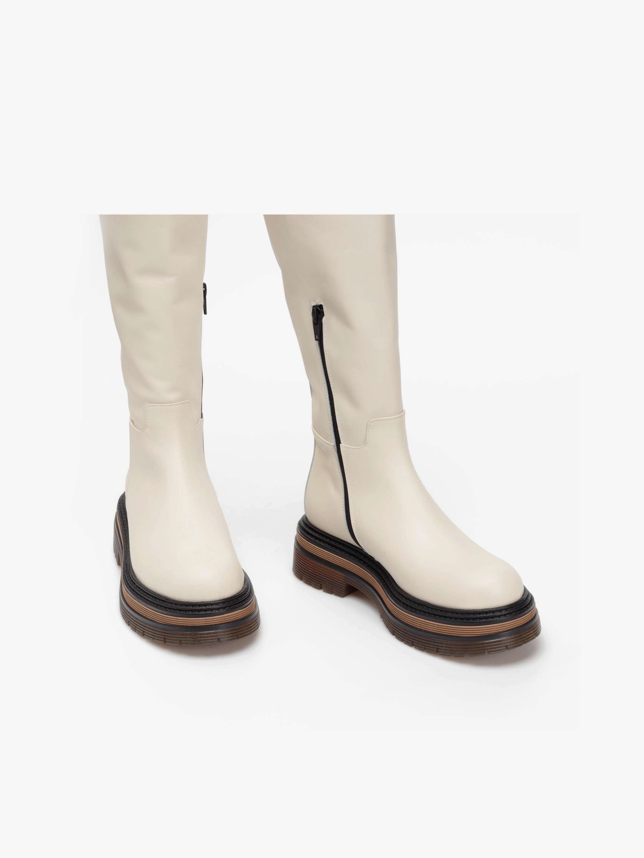 Stylowe kozaki przed kolano stworzone zostały z myślą o kobietach ceniących sobie uniwersalne kroje w designerskim wydaniu. Cholewka oraz wkładka w limitowanym modelu 5681-3 w całości wykonane zostały z wysokiej jakości włoskiej skóry naturalnej dzięki czemu idealnie leżą na nodze i gwarantują wysoki komfort użytkowania.  Gumowa podeszwa na platformie nie tylko dodaje im charakteru, ale również zapewnia należytą amortyzację i stabilny krok w każdych warunkach.