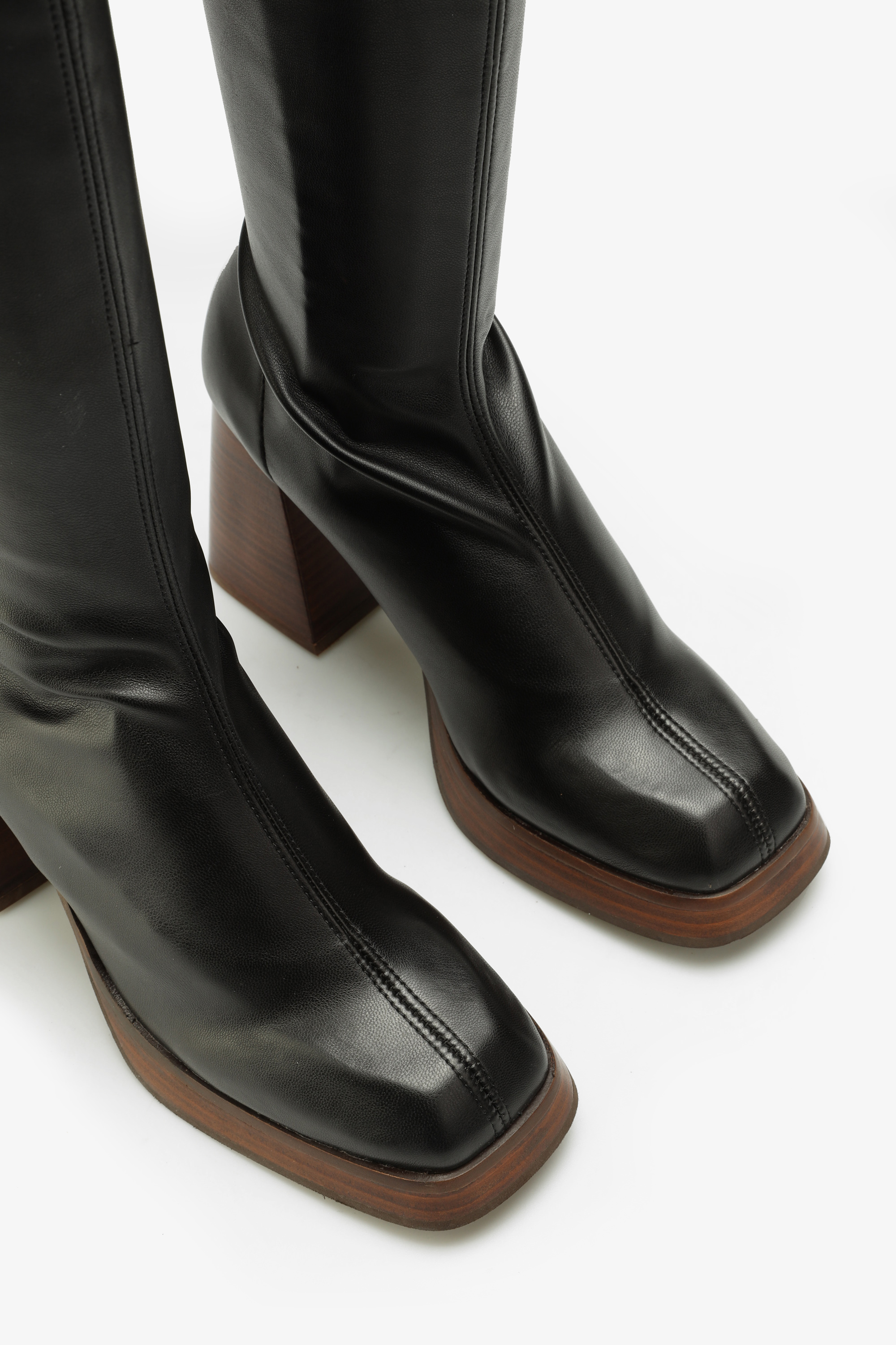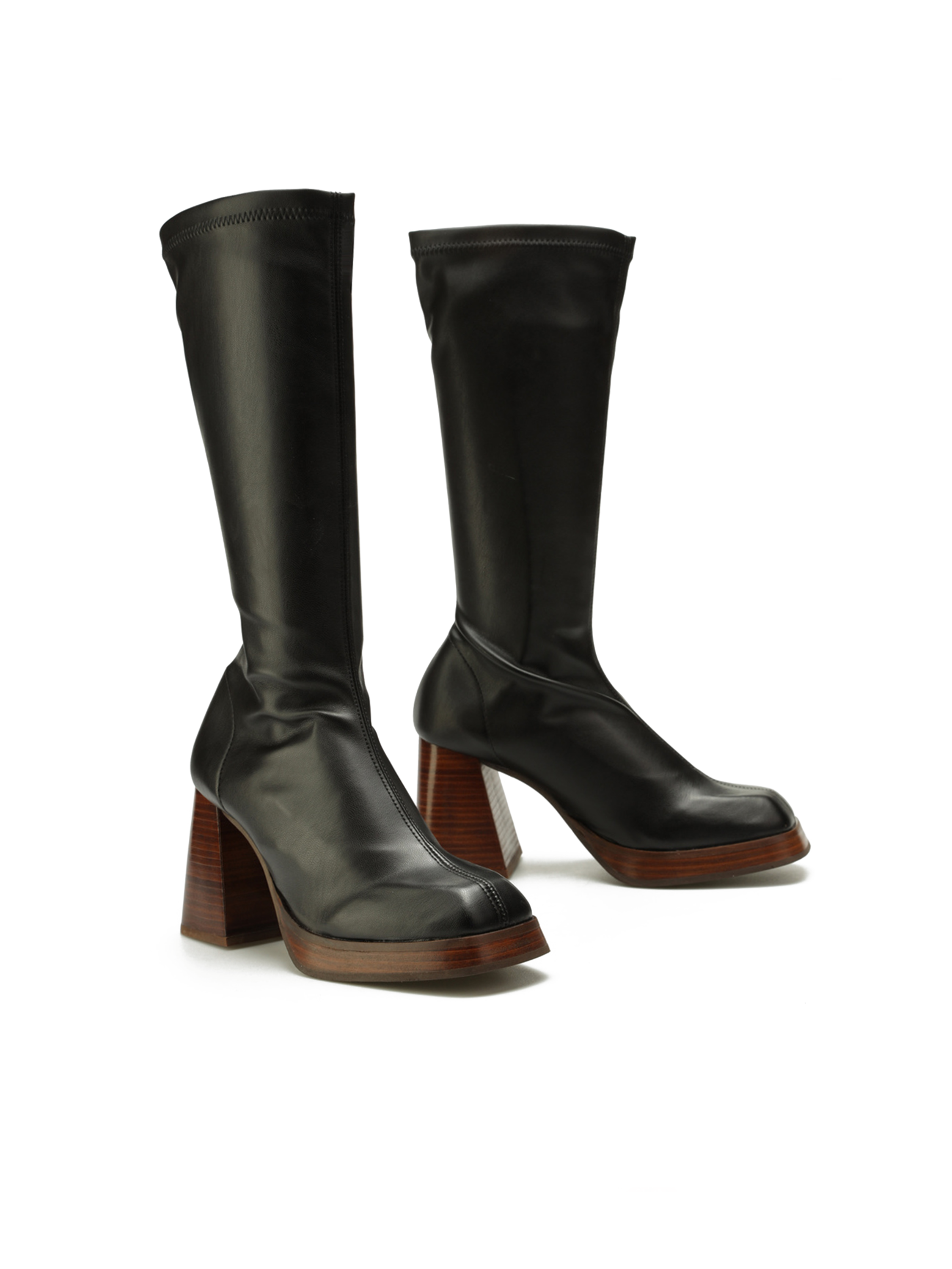 Wsuwane kozaki z elastyczną cholewką w stylu "Socks boots", przylegają do nogi jak druga skóra. Kwadratowy nosek oraz geometryczny obcas na słupku wpisują się Trendy sezonu. Podeszwa na platformie w połączeniu ze skórzaną wkładką odpowiada za komfort i wygodę.