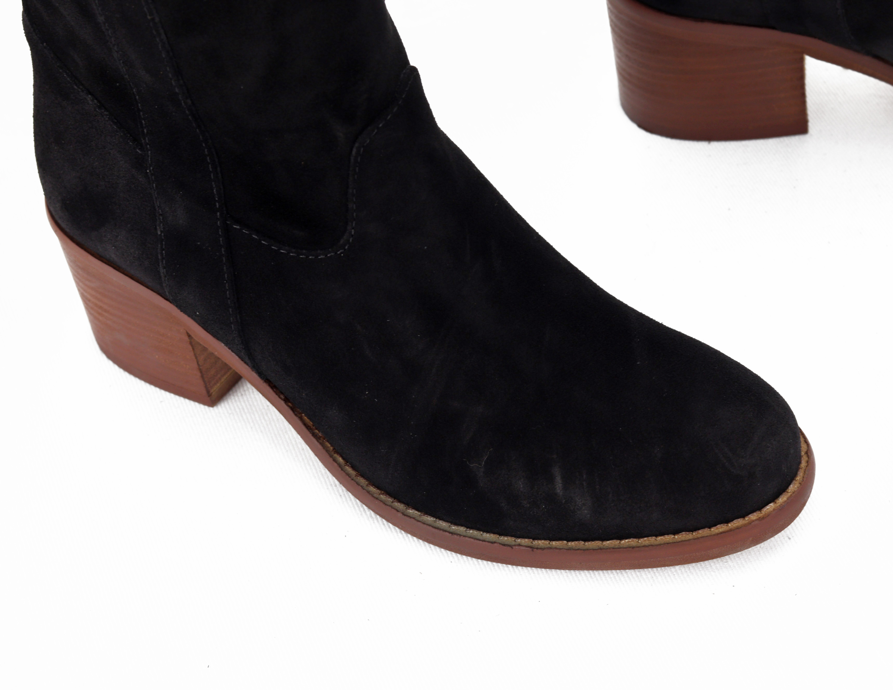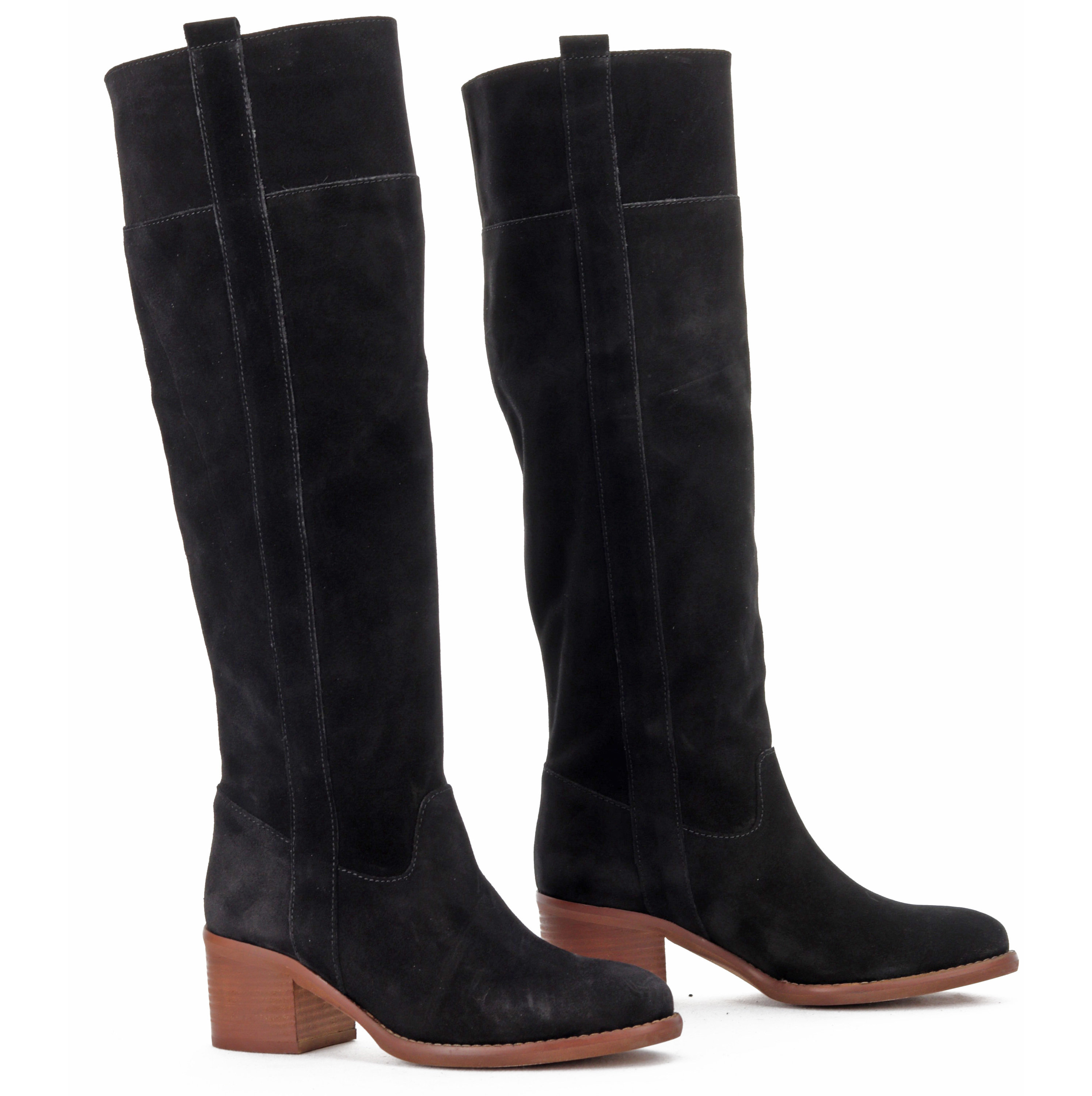 Klasyczne kozaki w czarnej wersji kolorystycznej będą idealnym uzupełnieniem każdej stylizacji w sezonie AW20. Miękka, zamszowa cholewka w połączeniu ze skórzanym wnętrzem gwarantuje niebywały komfort oraz dopasowanie do stopy. Stabilny, 5 cm obcas oraz delikatnie zaokrąglony nosek optycznie wysmuklą sylwetkę i dodadzą lekkości. Klasyka nigdy nie wychodzi z mody!