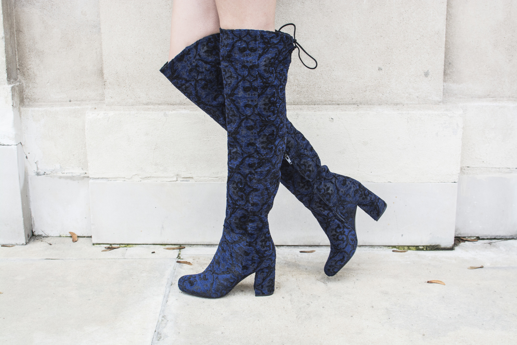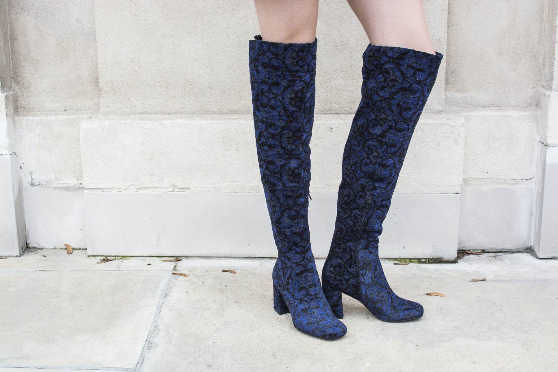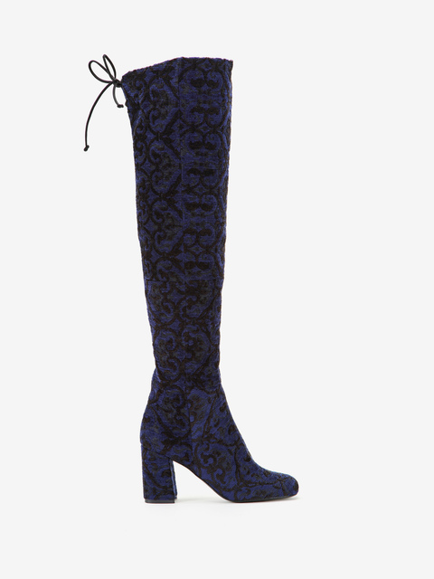Kozaki za kolano marki HEGO'S wykonanane z unikatowego materiału typu welur osadzone na słupku,zapinane na suwak od wewnętrznej strony.