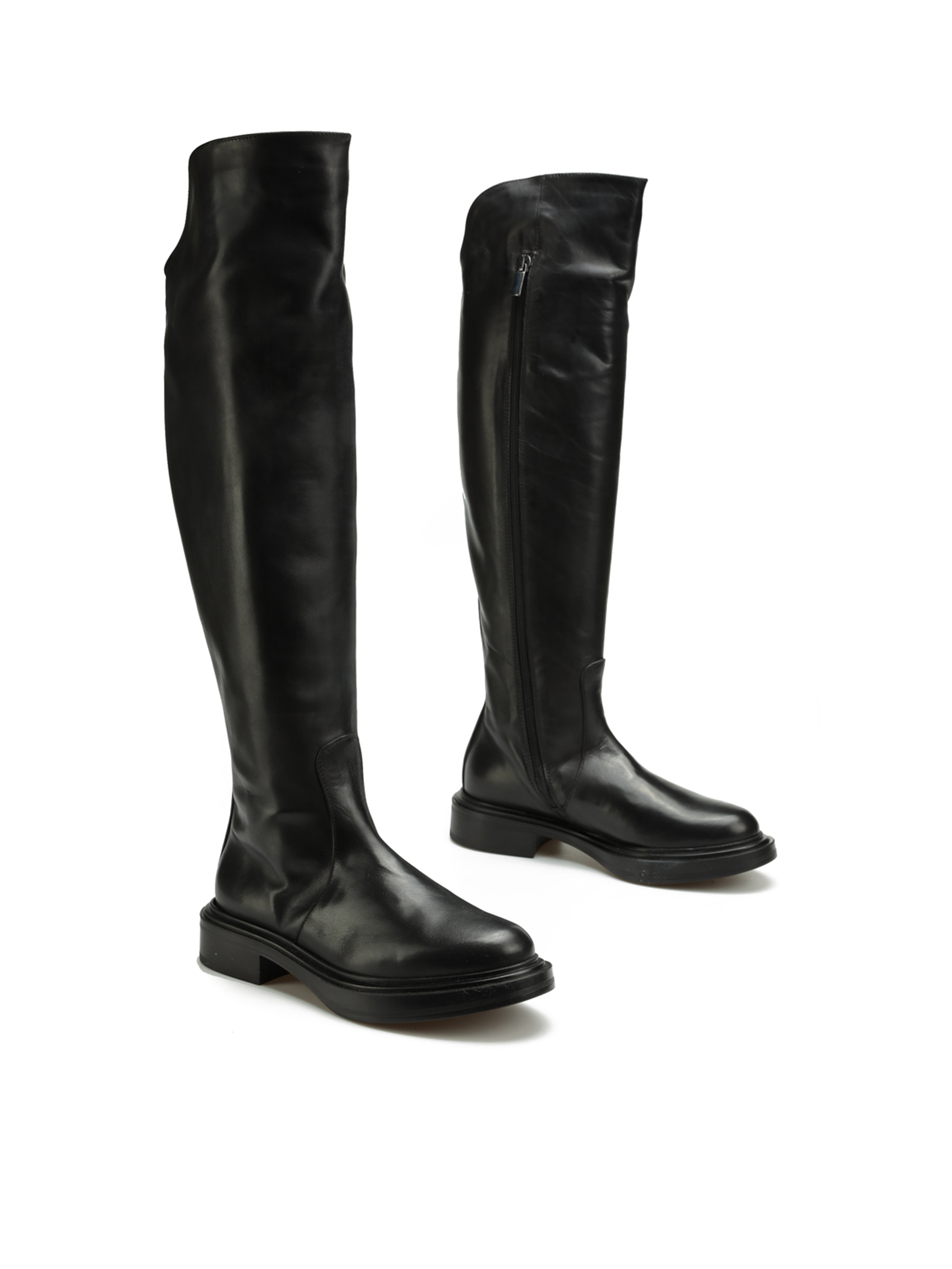 Wysoka, przylegająca cholewka oraz wkładka wykonane są z włoskiej skóry naturalnej. Wygodny płaski obcas odpowiada za komfort chodzenia przez cały dzień. Starannie wykonane przeszycia oraz rozcięta z tyłu cholewka to modowy Trend sezonu. Wszyty zamek błyskawiczny ułatwia zakładanie i zdejmowanie obuwia.