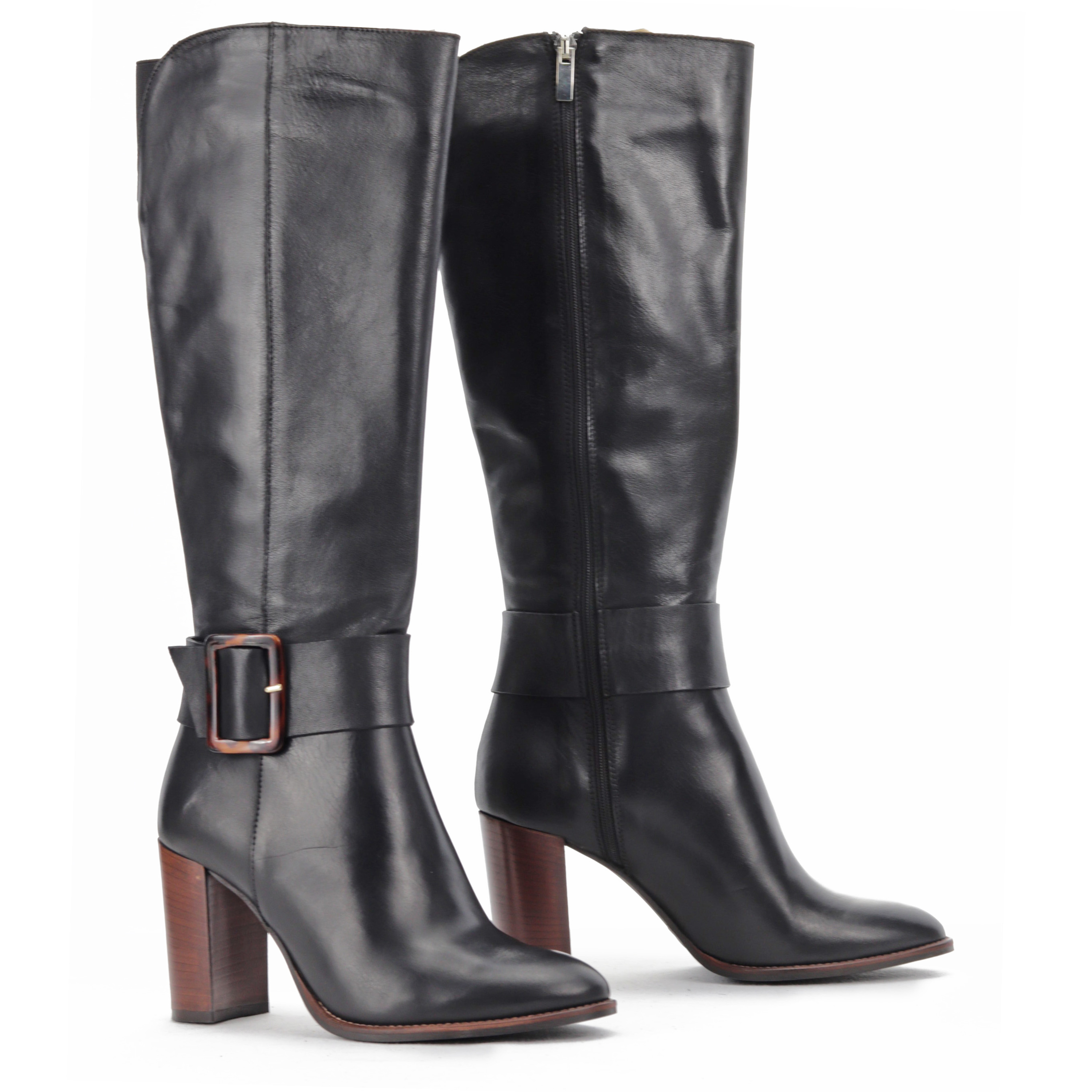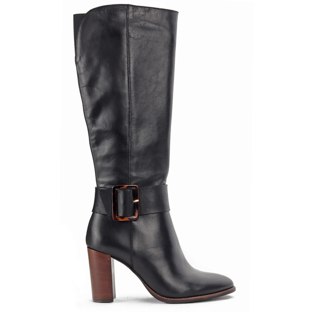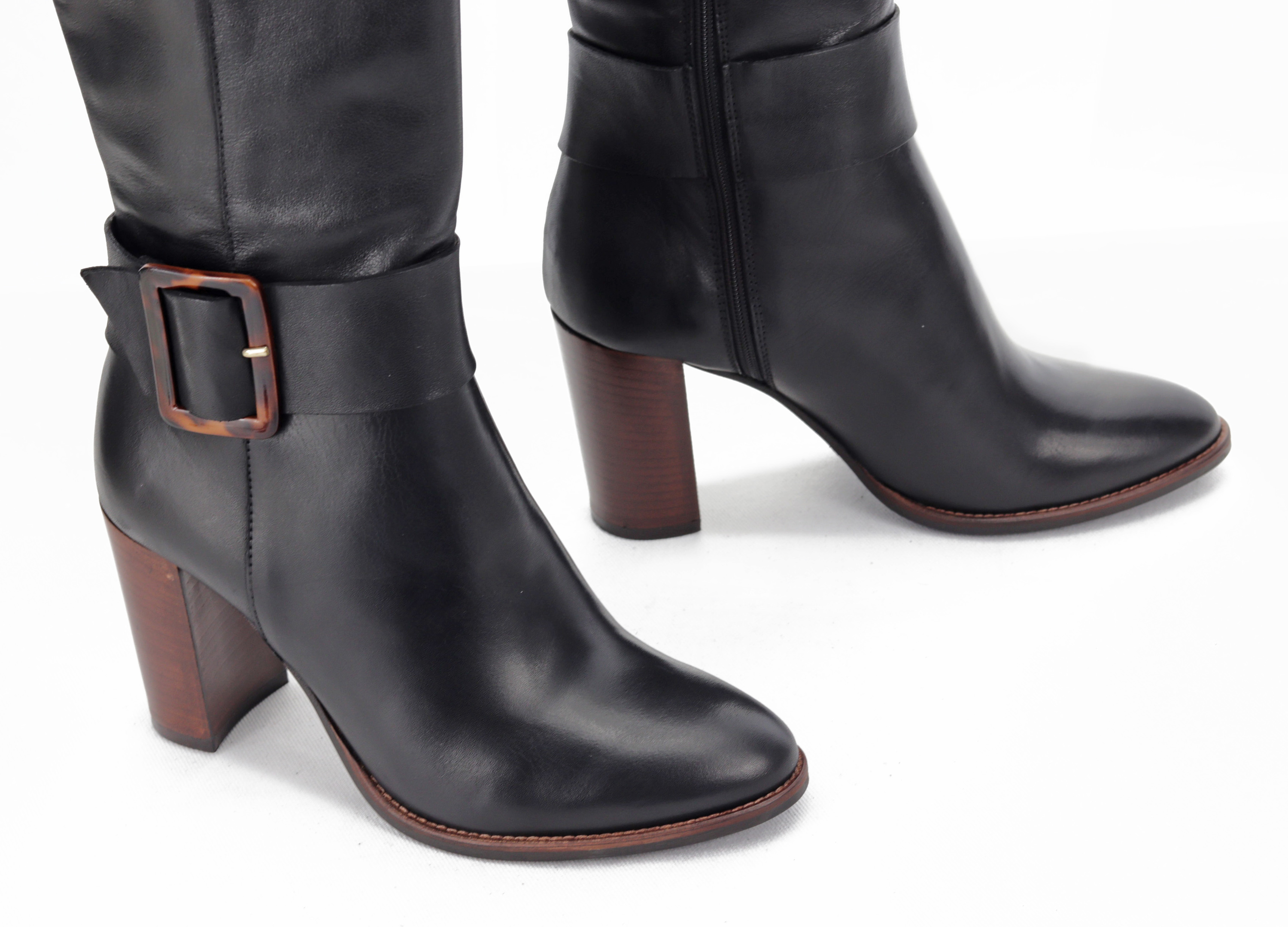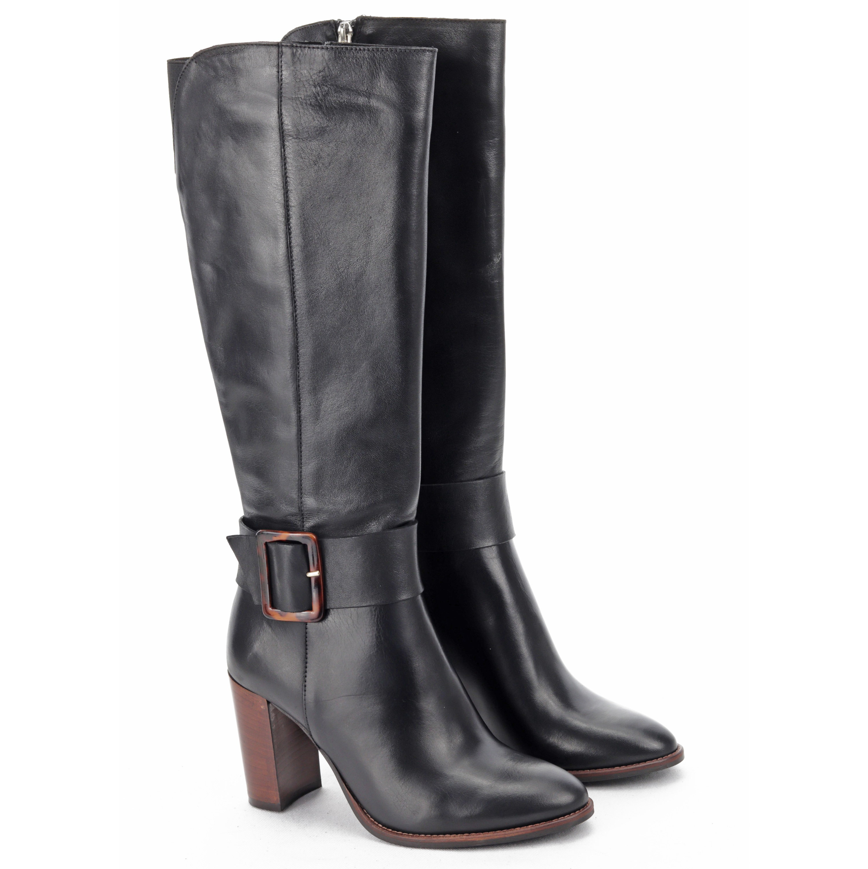 Piękne, kobiece kozaki na stabilnym, 8 cm obcasie to idealna propozycja dla każdej, eleganckiej kobiety w sezonie jesienno-zimowym. Zamszowa cholewka w połączeniu ze skórzaną, dobrze wyprofilowaną wkładką gwarantuje komfort i wygodę przez wiele godzin na nogach. Klasyczny krój z wszytym zamkiem wzbogacony został o dużą, uroczą klamrę, która nadaje im charakteru. Świetnie wyglądać będą zestawione zarówno ze spodniami jak i sukienkami.