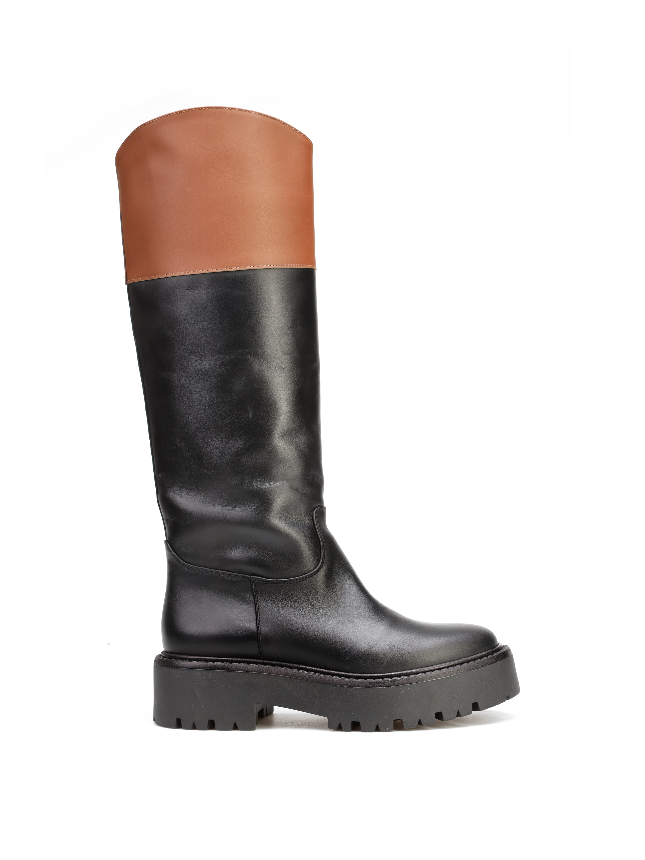 Kozaki na grubej podeszwie to must have sezonu. Prosta, wsuwana cholewka wykonana jest z naturalnej skóry. Klasyczne połączenie kolorystyczne sprawia, że model będzie uzupełnieniem wielu stylizacji.