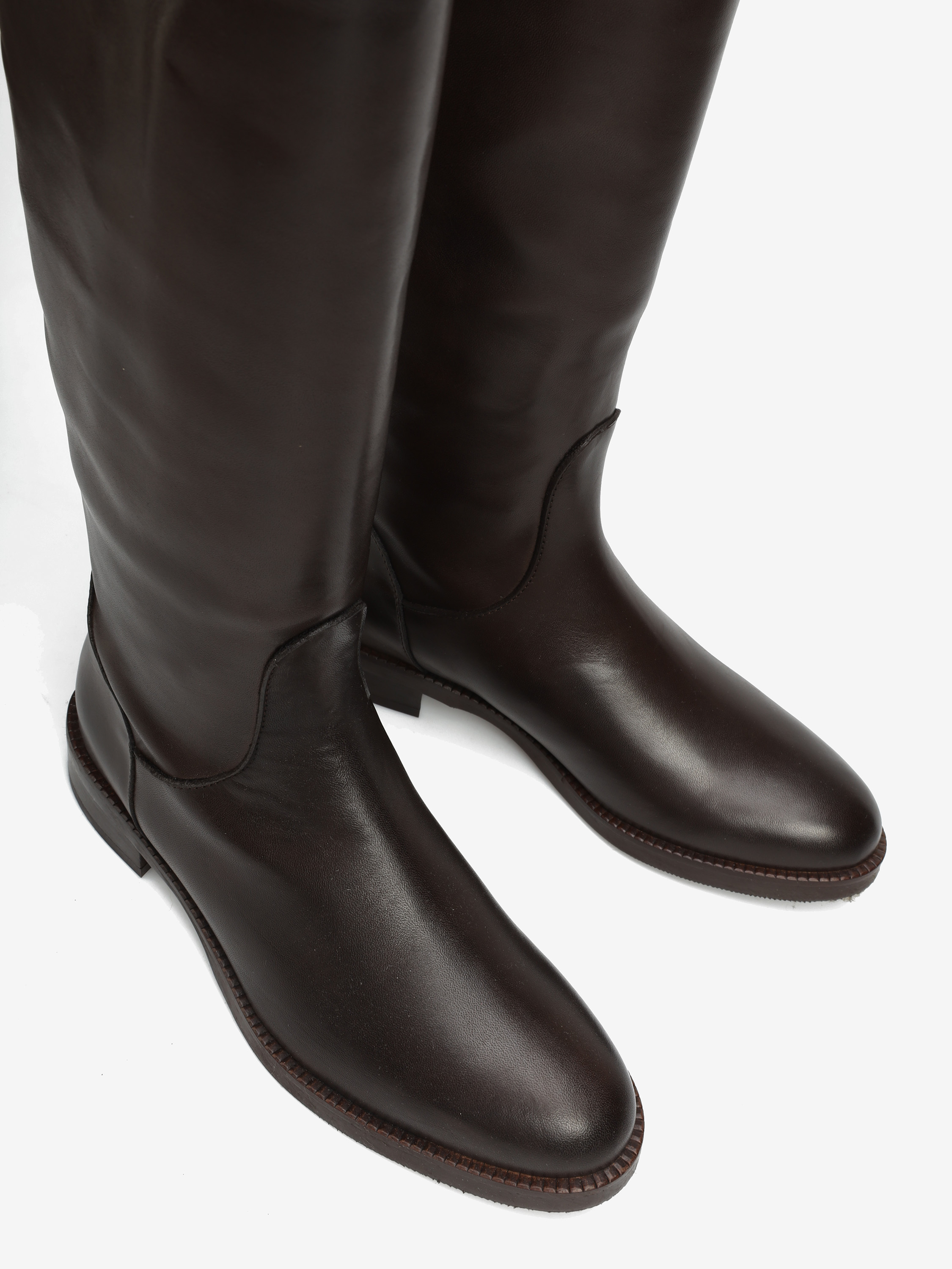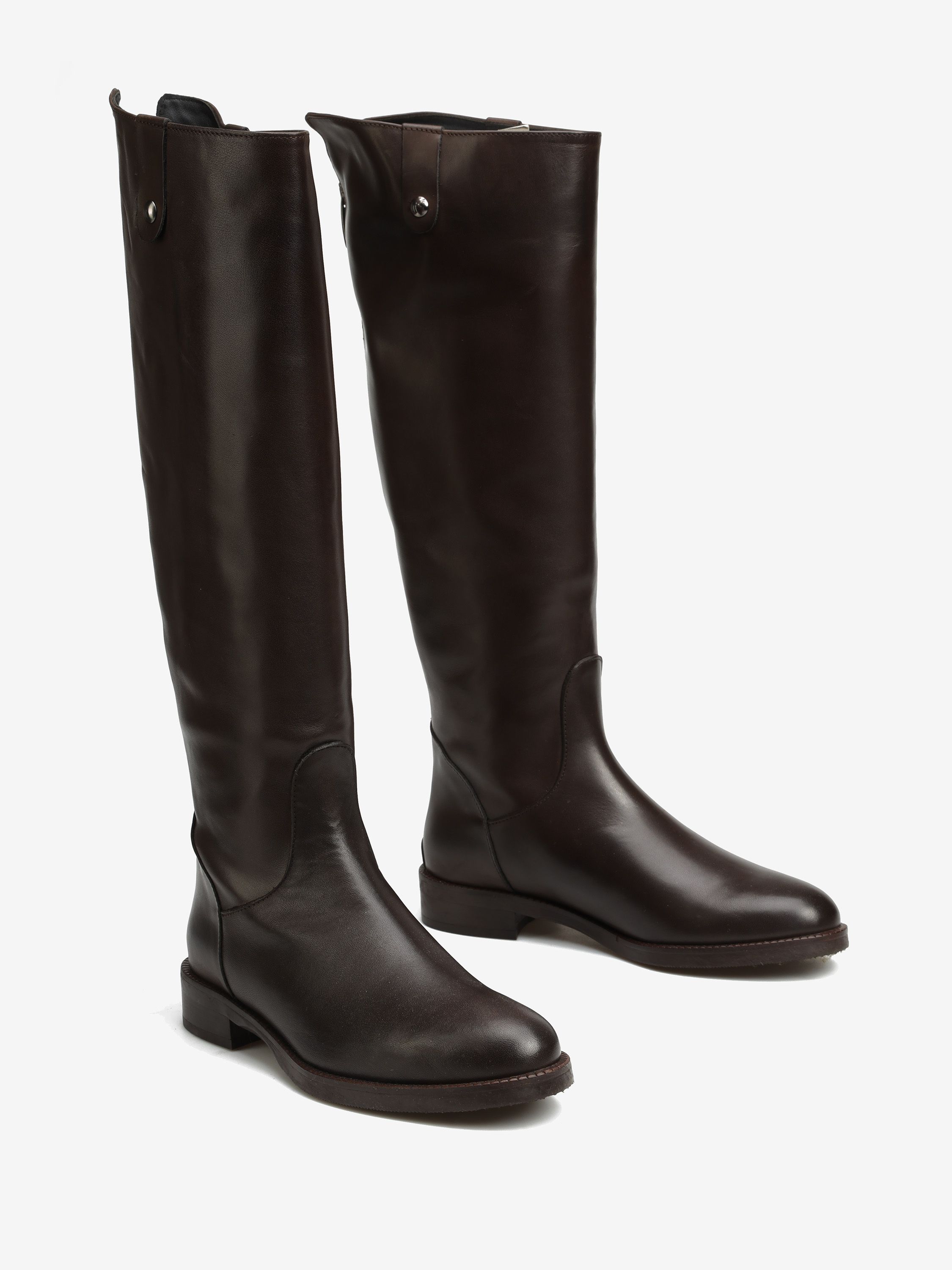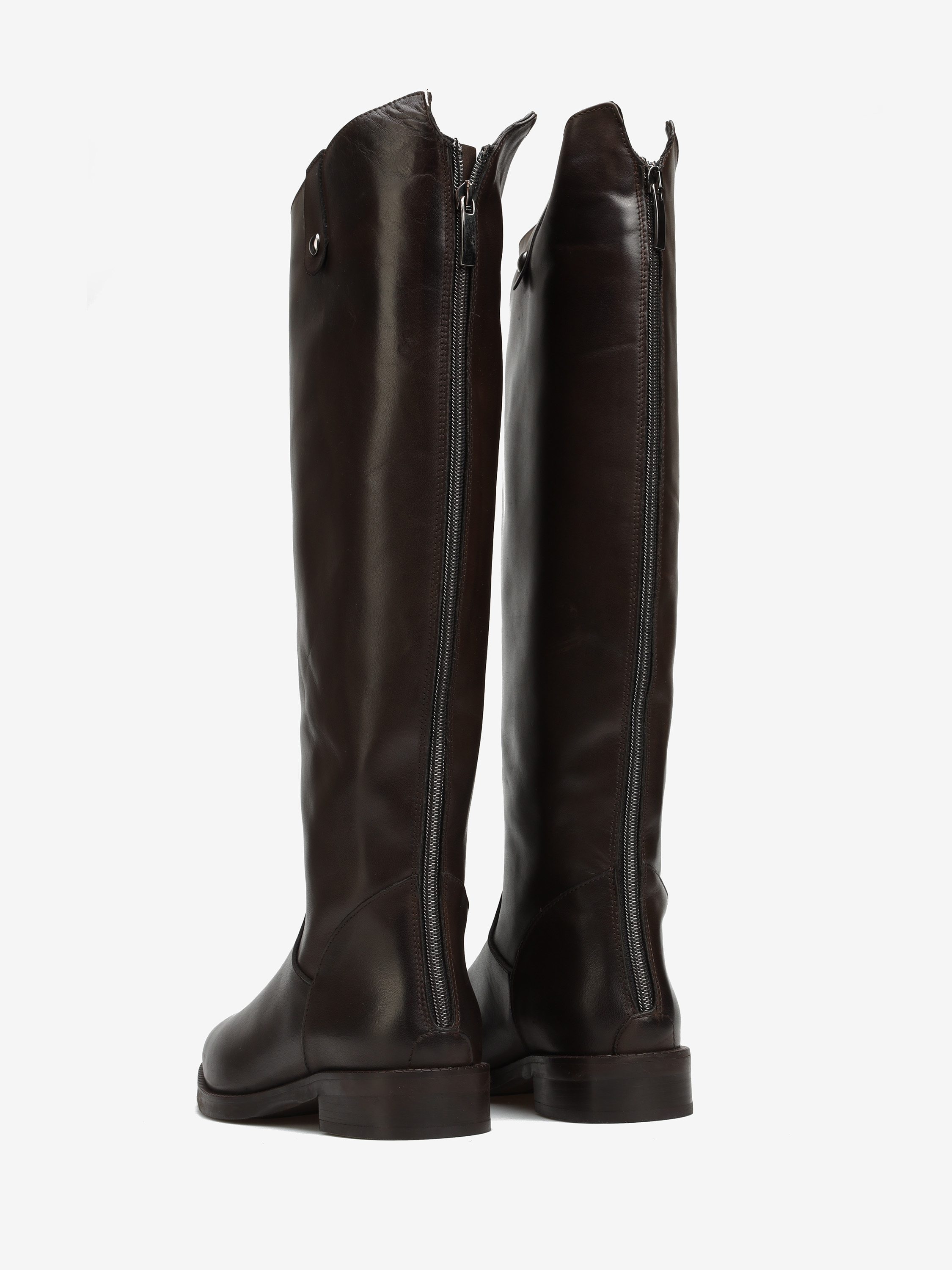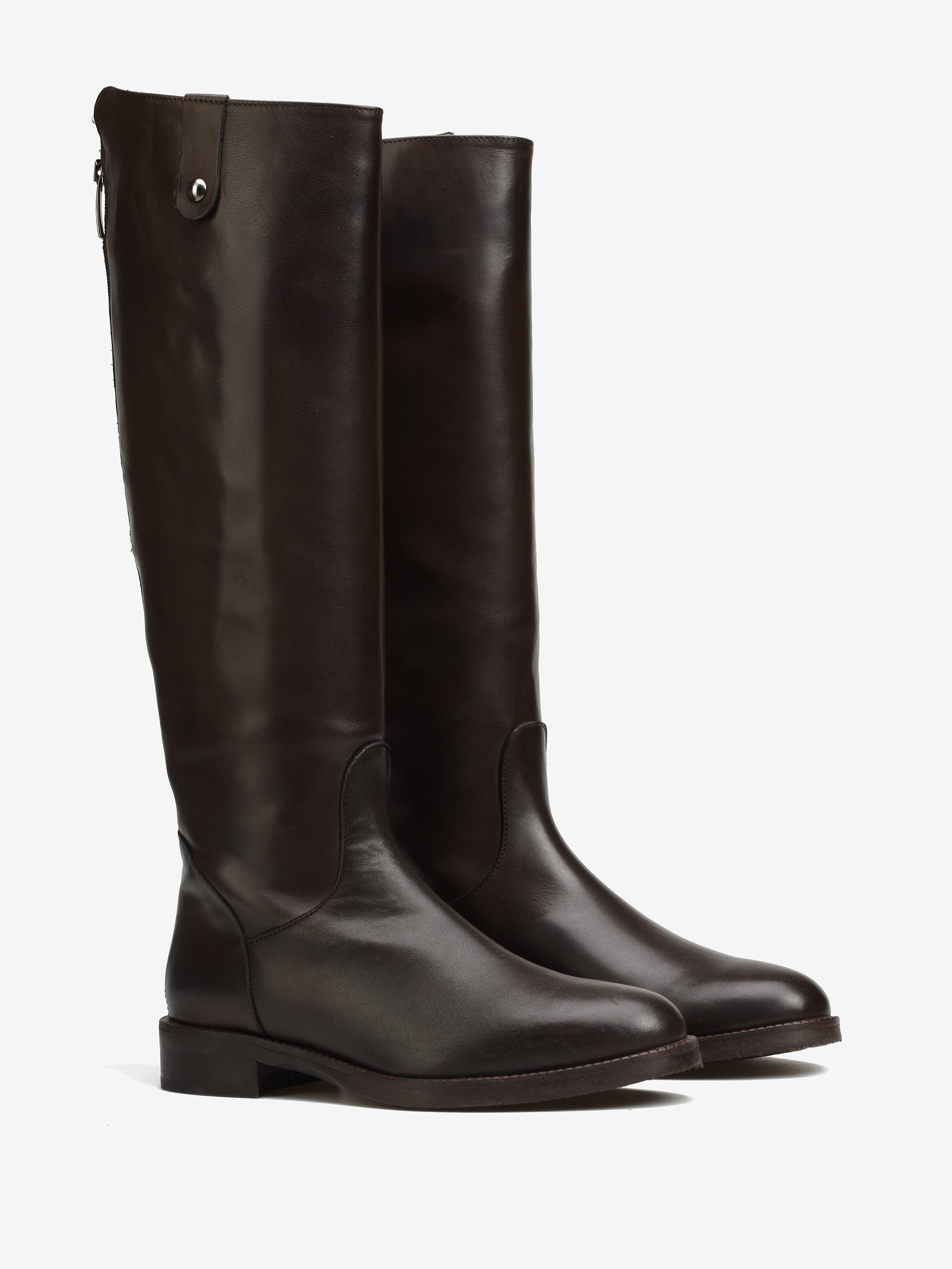 Ponadczasowe oficerki wykonane z naturalnej skóry w kolorze czekoladowym, zapinane na suwak z tyłu.
