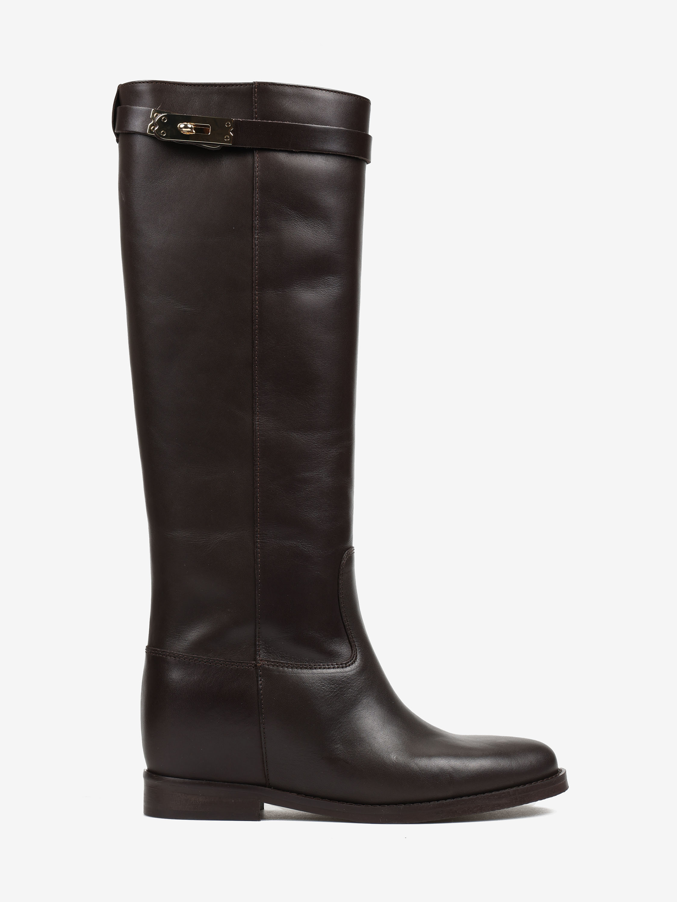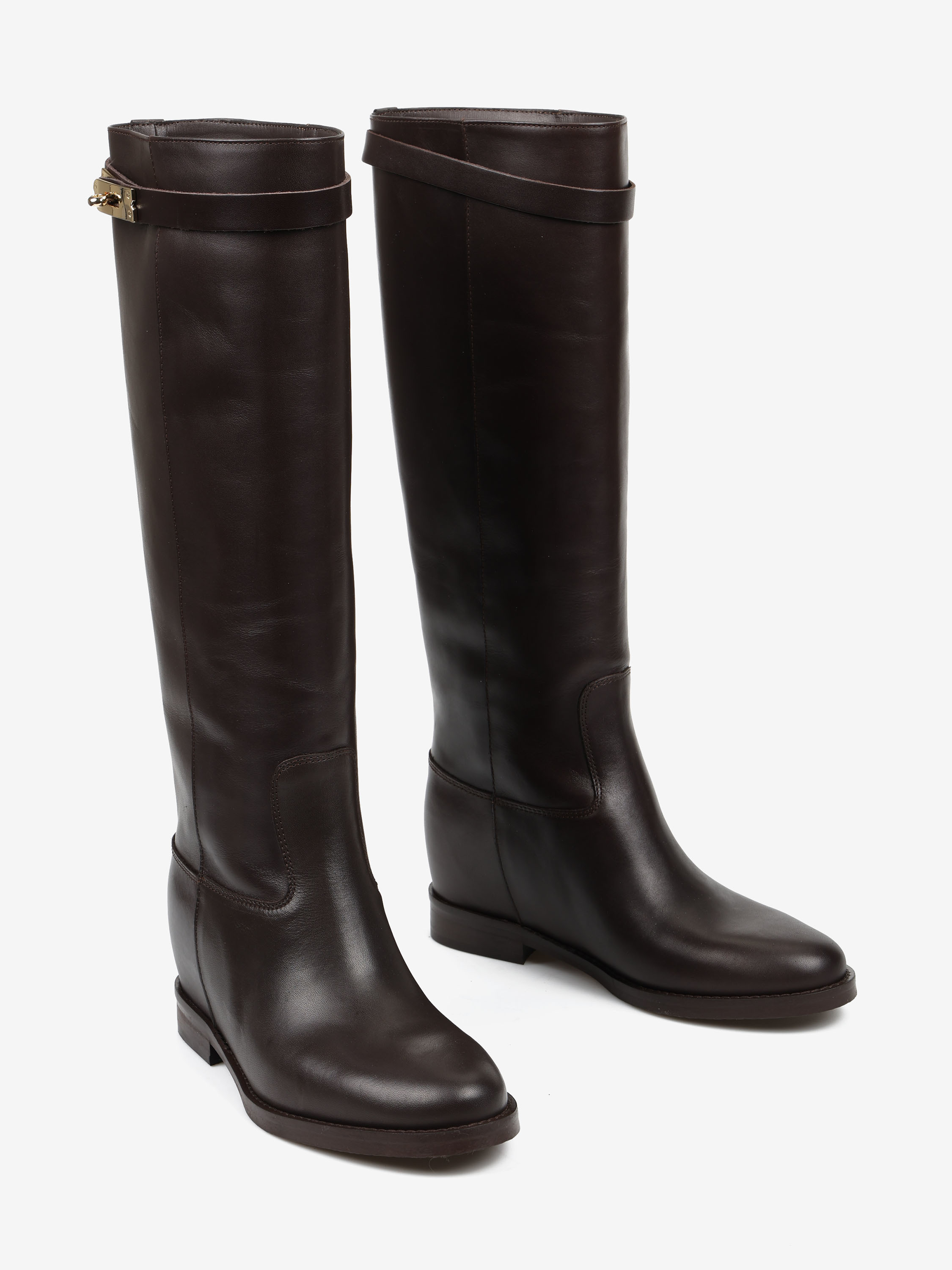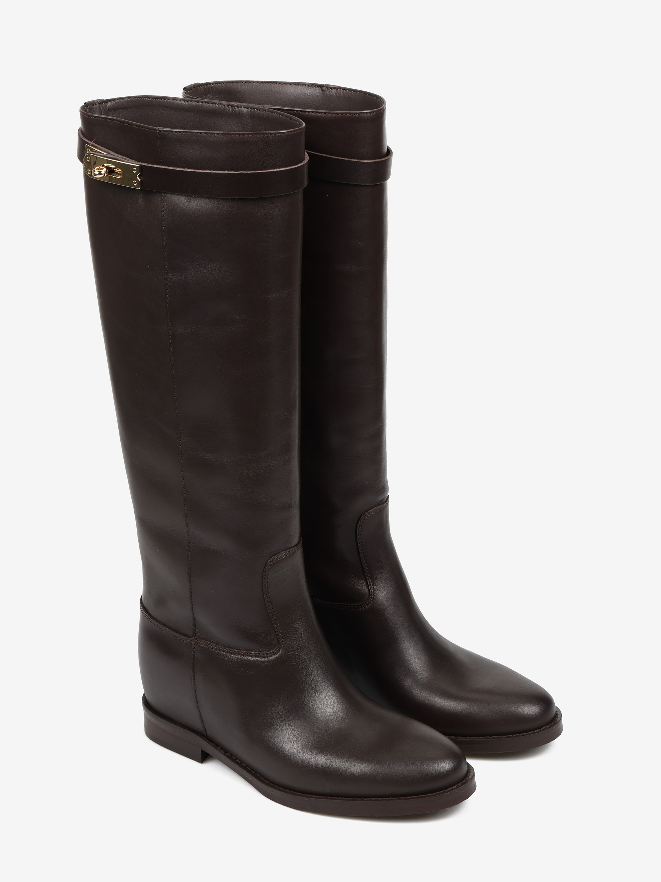 BRĄZOWE KOZAKI Z UKRYTĄ KOTURNĄ HEGO'S MILANO