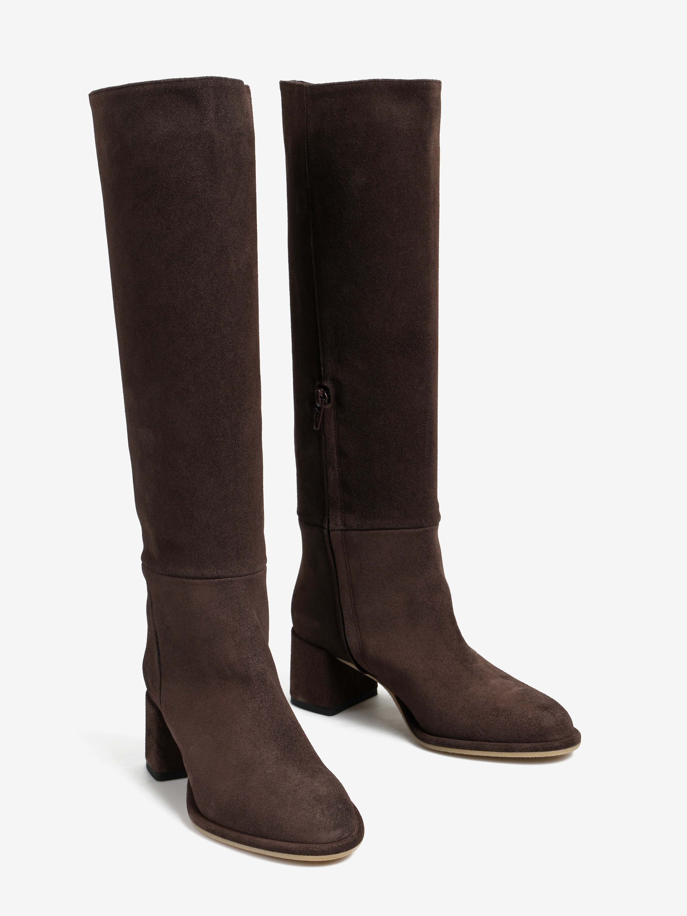 BRĄZOWE KOZAKI NA NISKIM OBCASIE HEGO'S MILANO