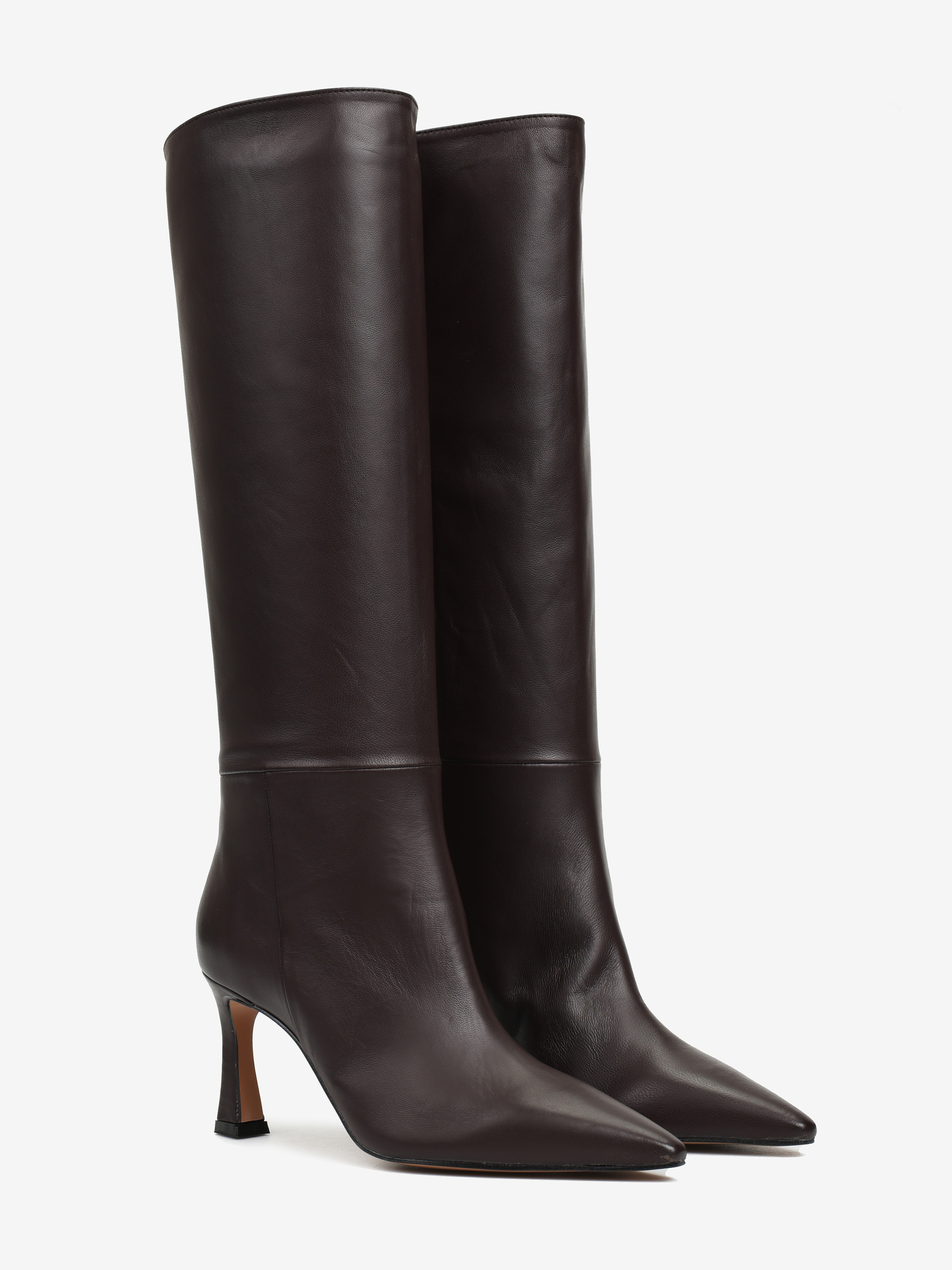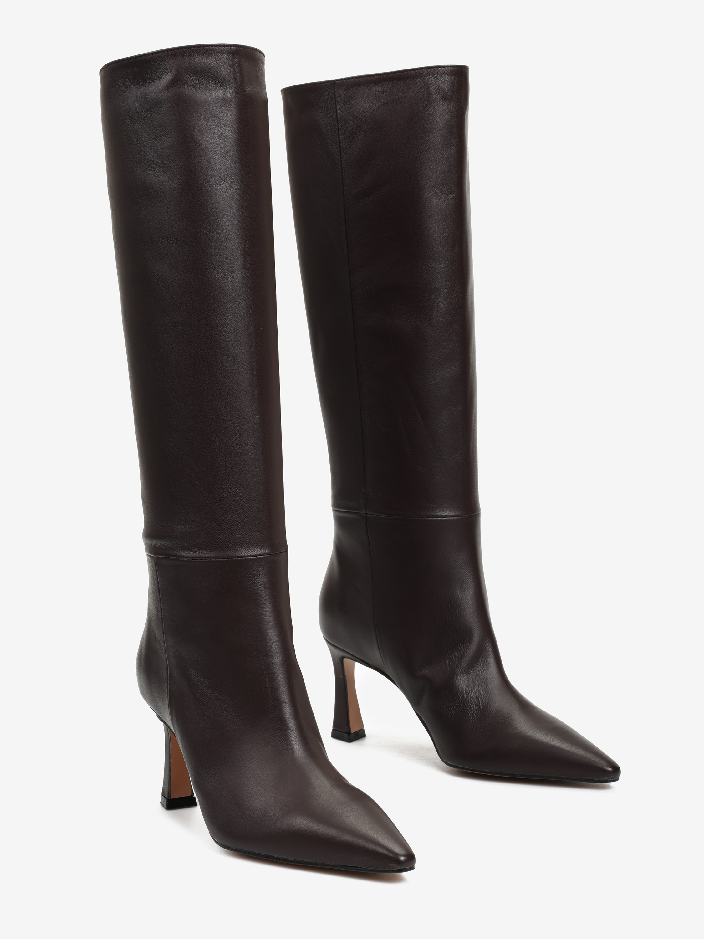 Wsuwane kozaki na szpilce, wykonane z miękkiej i delikatnej skóry. Noski w szpic.