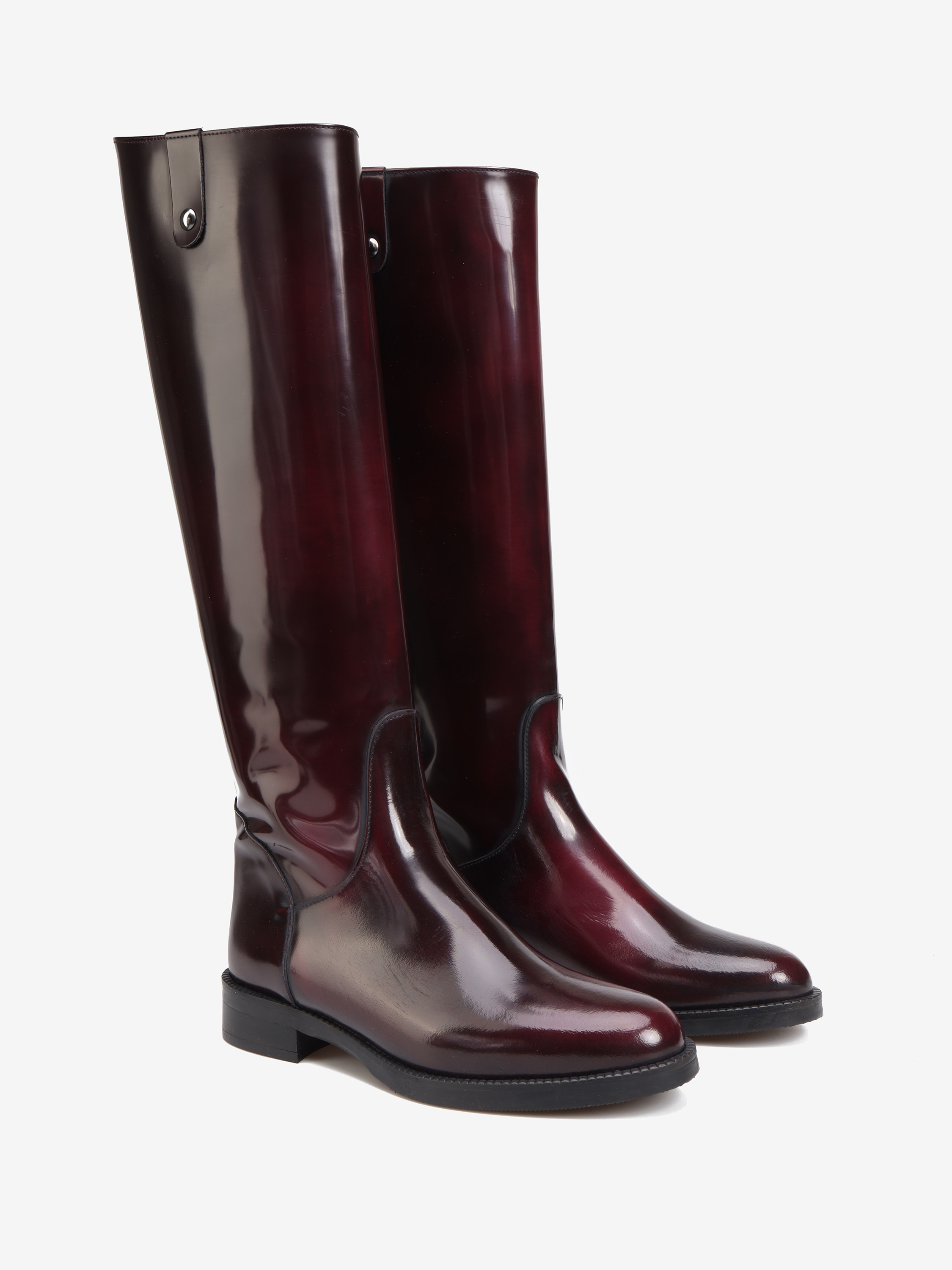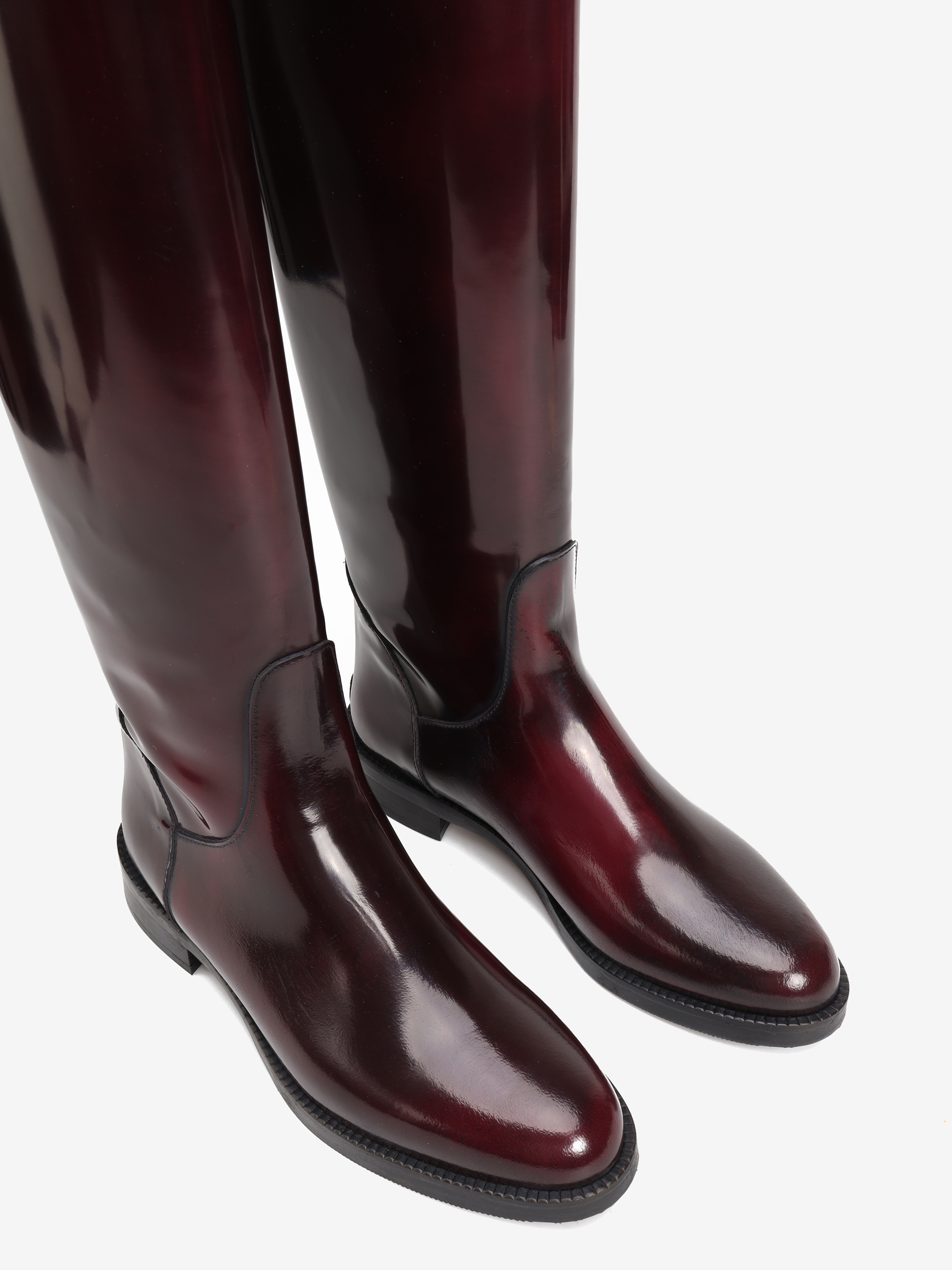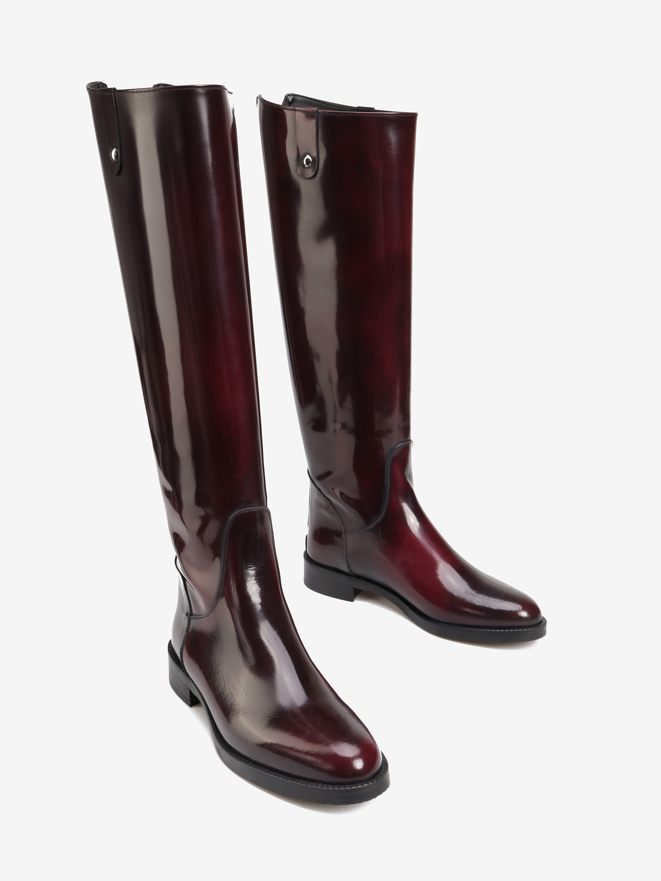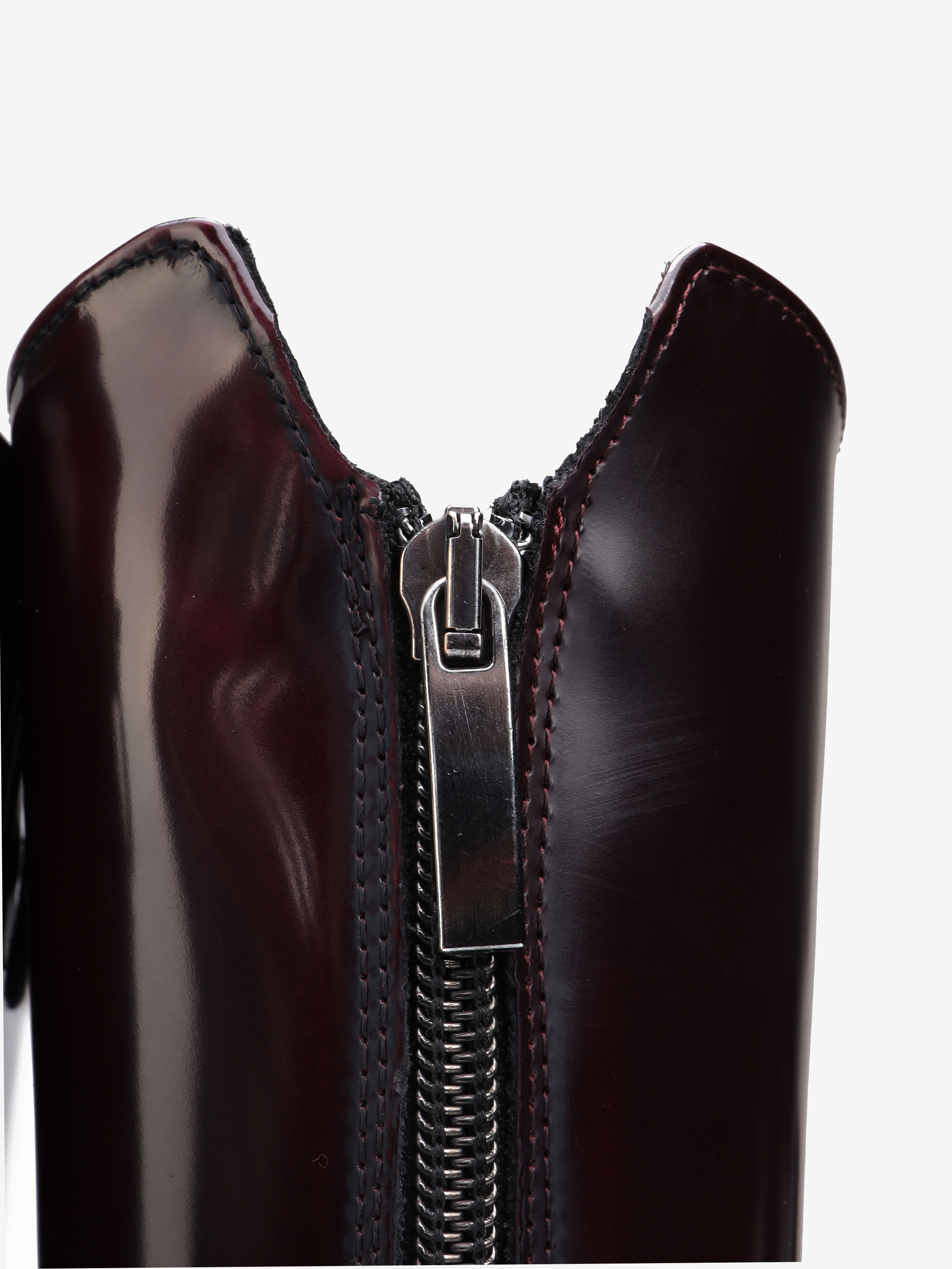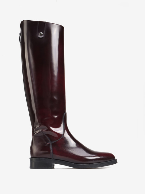 Ponadczasowe oficerki wykonane ze skóry wysokopolerowanej w kolorze bordowym, zapinane na suwak z tyłu.