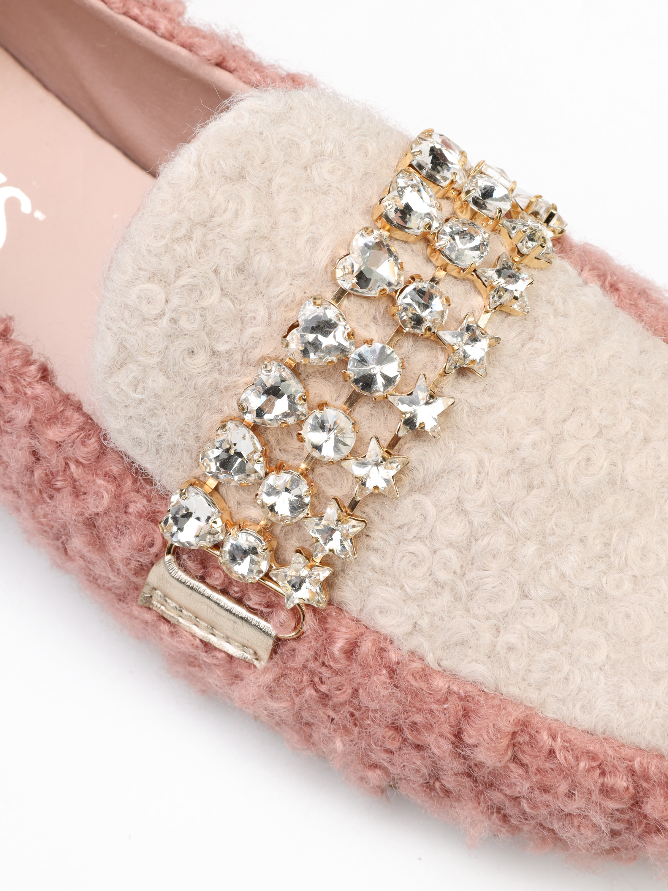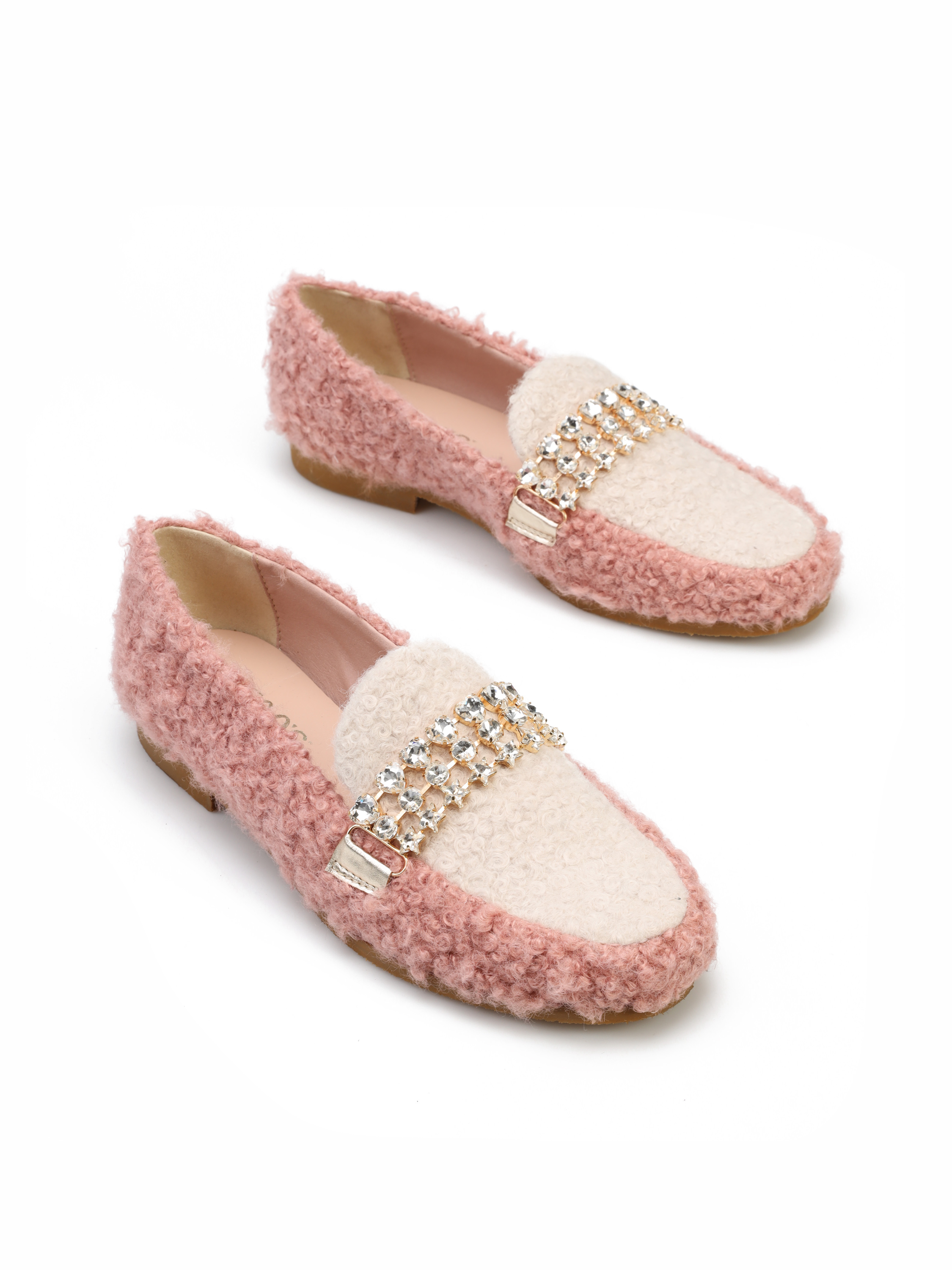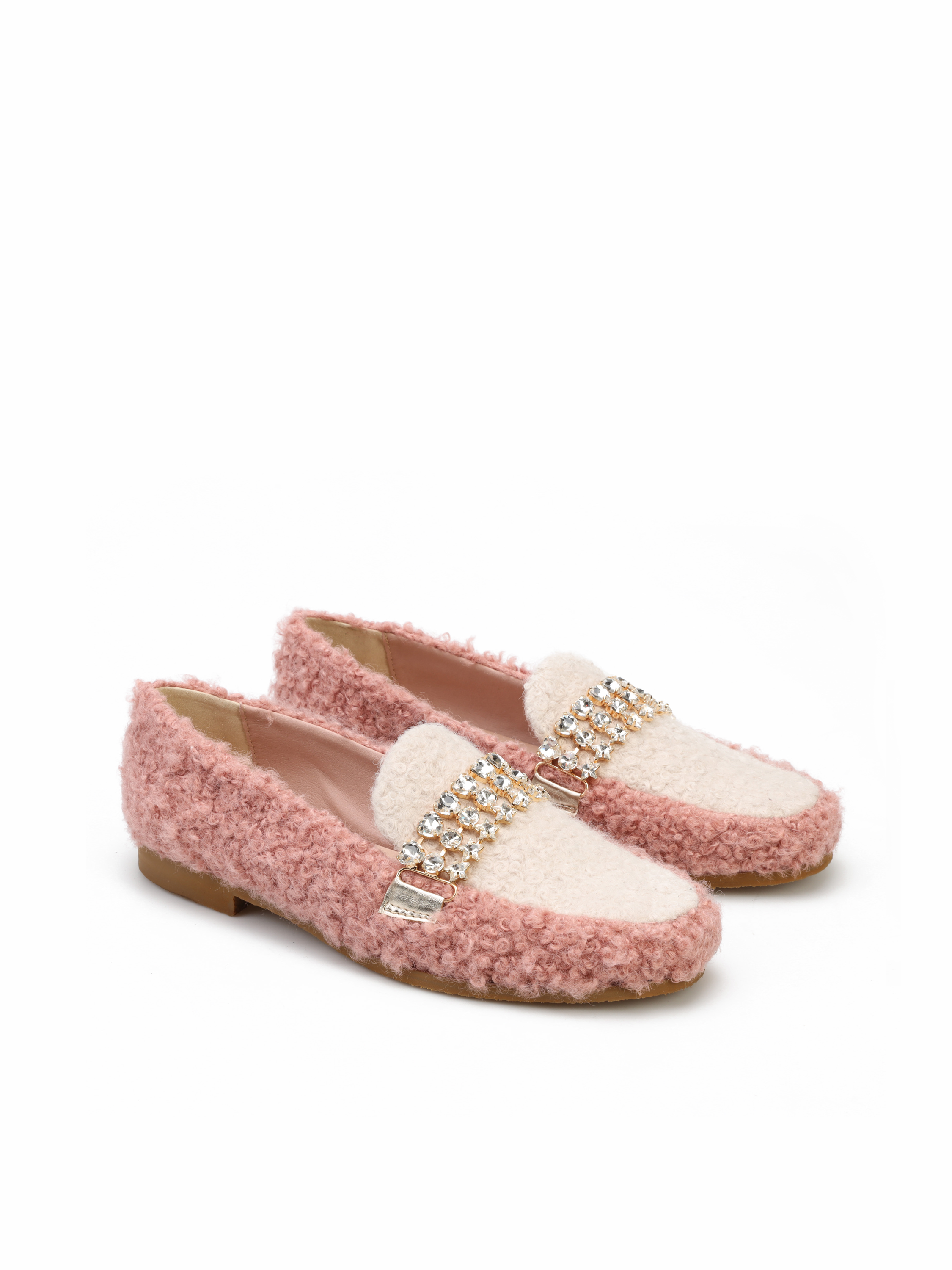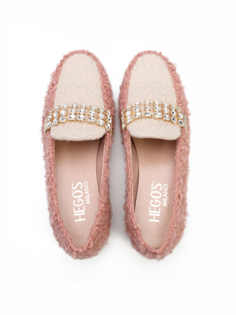 Mokasyny na płaskim obcasie to model dla fanek ciekawych i oryginalnych wzorów. Cholewka zaprojektwana z tkaniny ozdobiona została biżuteryjną klamrą z kamieni. Modowy fason będzię ozdobą Twoich stylizacji.