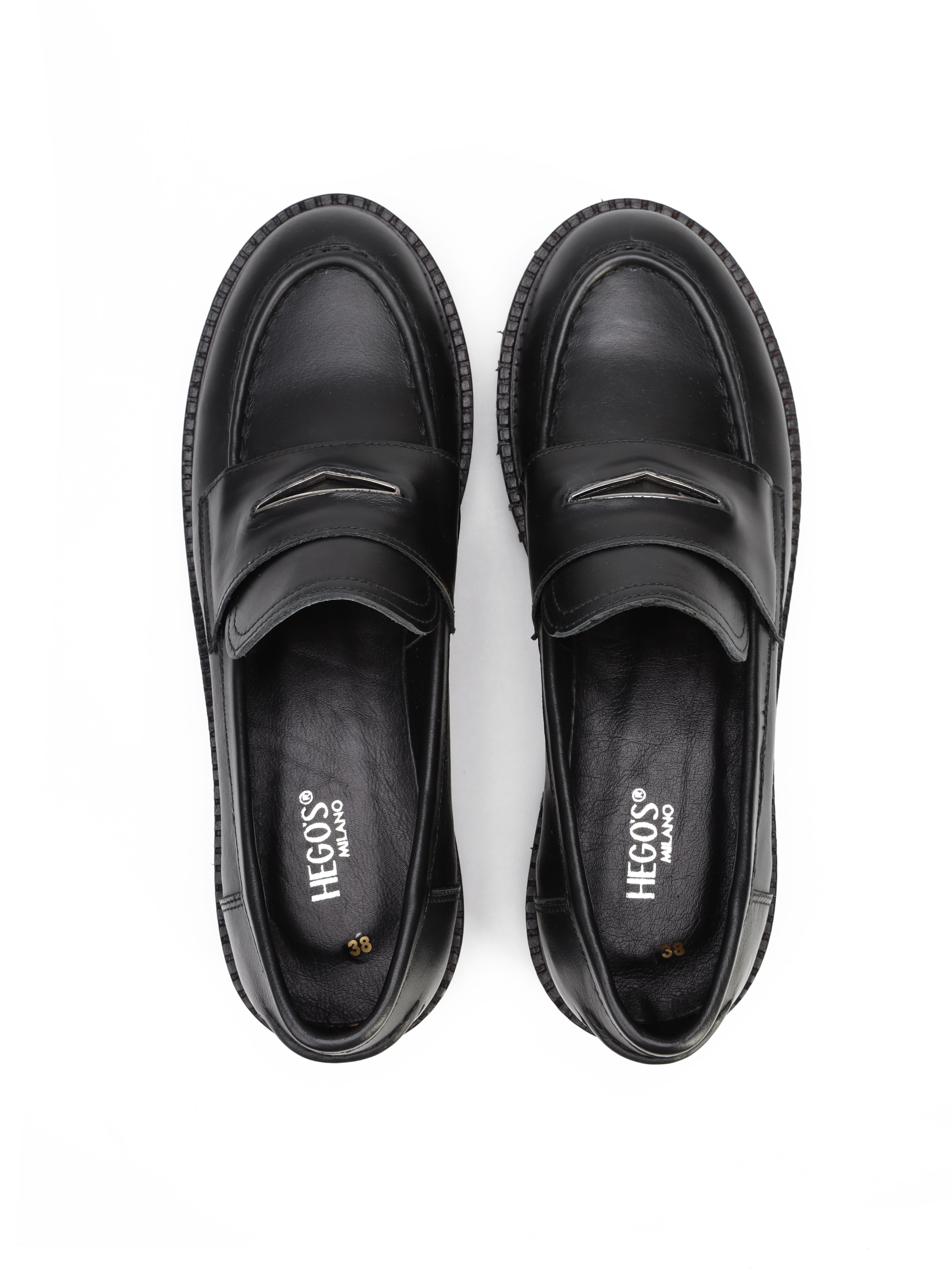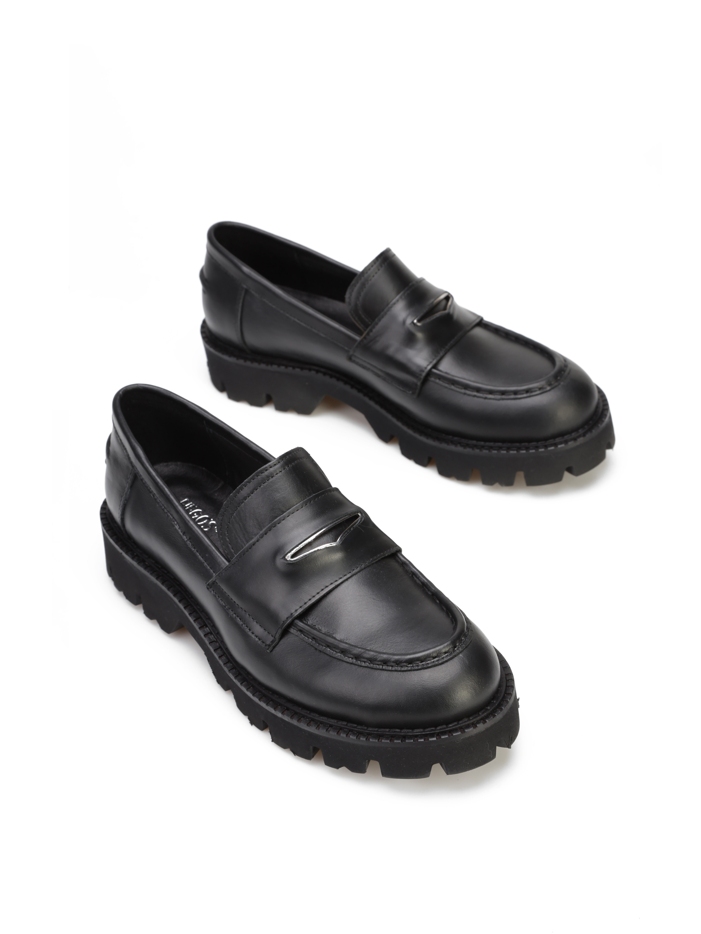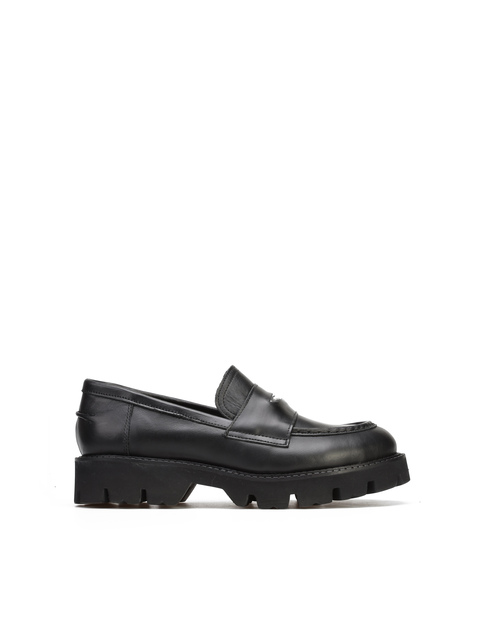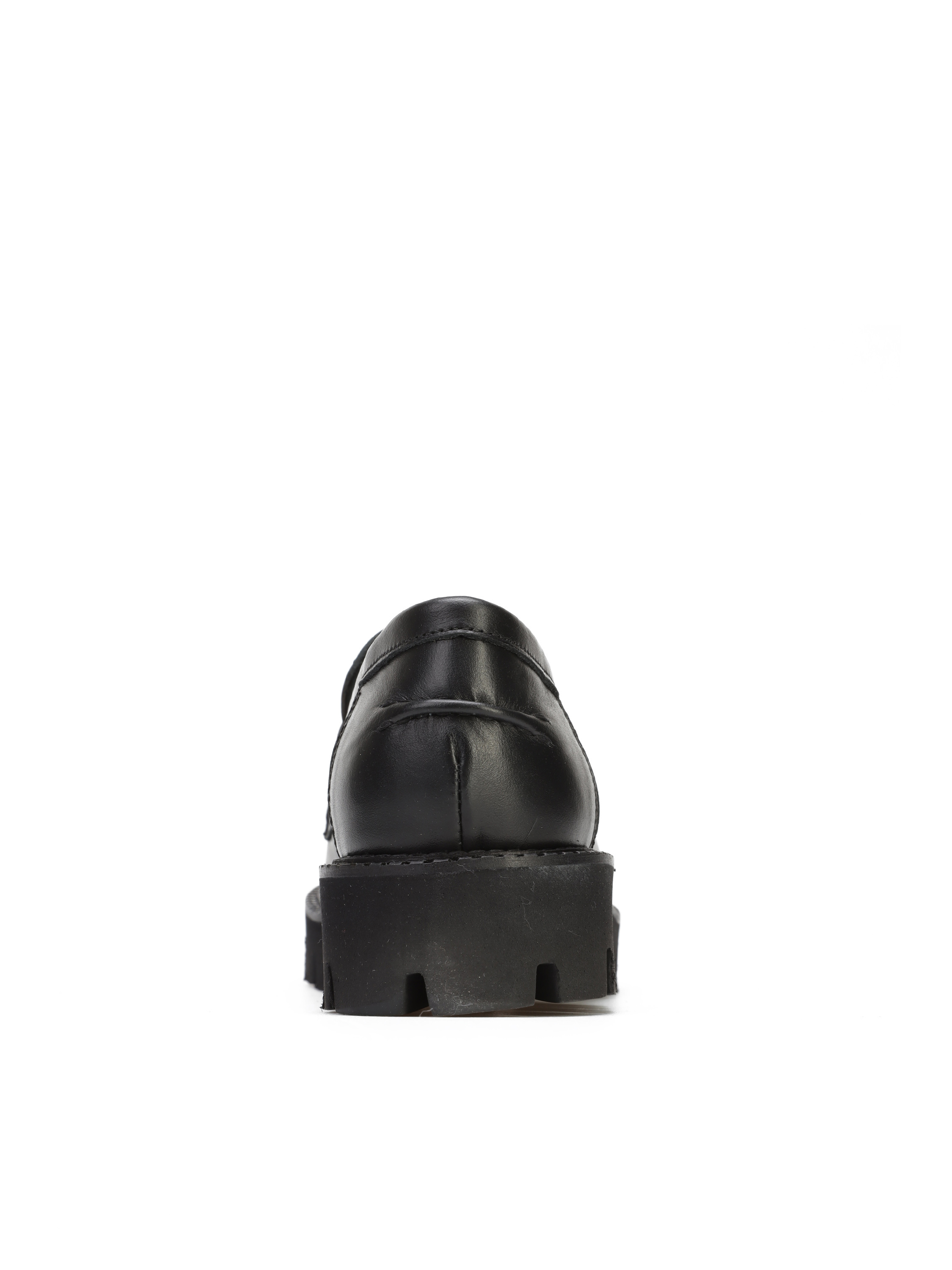 Mokasyny na grubej podeszwie to must have sezonu. Cholewka w ponadczasowym, czarnym kolorze wykonana jest z włoskiej, naturalnej skóry. Model z wysokim językiem w stylu lordsy.