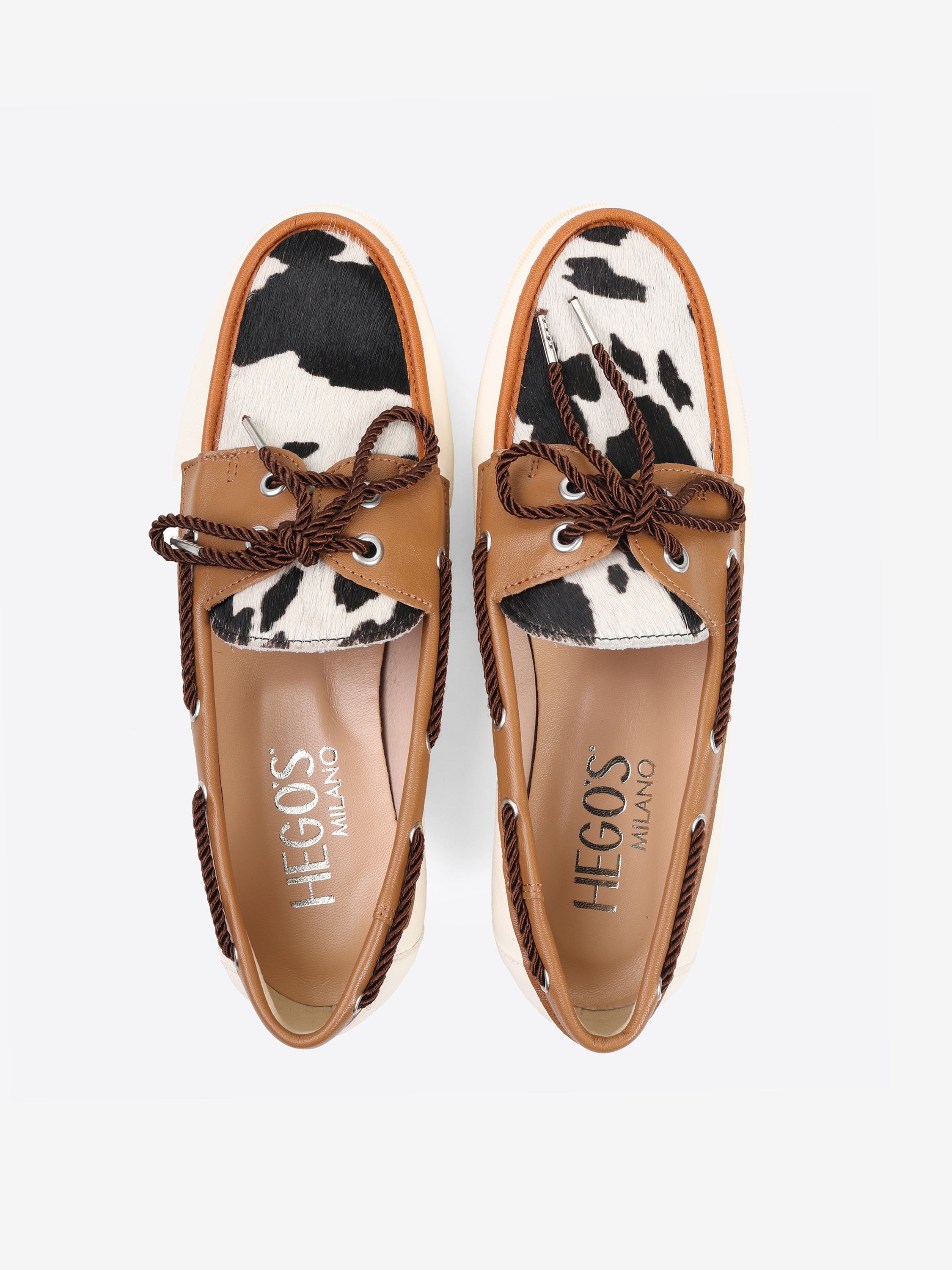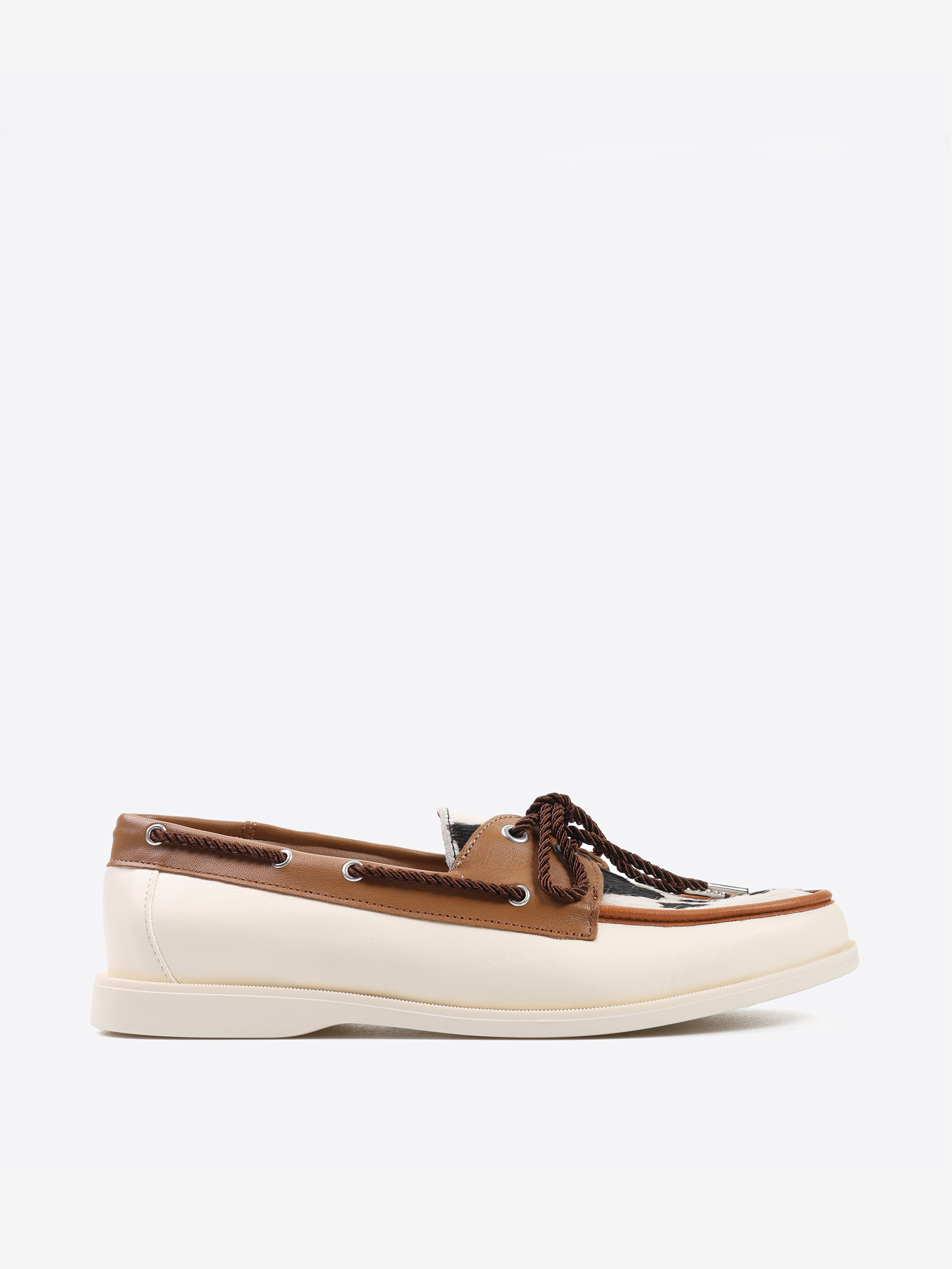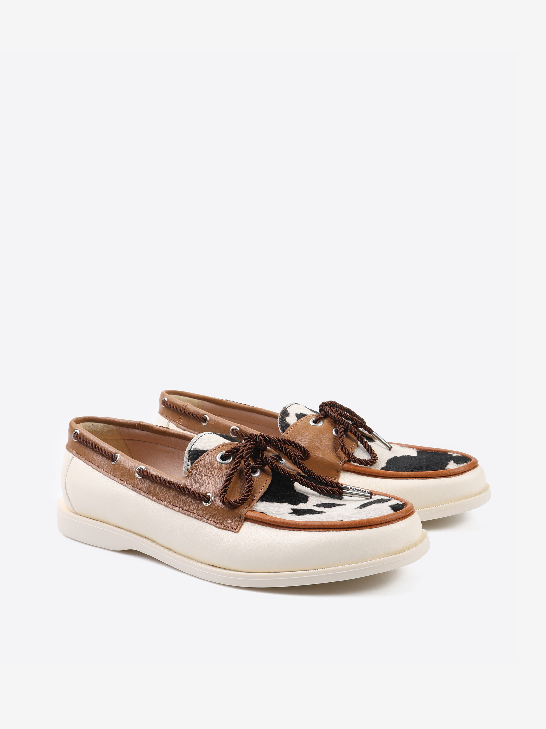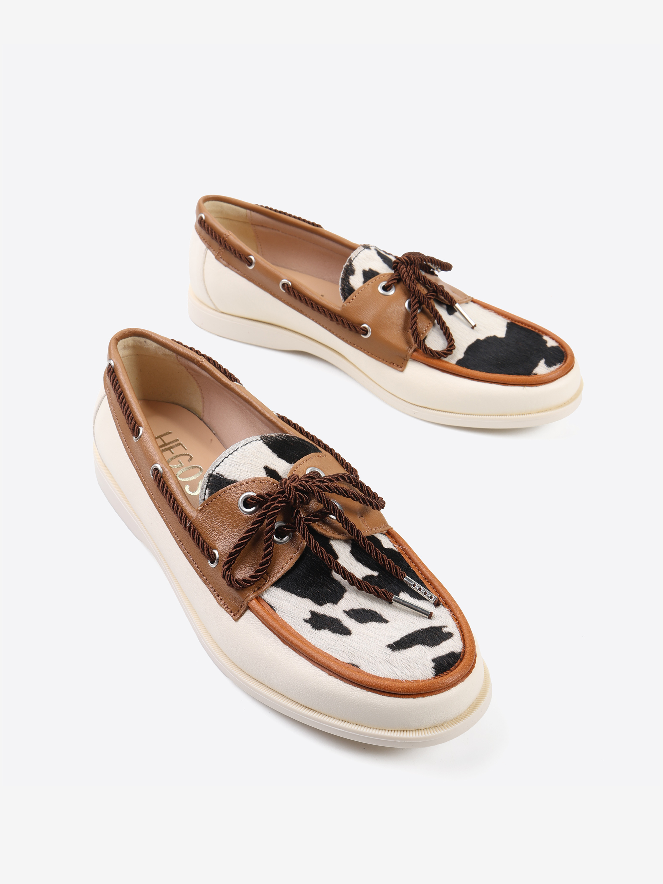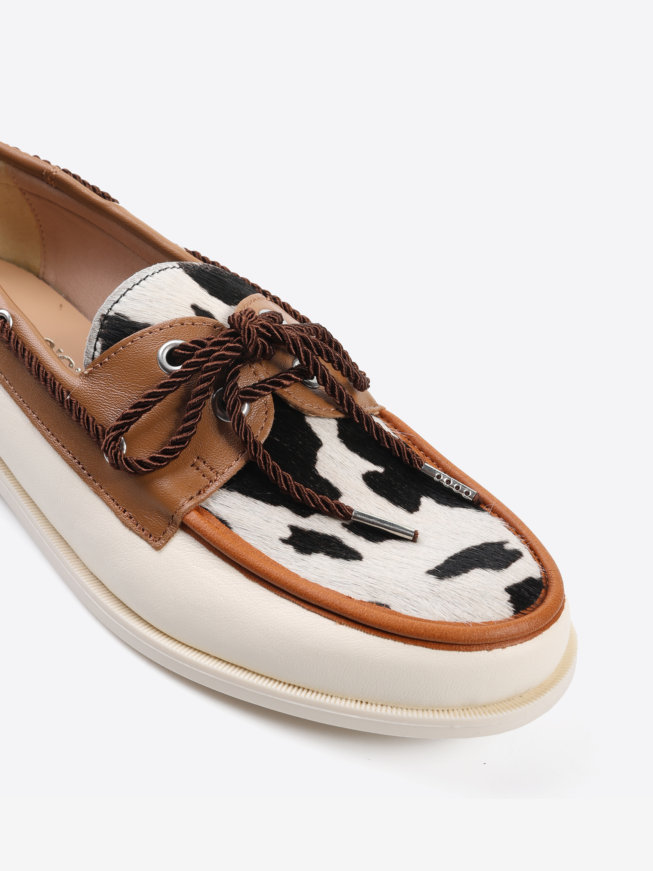 Mokasyny w stylu marynarskim ze wstawką w zwierzęcy wzór. Wiązanie pozwala na idealne dopasowanie buta.