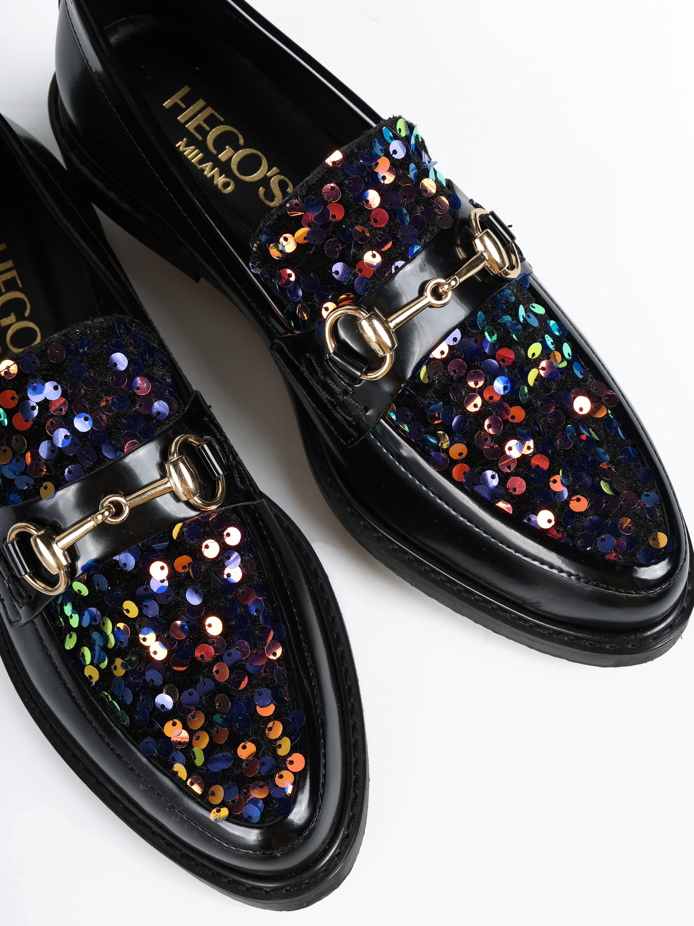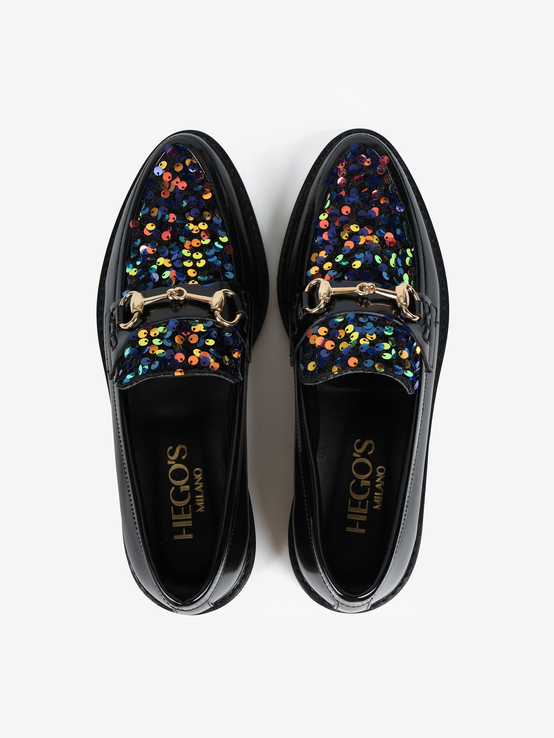 CZARNE MOKASYNY Z CEKINAMI HEGO'S Milano