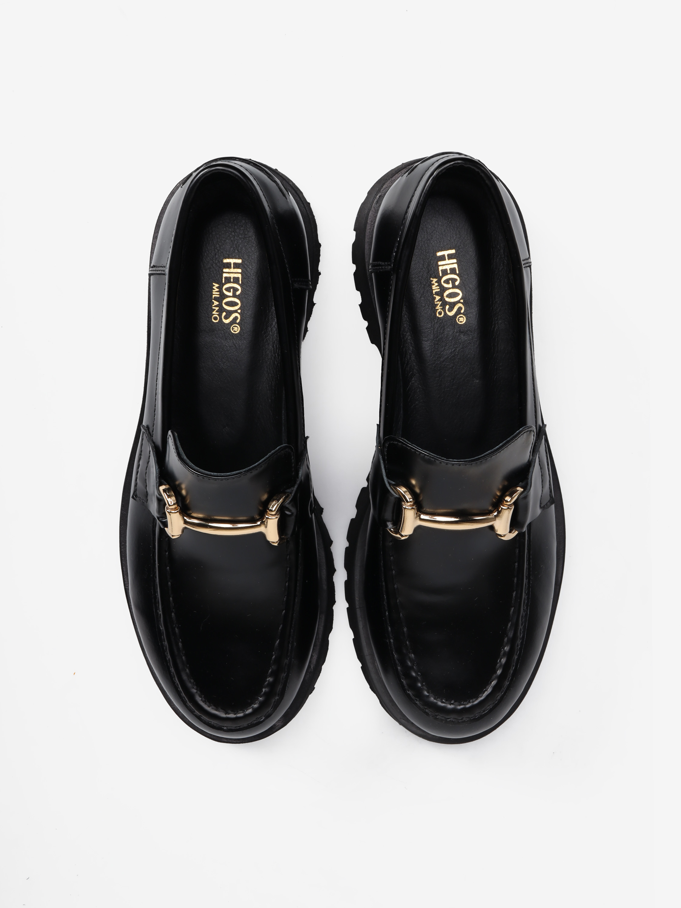 CZARNE MOKASYNY NA GRUBYCH PODESZWACH HEGO'S Milano