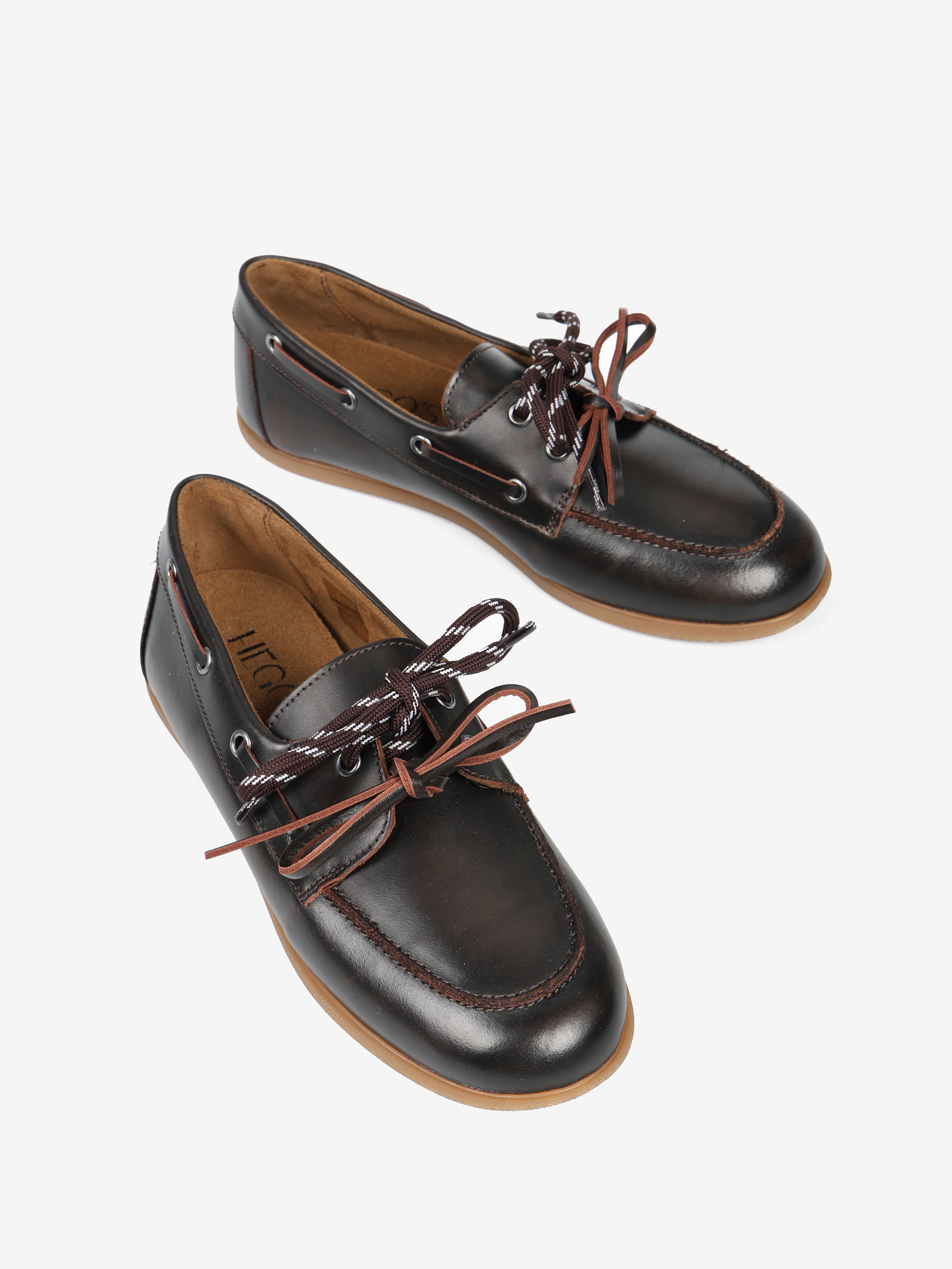 Mokasyny wykonane ze skóry z delikatnym efektem sprania, z wiązaniem pozwalającym na idealne dopasowanie. Dodatkowa para brązowych sznurowadeł.