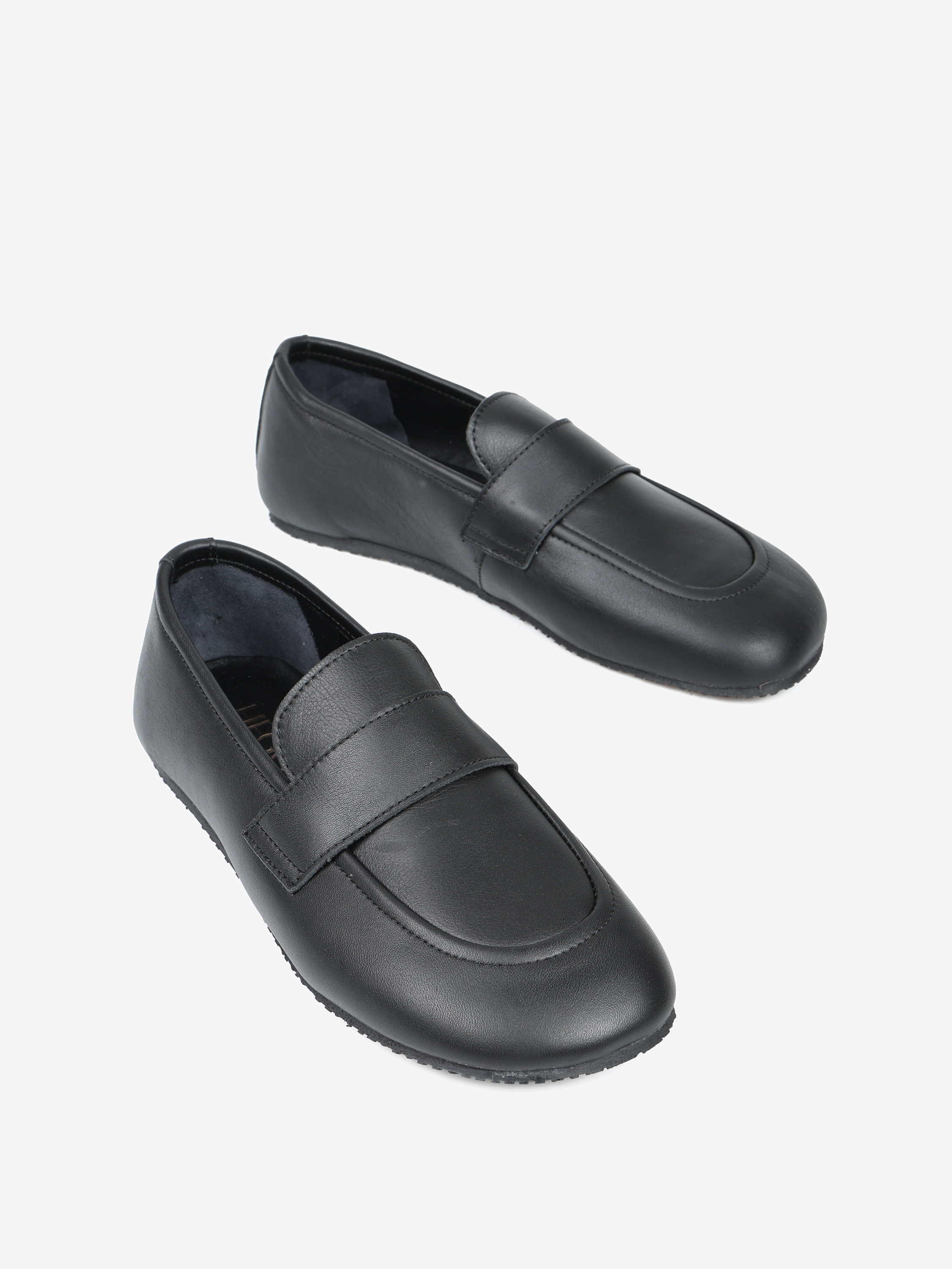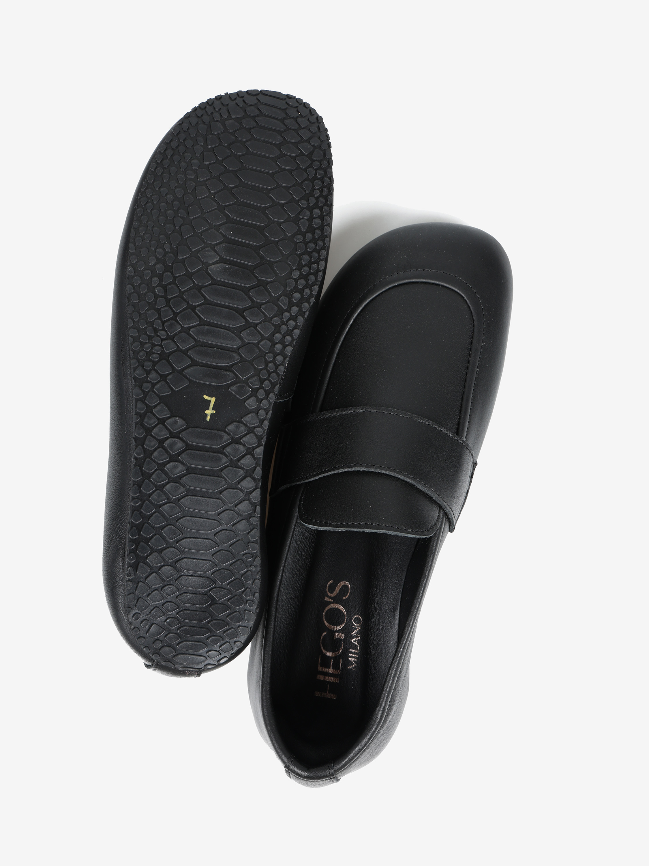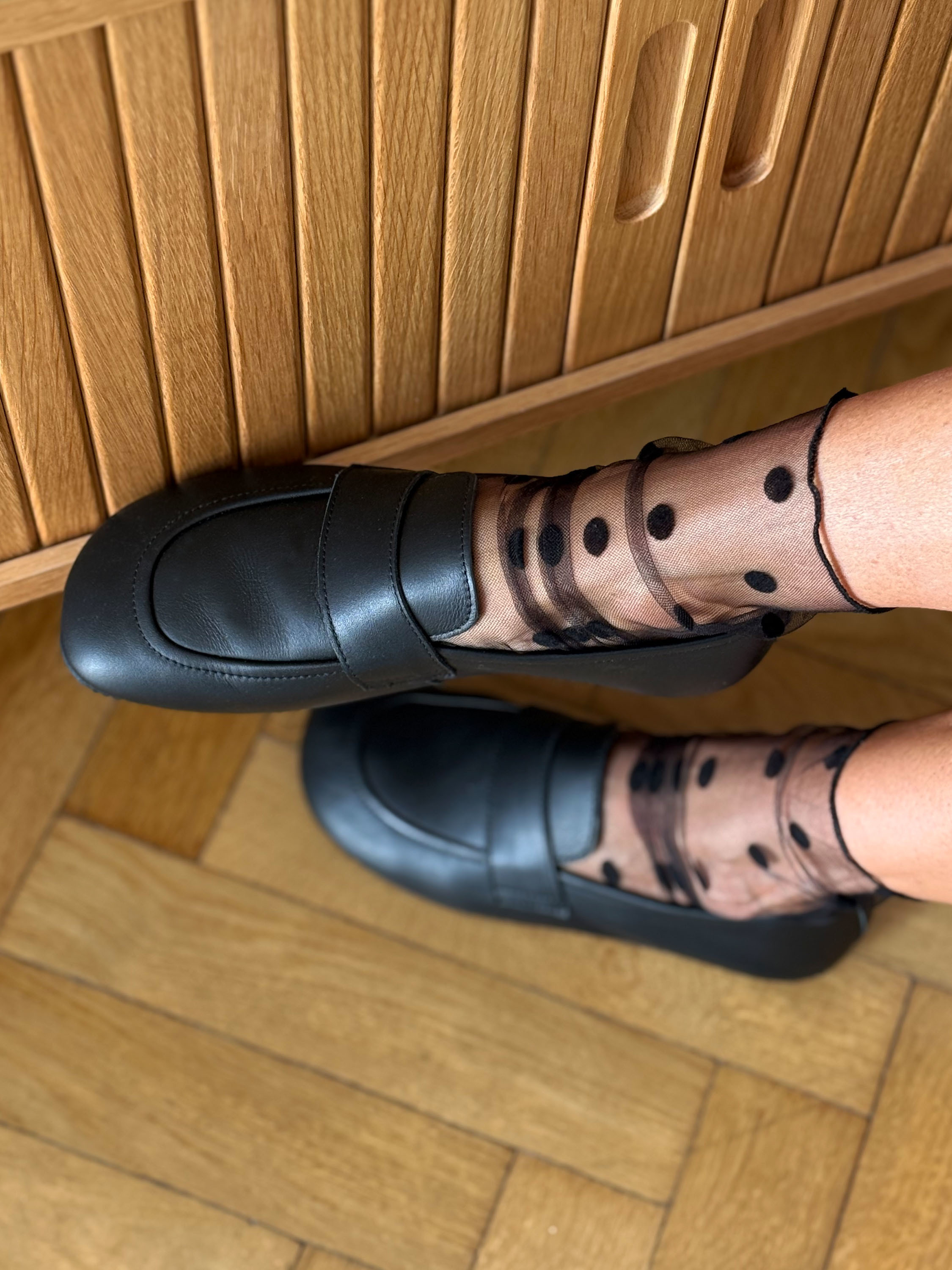 Minimalistyczne mokasyny na płaskiej podeszwie.