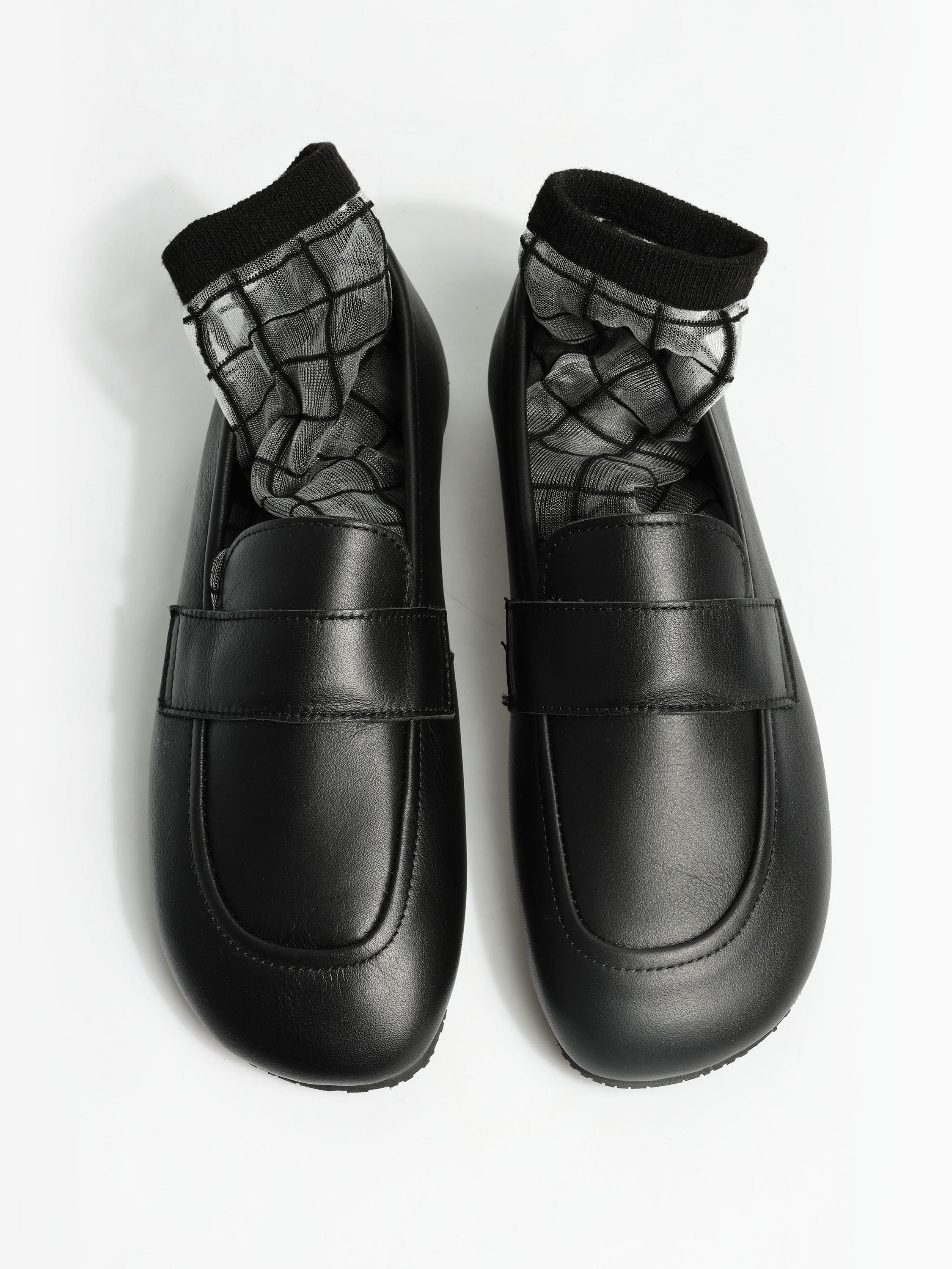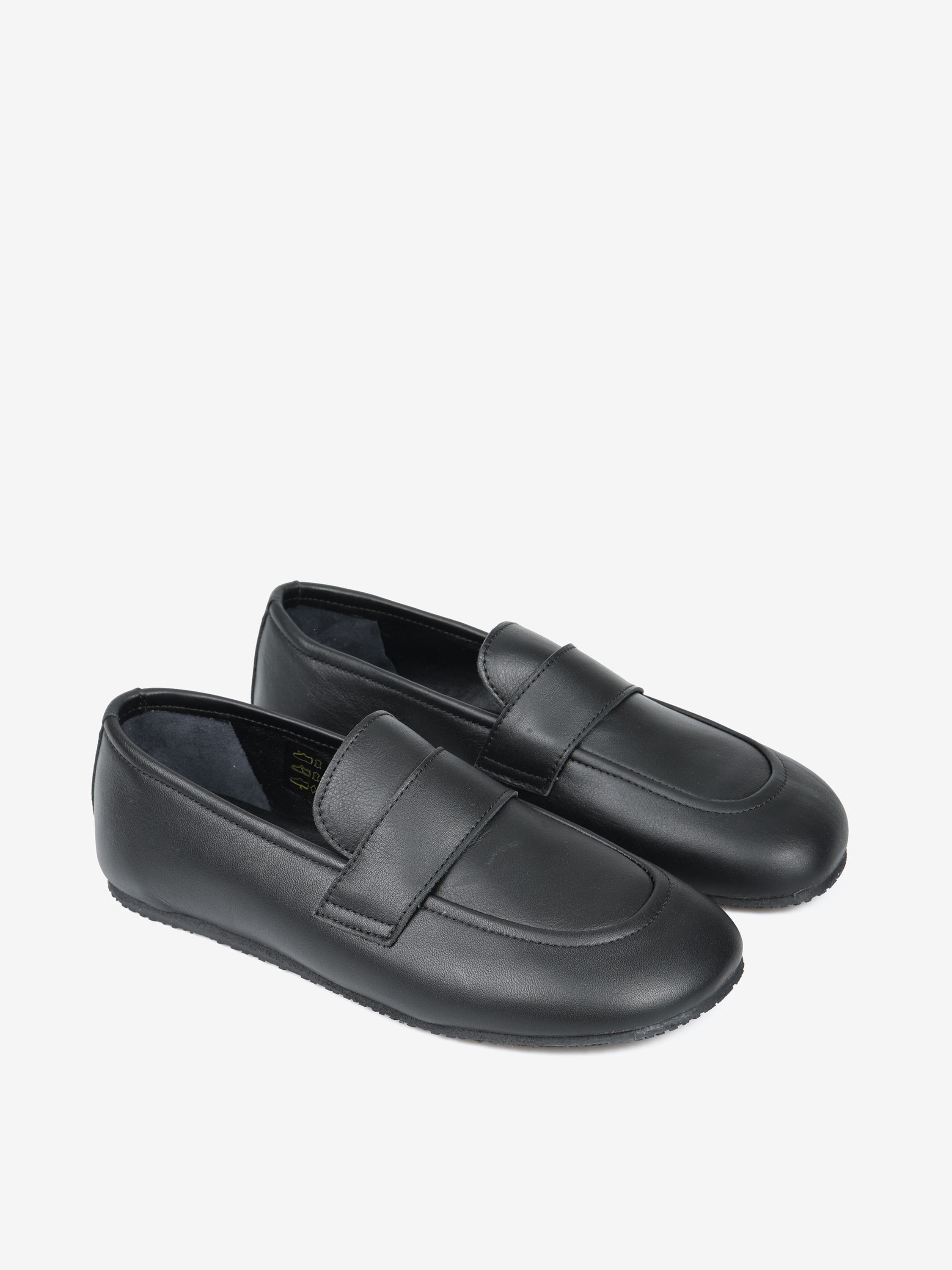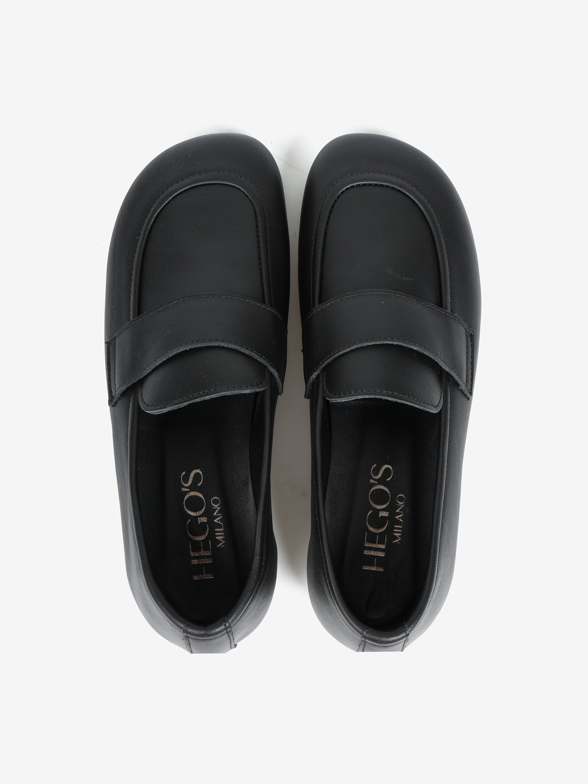 Minimalistyczne mokasyny na płaskiej podeszwie.