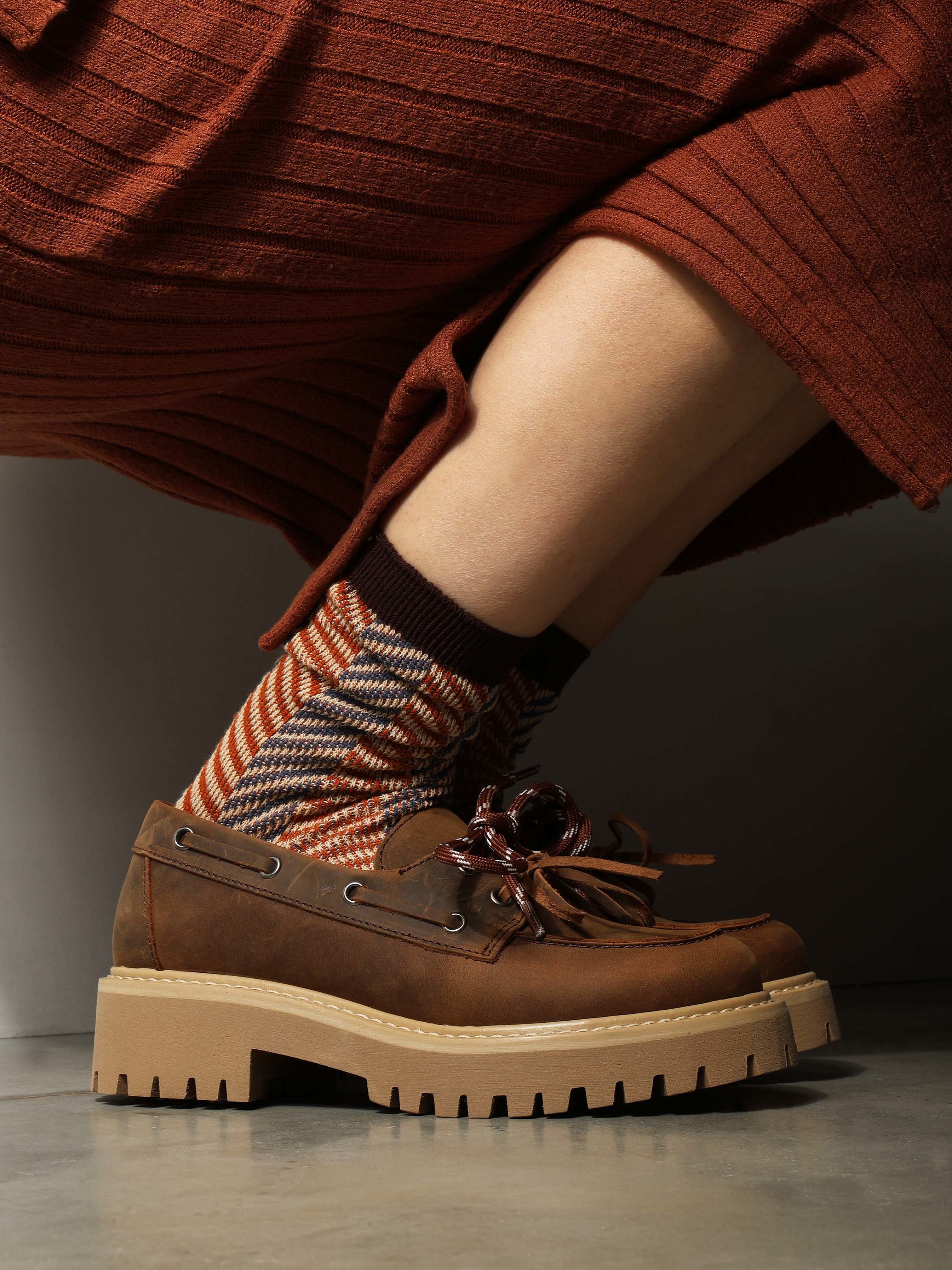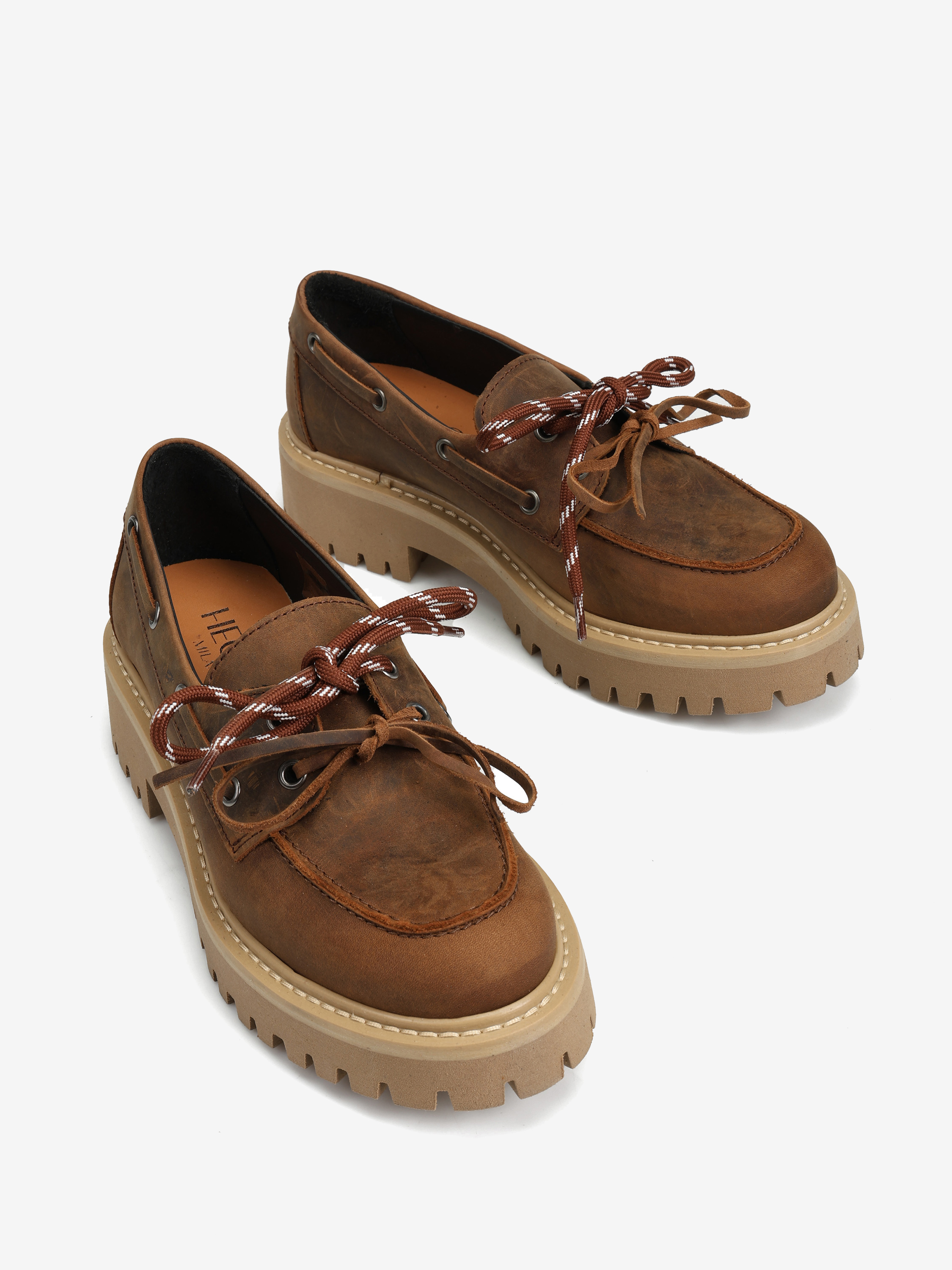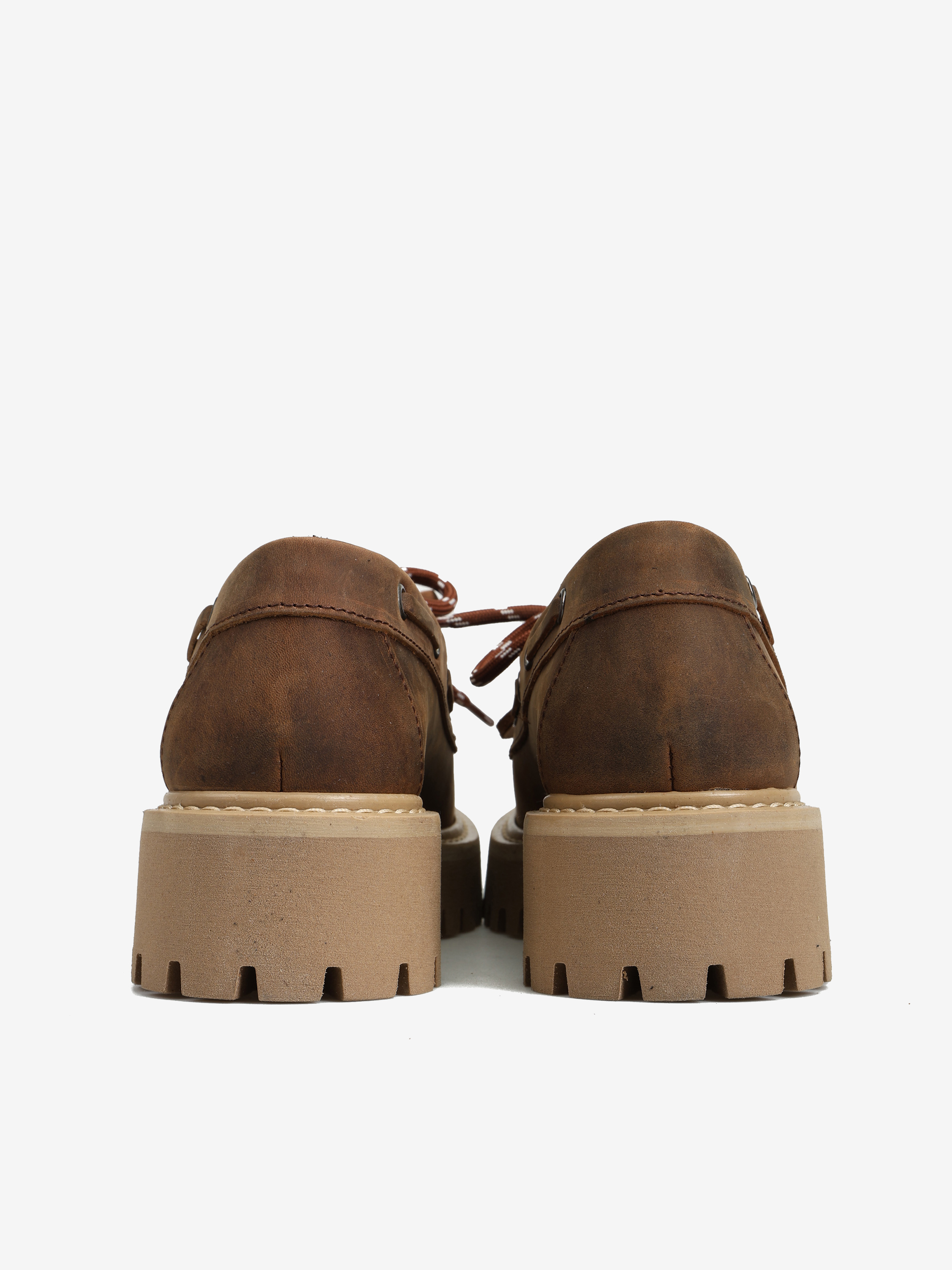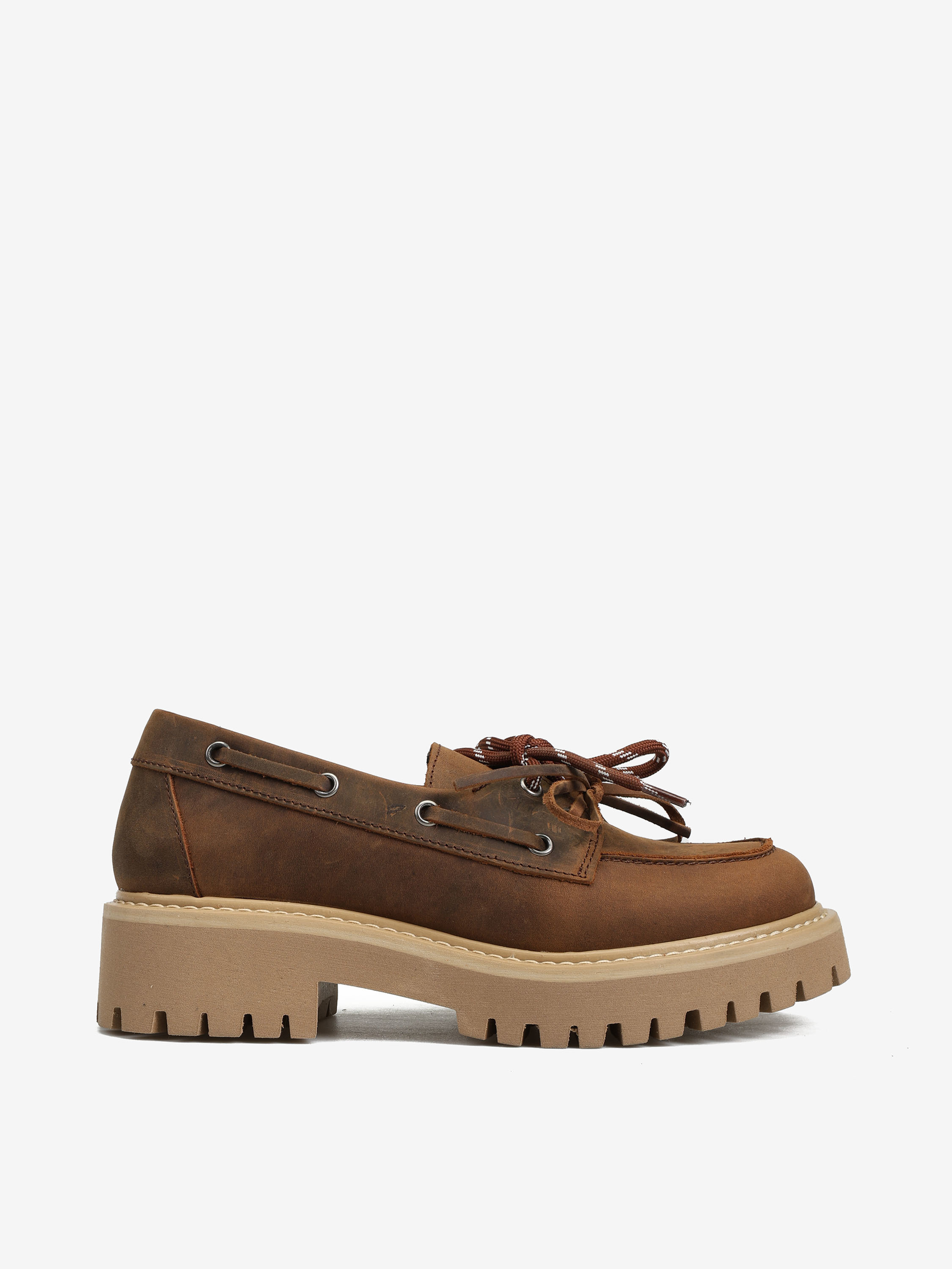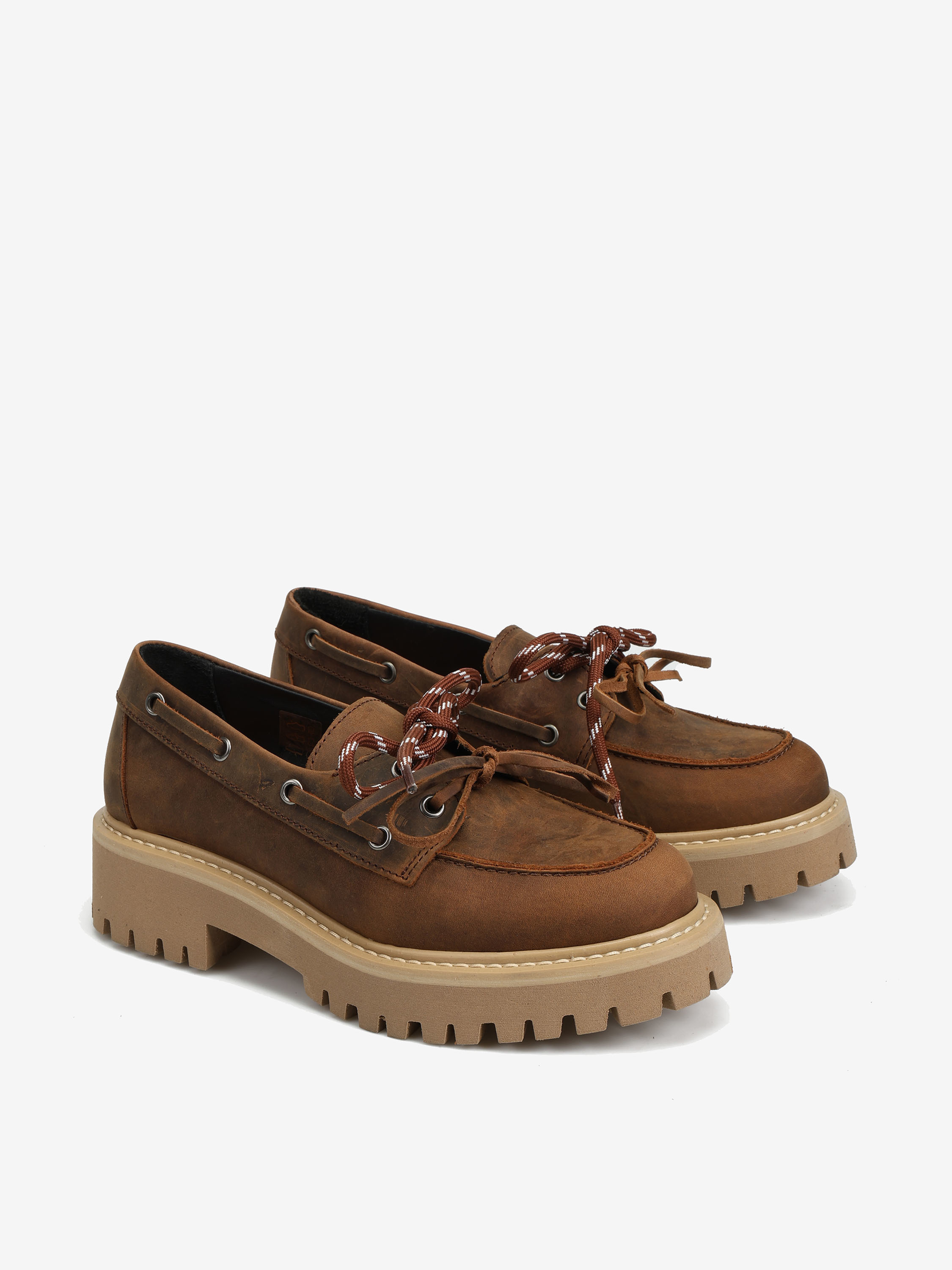 Nubukowe półbuty BOAT SHOES na platformie. Wiązanie na rzemyk i dodatkowa para sznurowadeł.