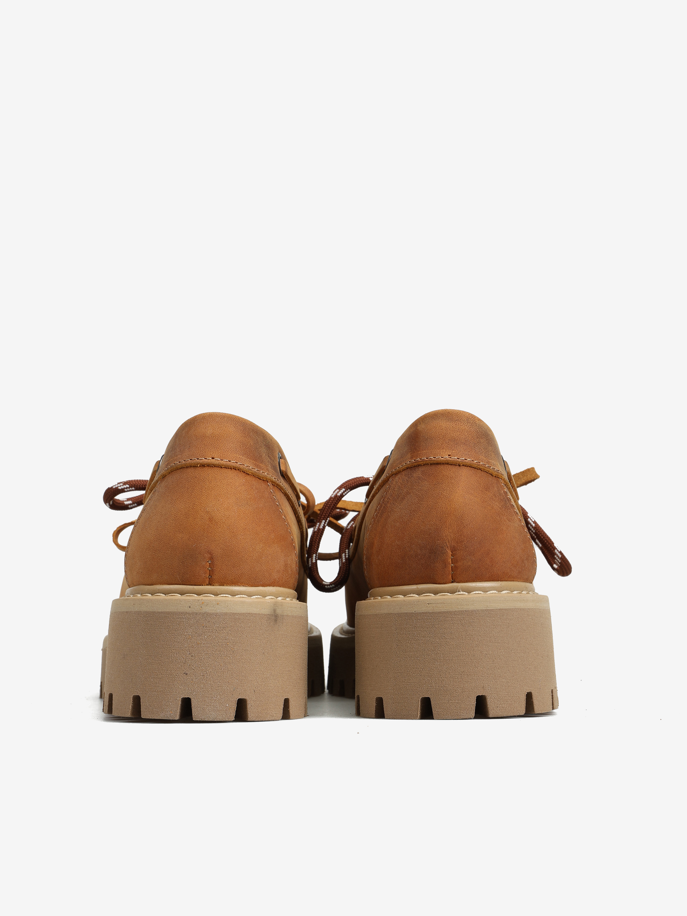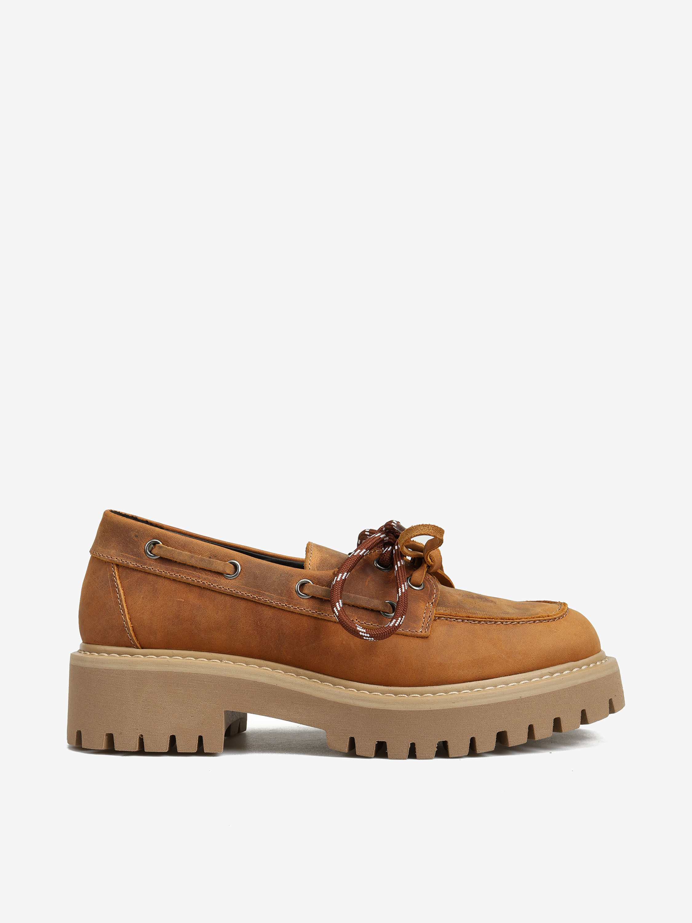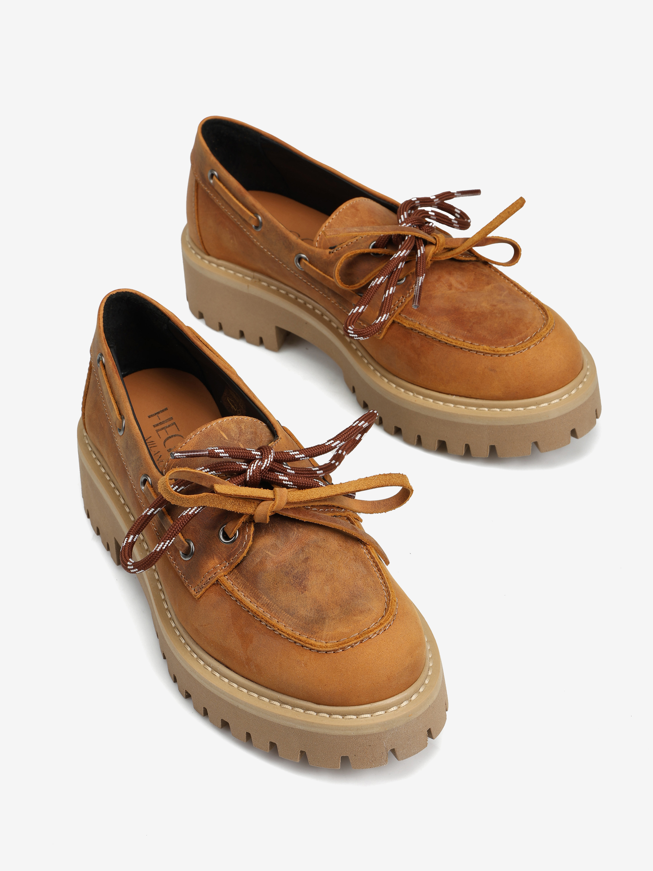 Nubukowe półbuty BOAT SHOES na platformie. Wiązanie na rzemyk i dodatkowa para sznurowadeł.