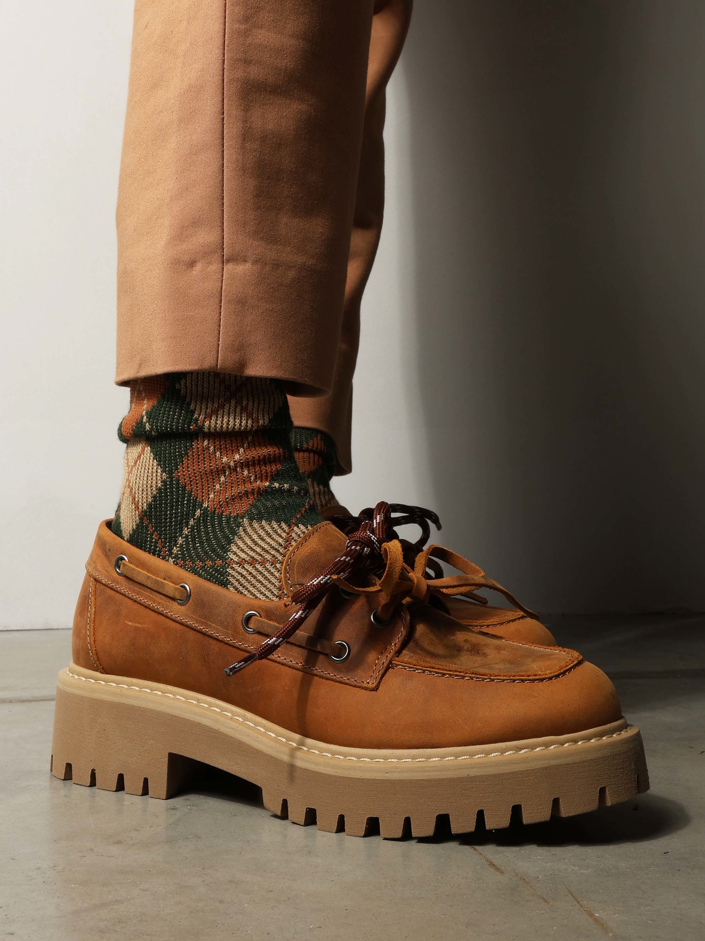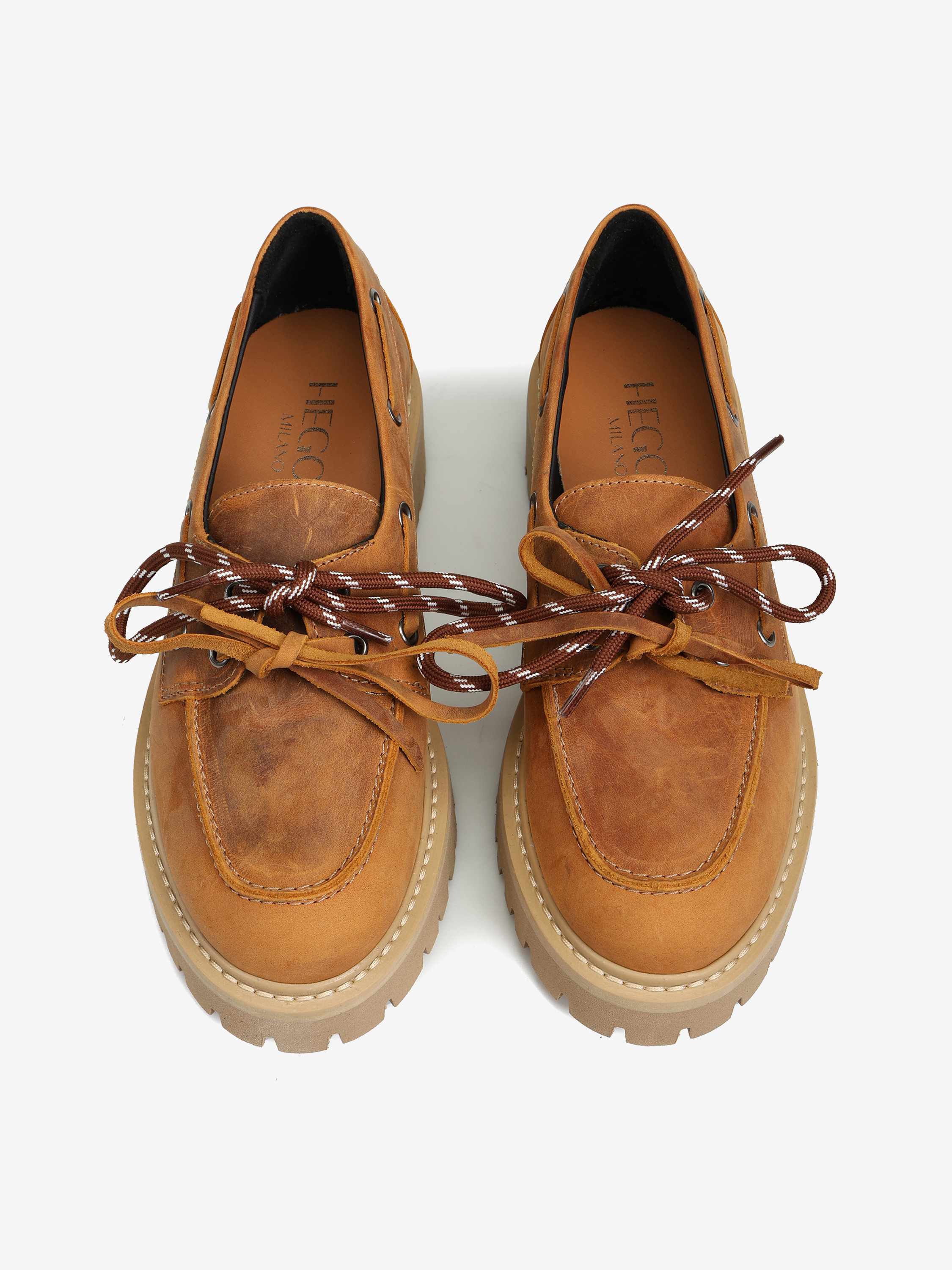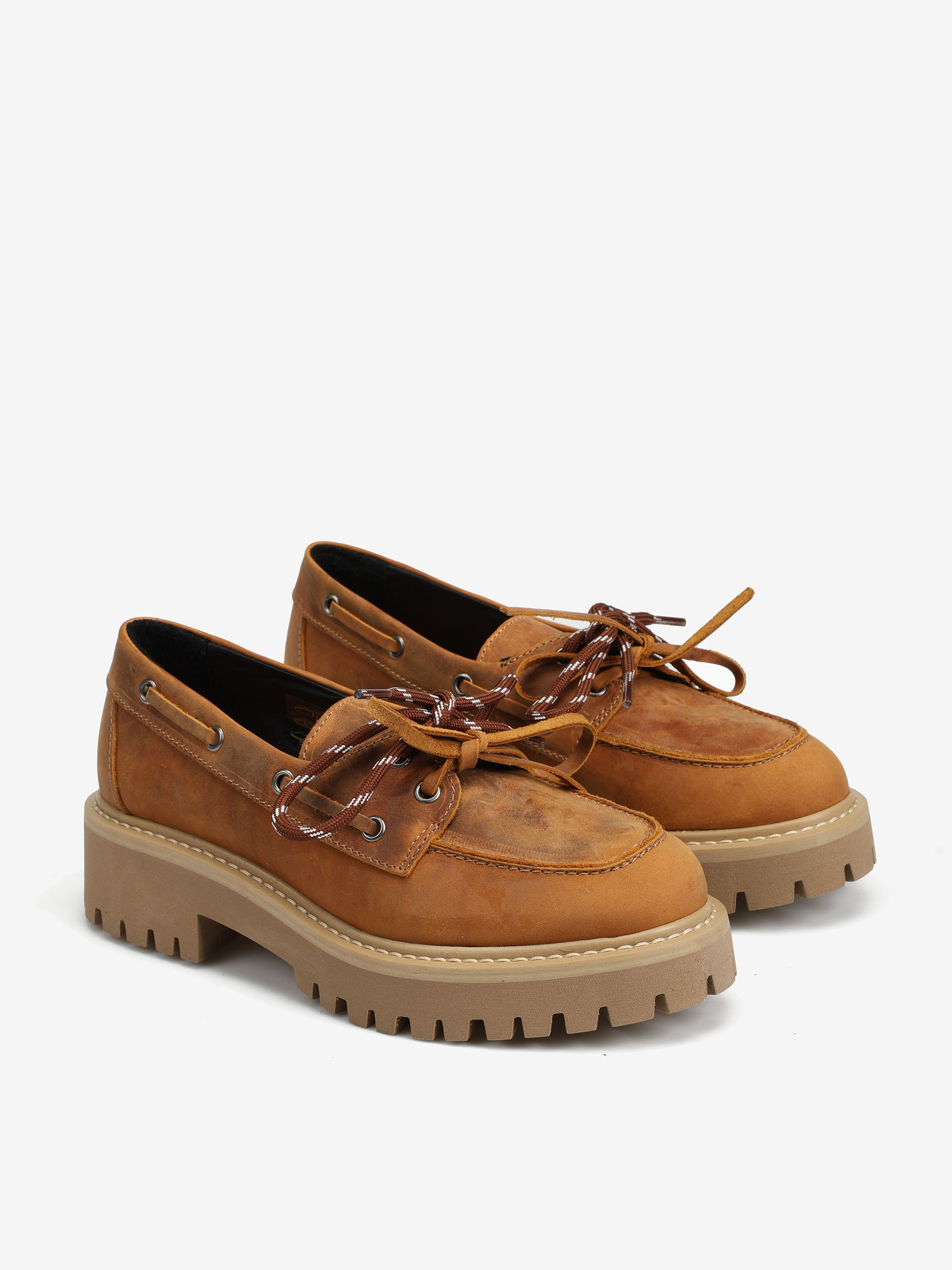 Nubukowe półbuty BOAT SHOES na platformie. Wiązanie na rzemyk i dodatkowa para sznurowadeł.