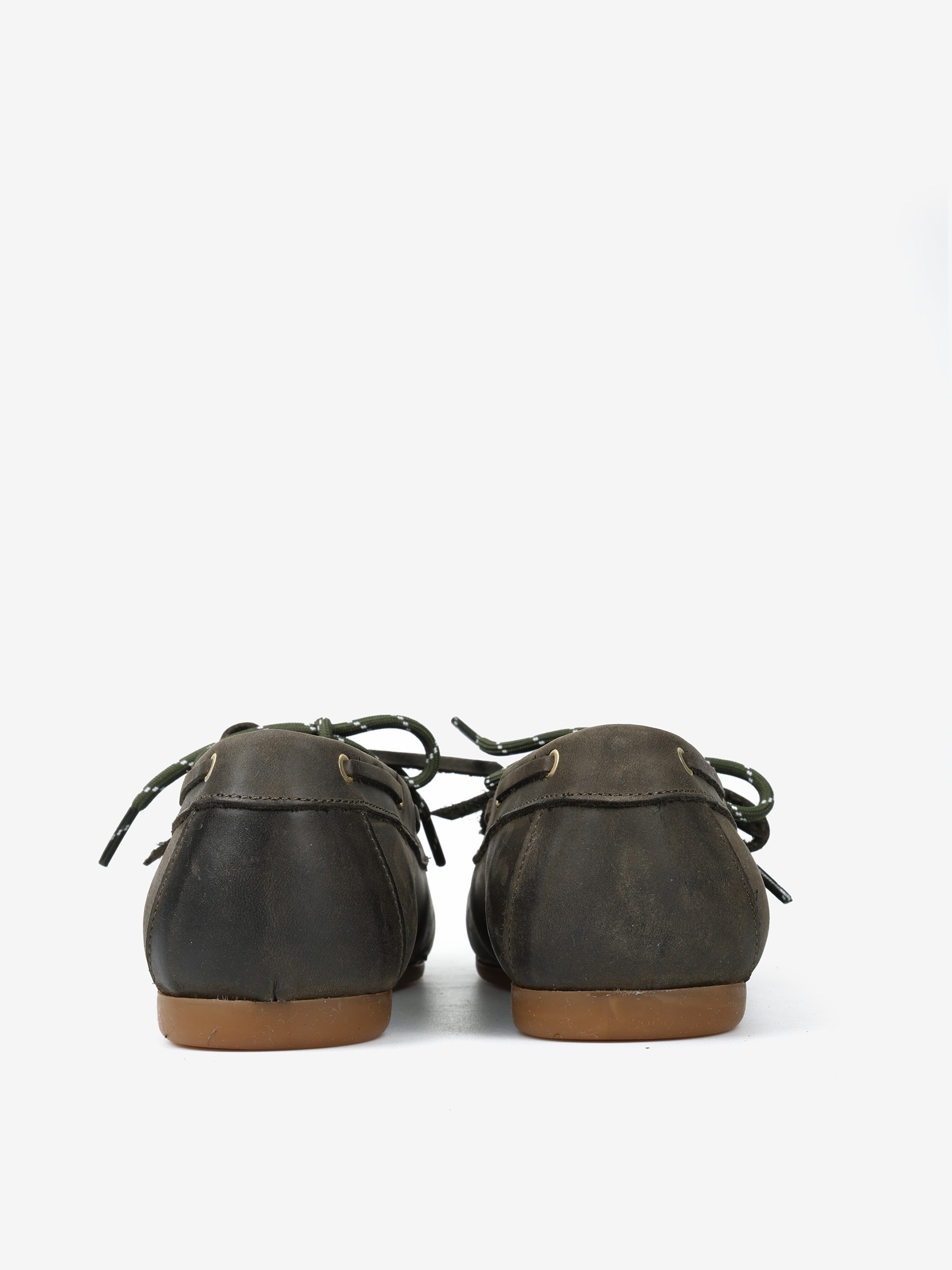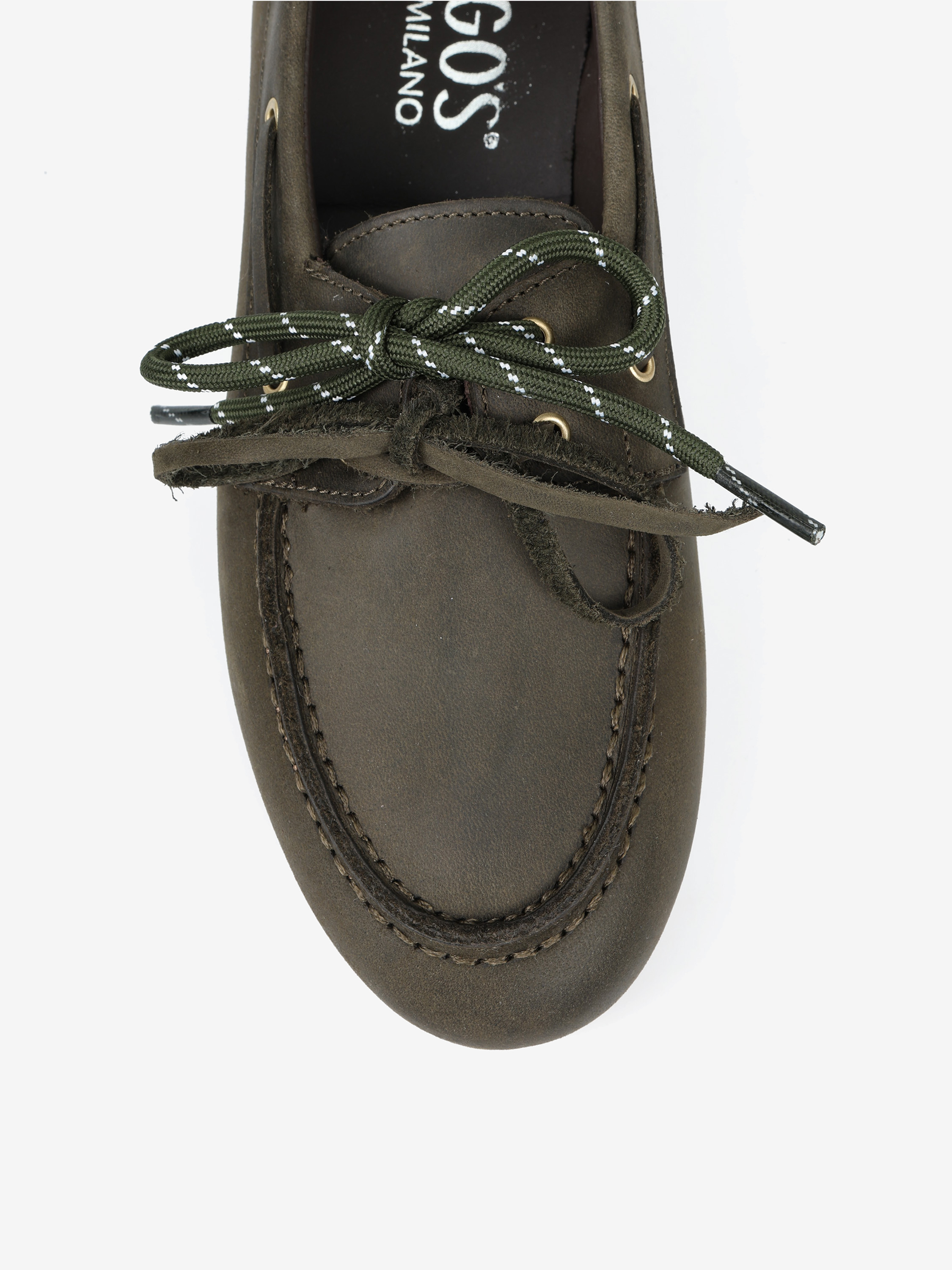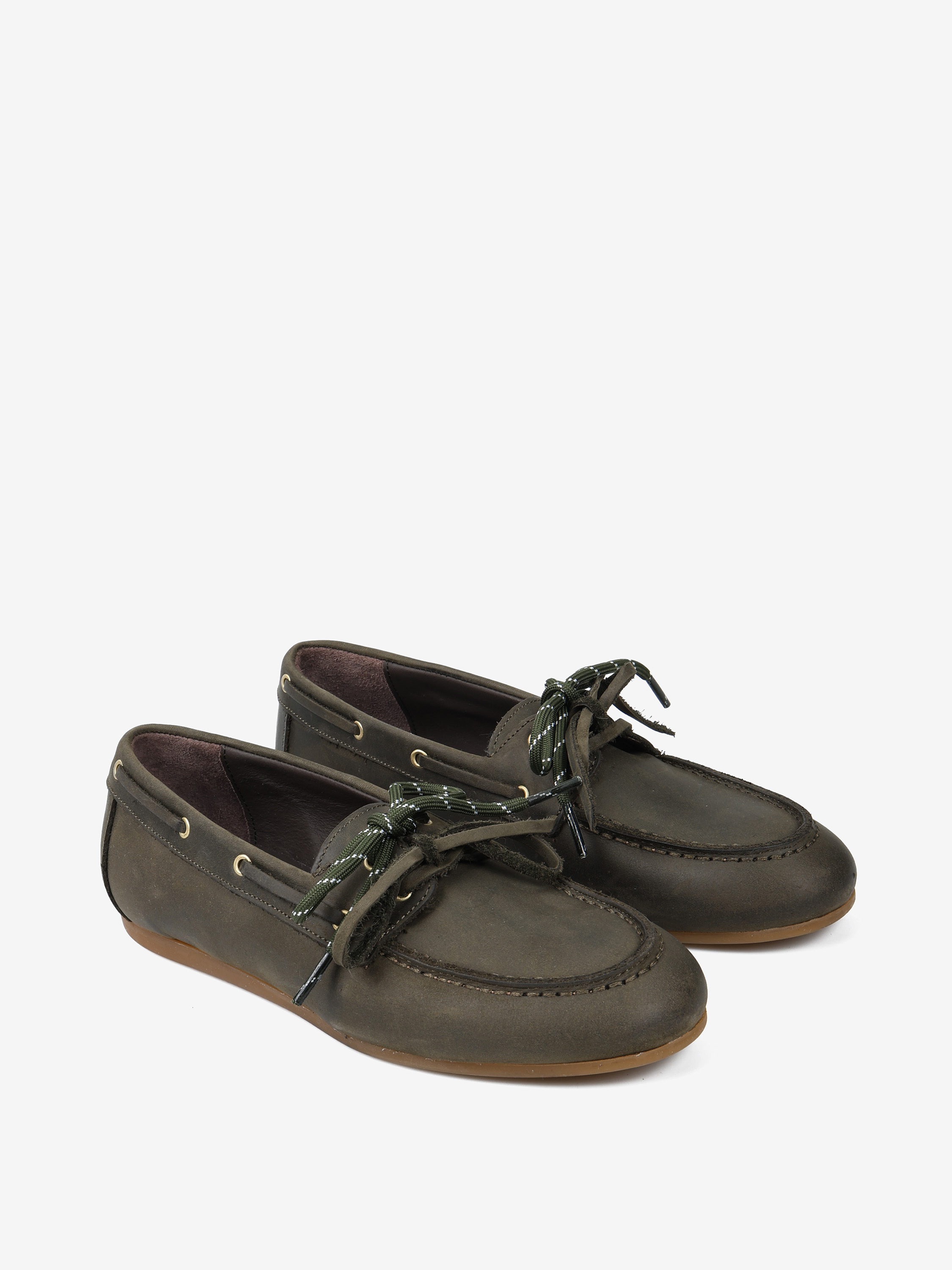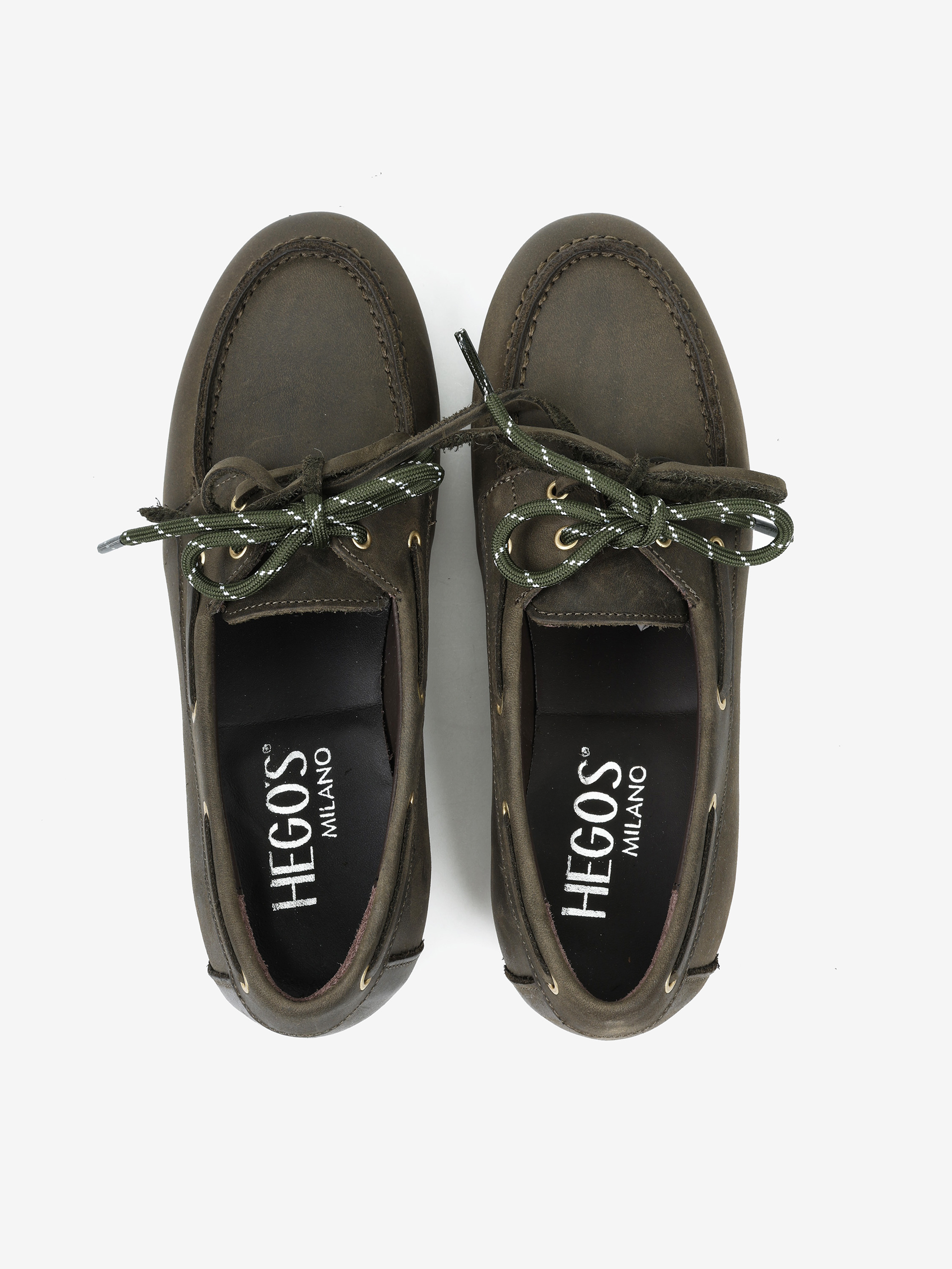 Mokasyny wykonane z nubuku z wiązaniem pozwalającym na idealne dopasowanie. Dodatkowa para zielonych sznurowadeł.