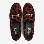 Mokasyny wykonane z zamszu ze wzorem w panterkę. Delikatnie przezroczysta podeszwa i metalowe wędzidło.