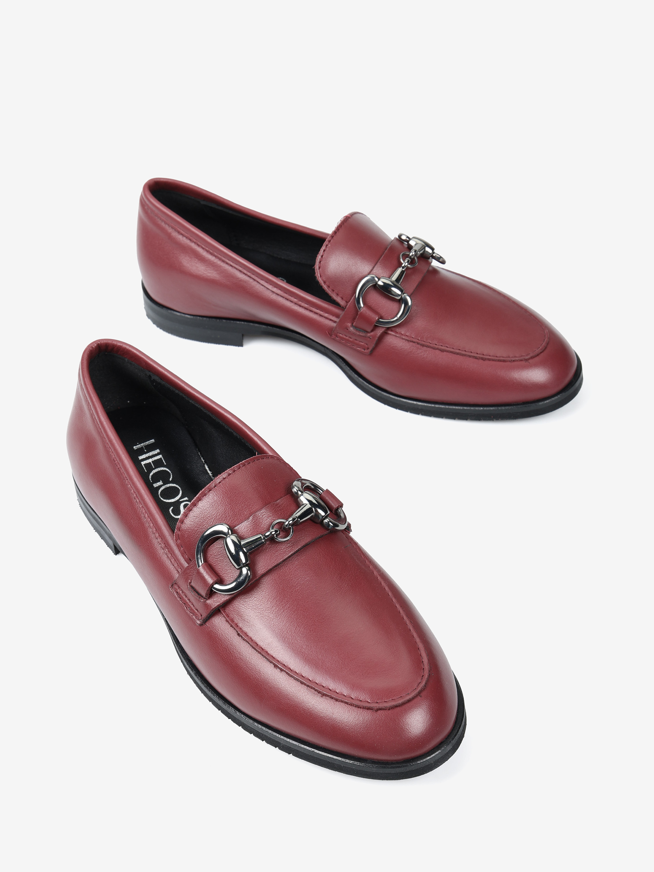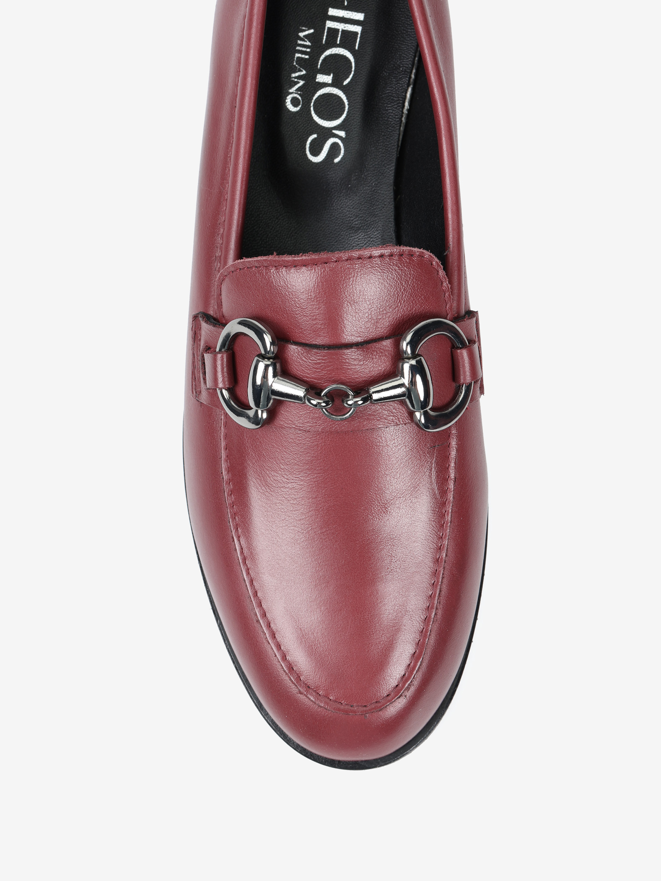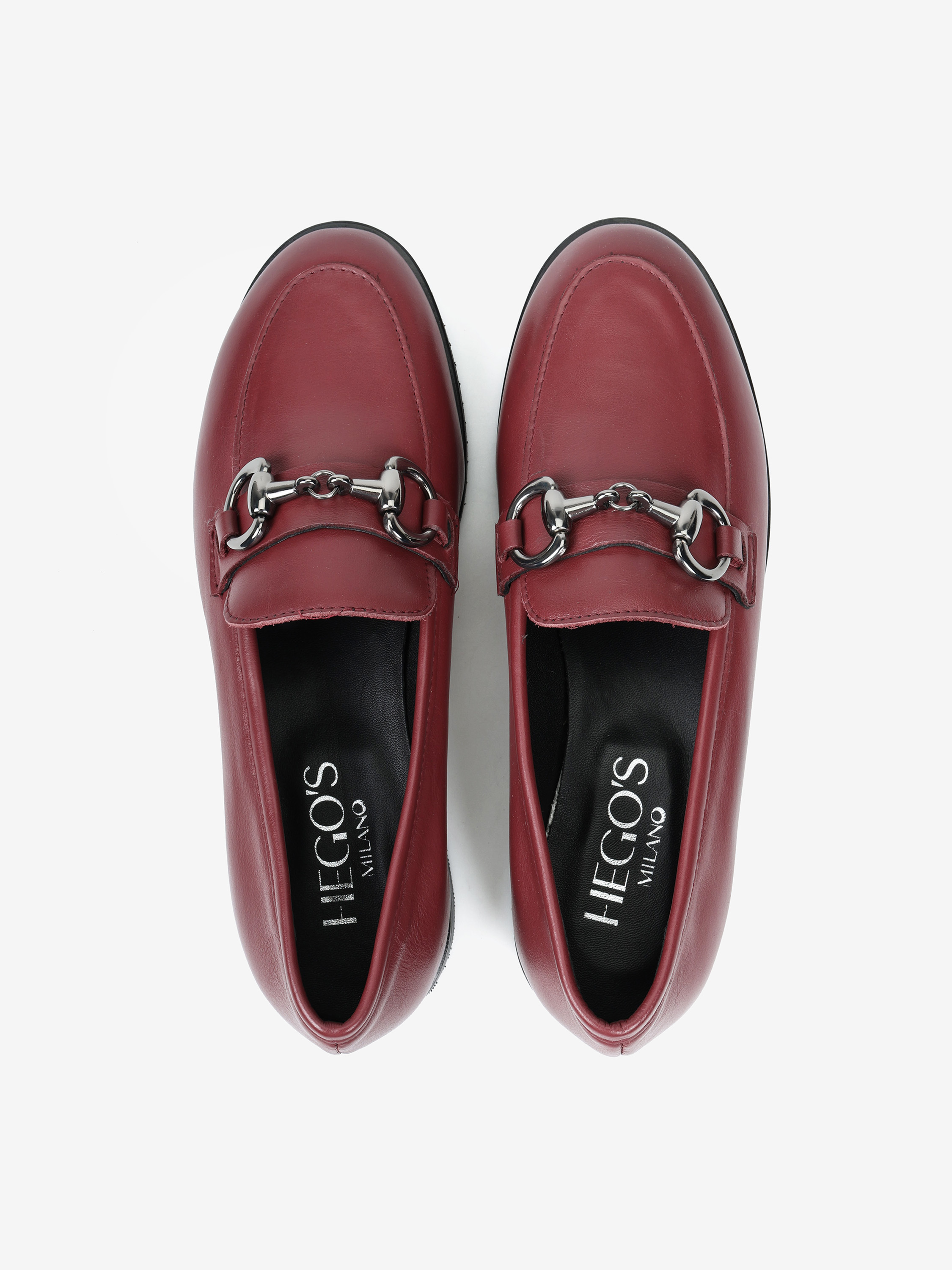 Mokasyny na płaskim obcasie wykonane są z włoskiej skóry naturalnej. Bordowa cholewka ozdobiona została wędzidłem. Wykonane z miękkiej i delikatnej skóry.
