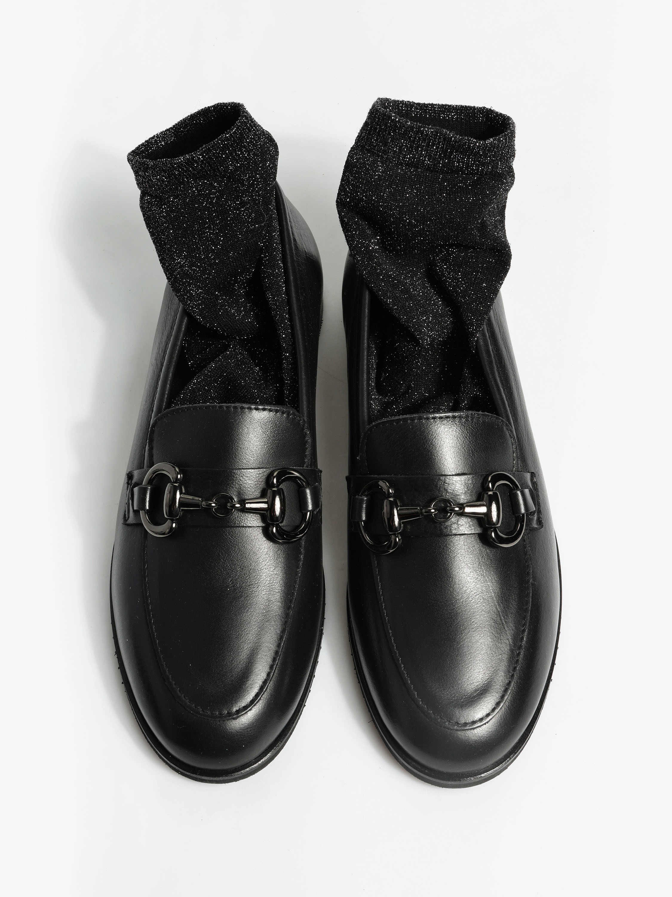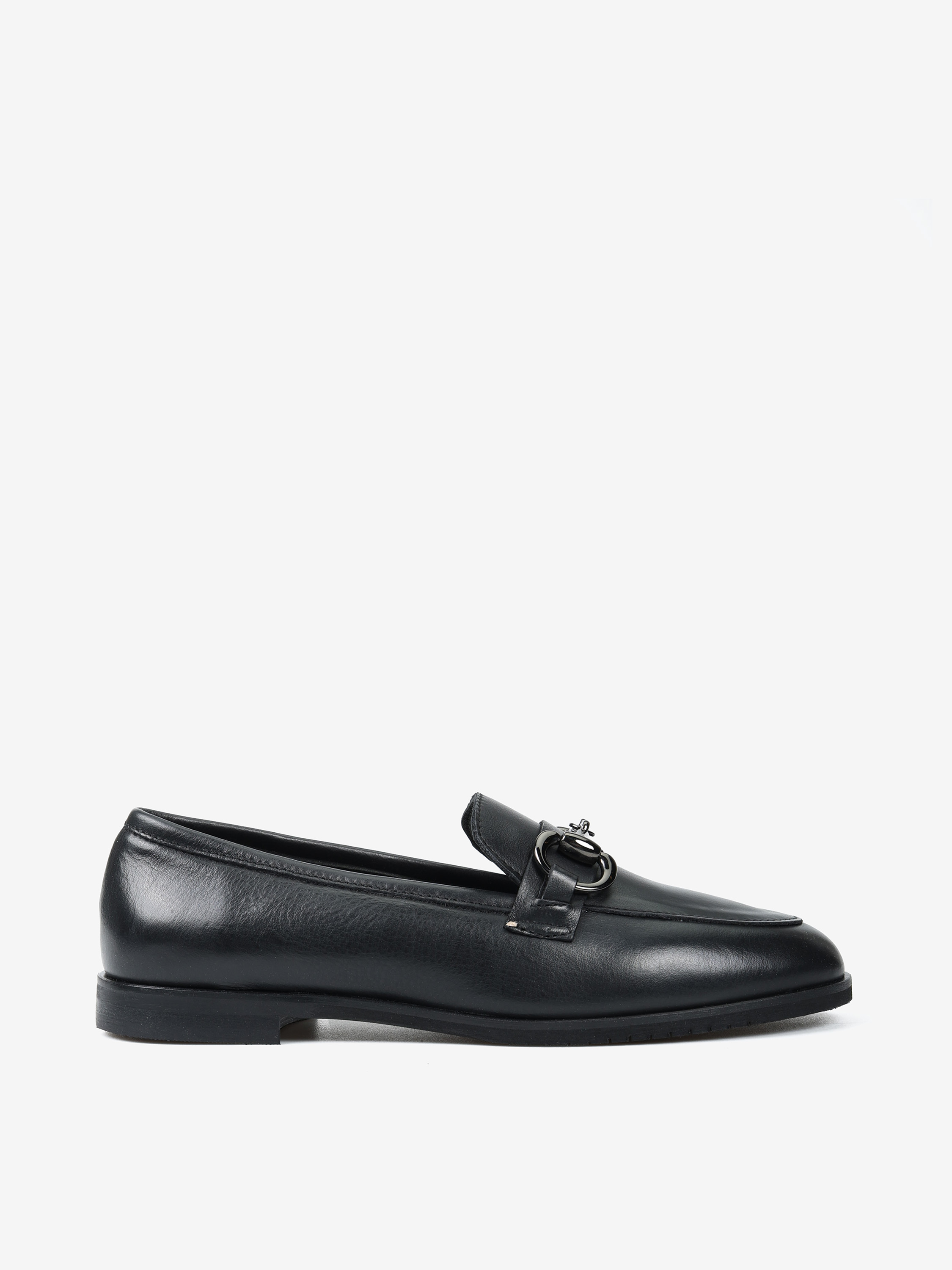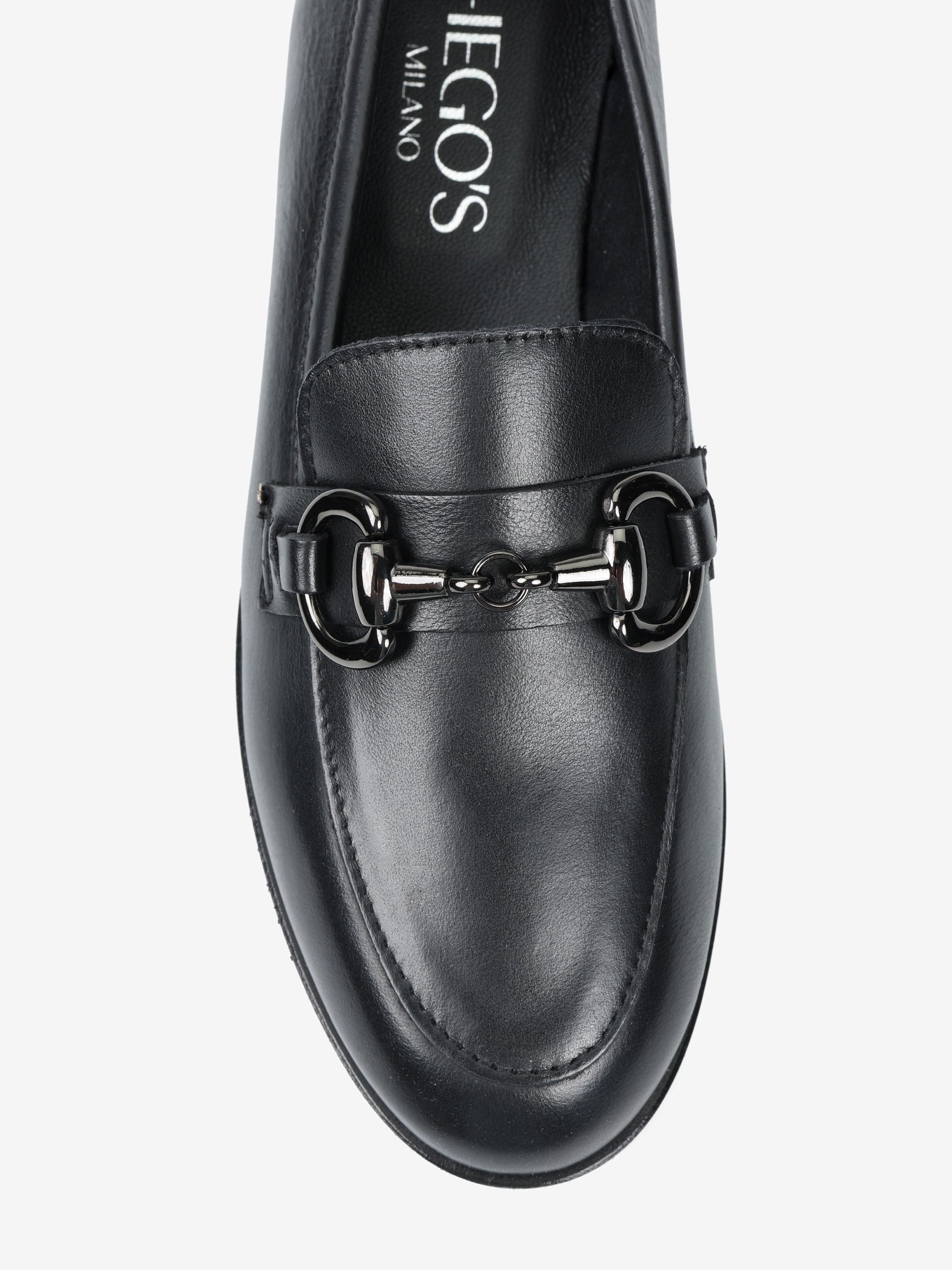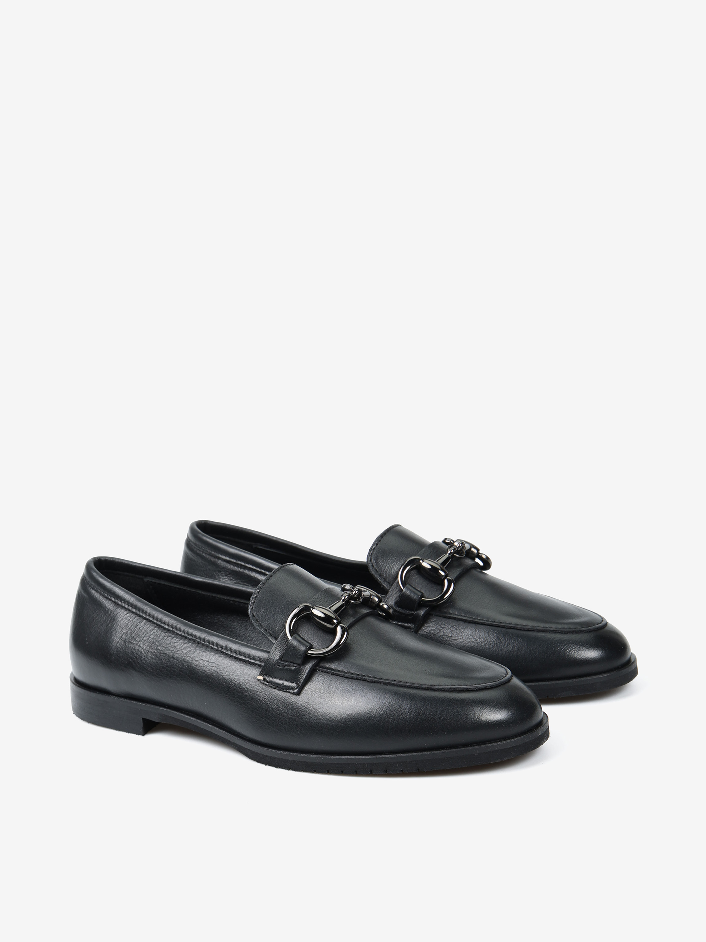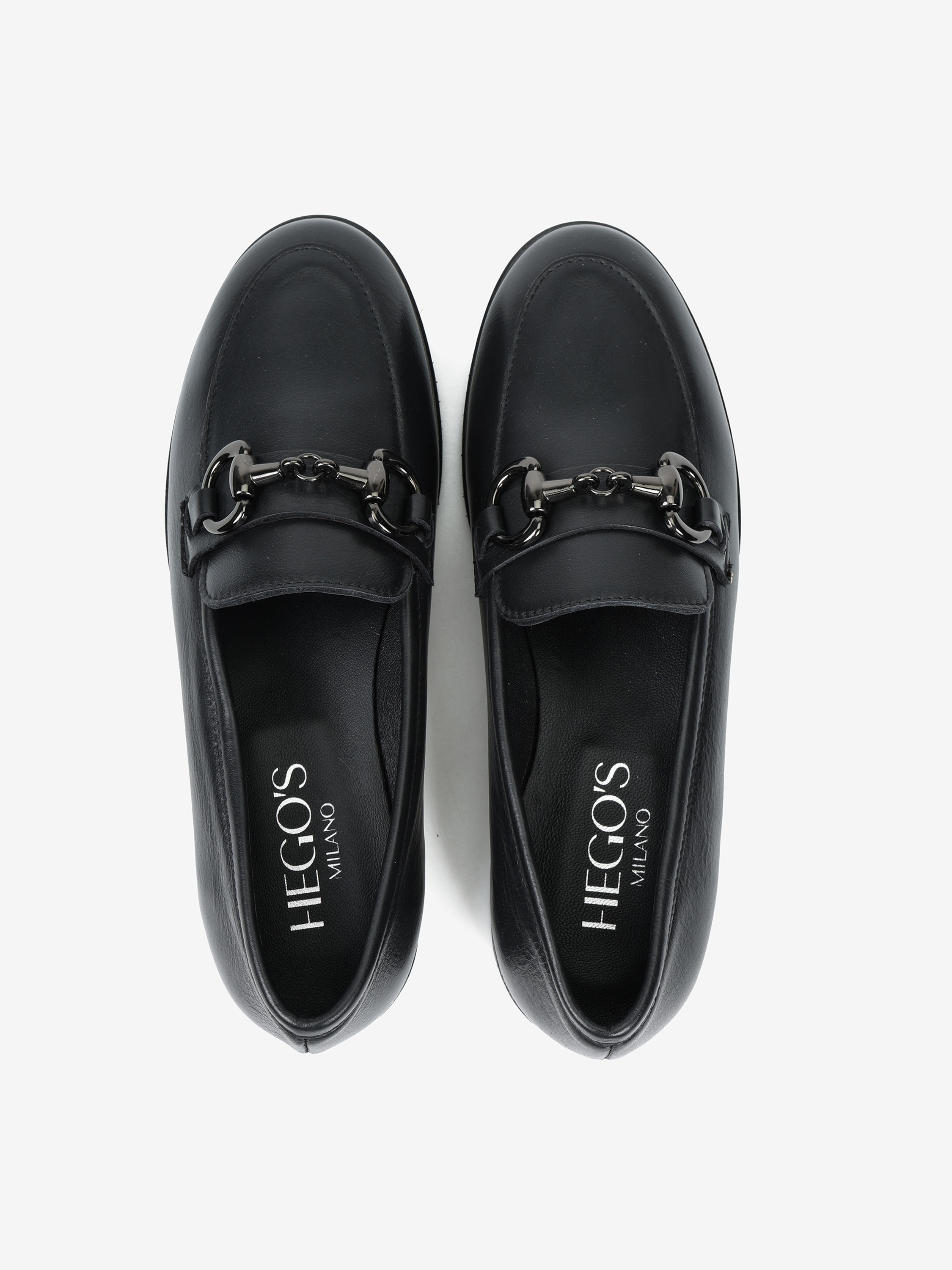 Mokasyny na płaskim obcasie wykonane są z włoskiej skóry naturalnej. Cholewka w ponadczasowym, czarnym kolorze ozdobiona została wędzidłem. Miękkie i wygodne.