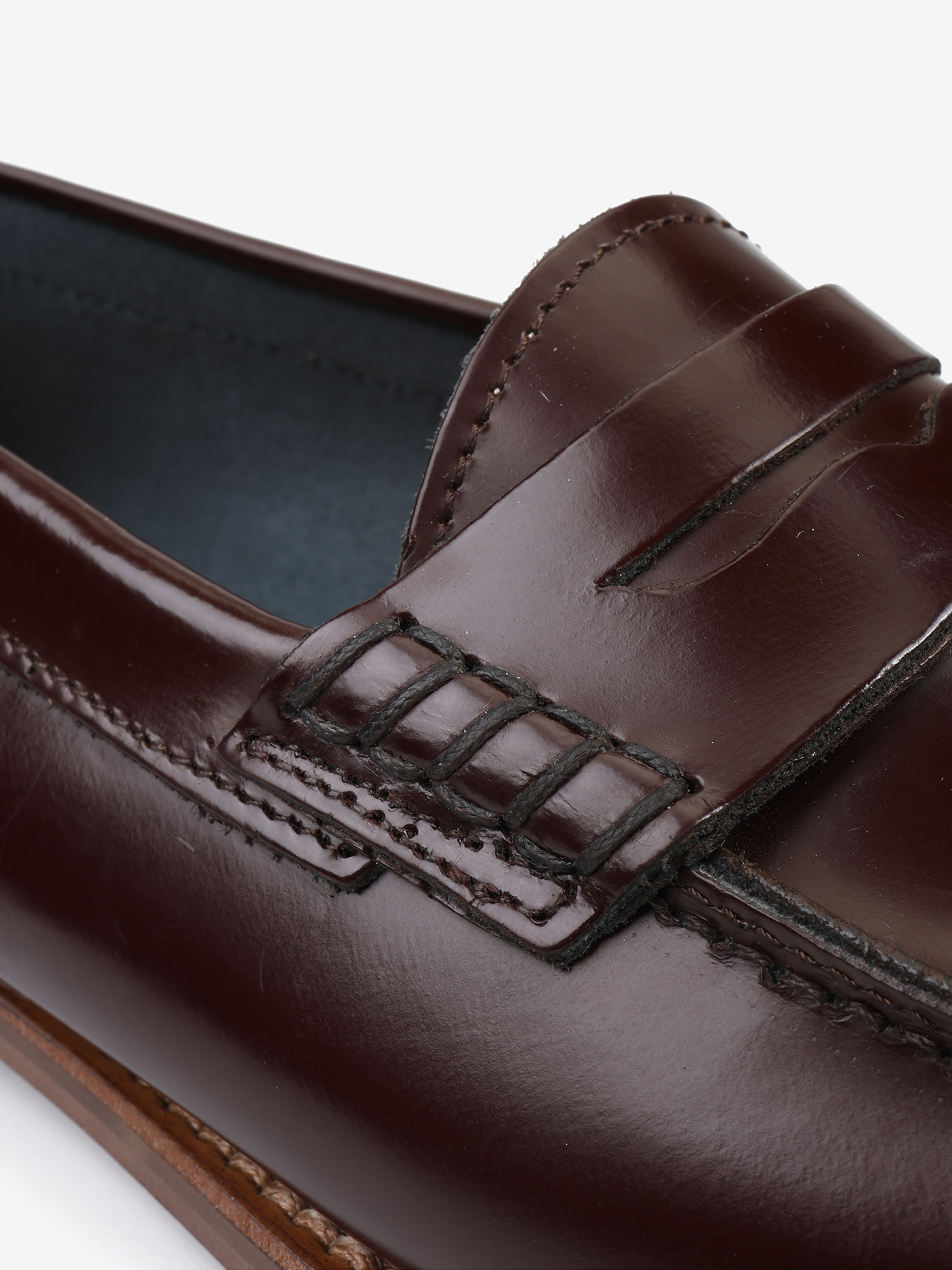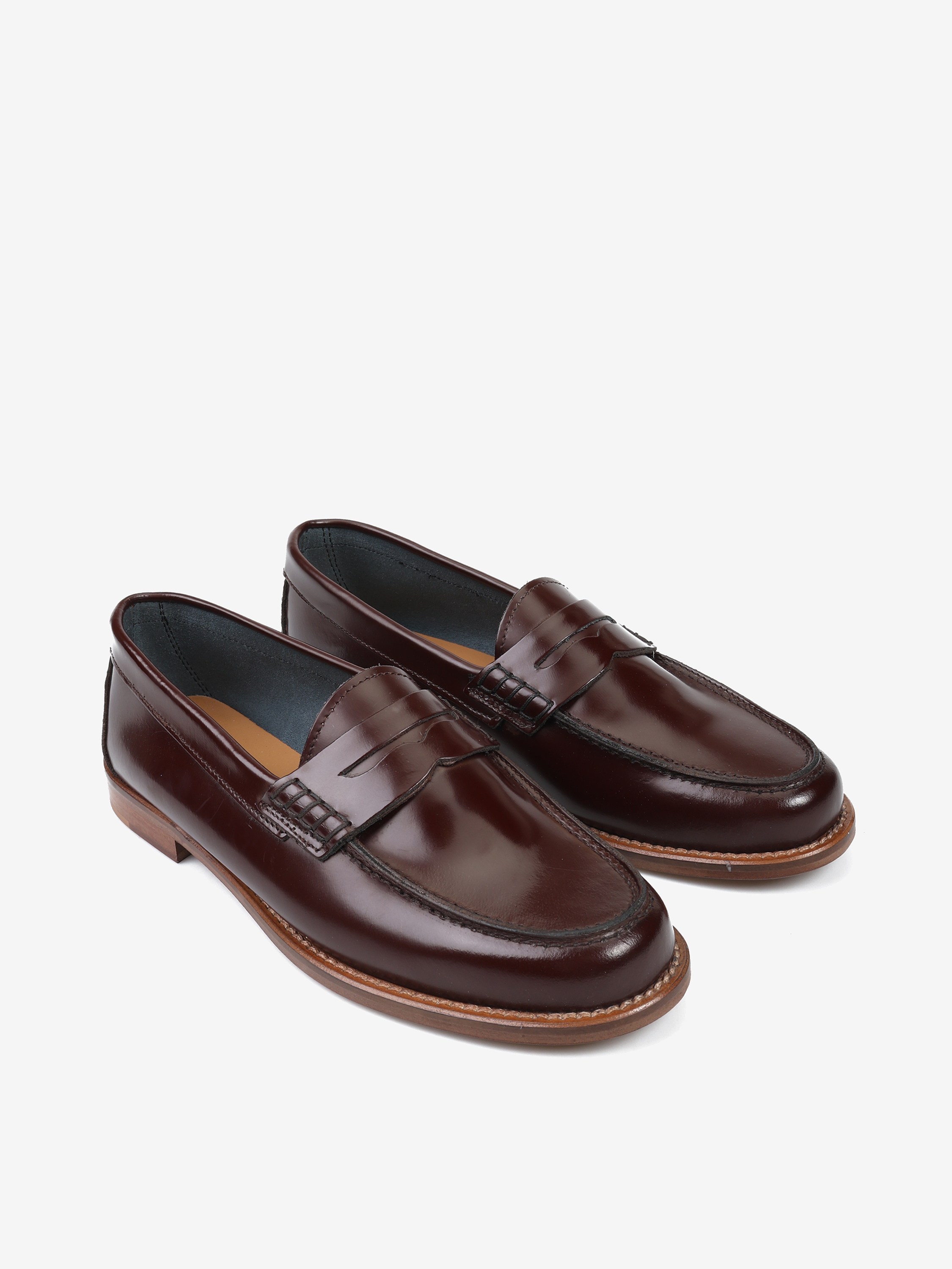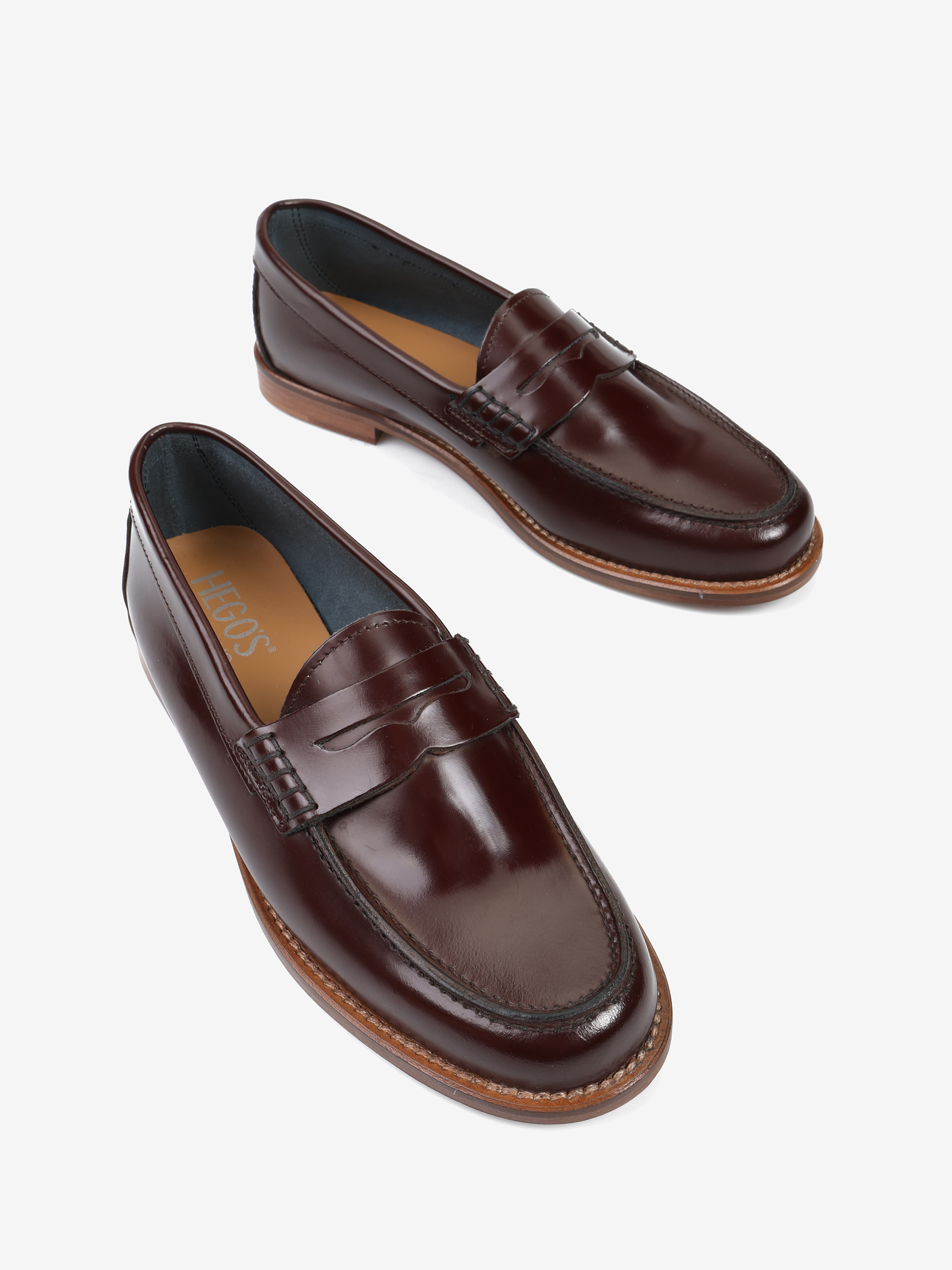 Klasyczne mokasyny z wysokopolerowanej skóry z ozdobną patką.