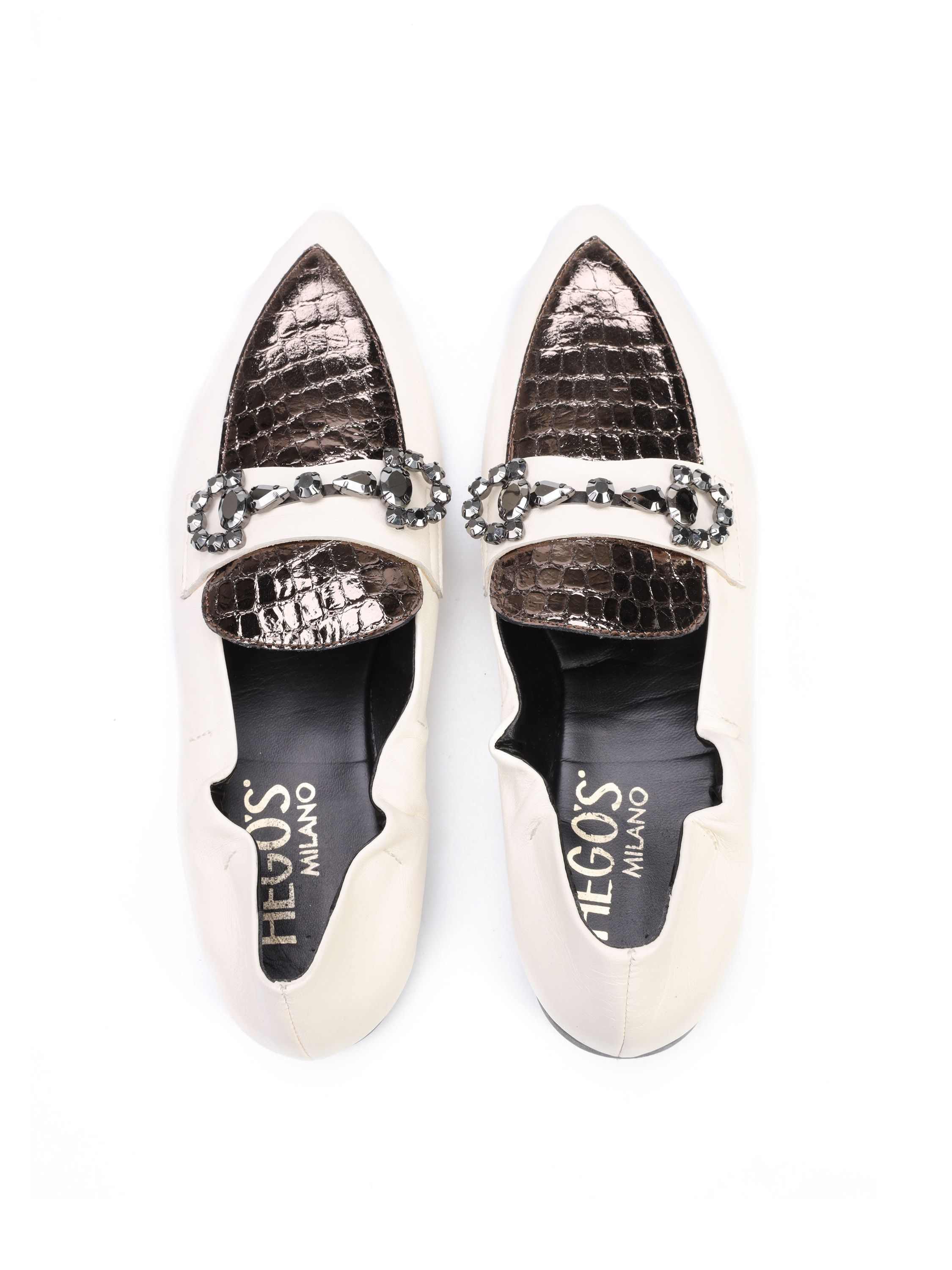 KREMOWE MOKASYNY Z KAMIENIAMI HEGO'S MILANO