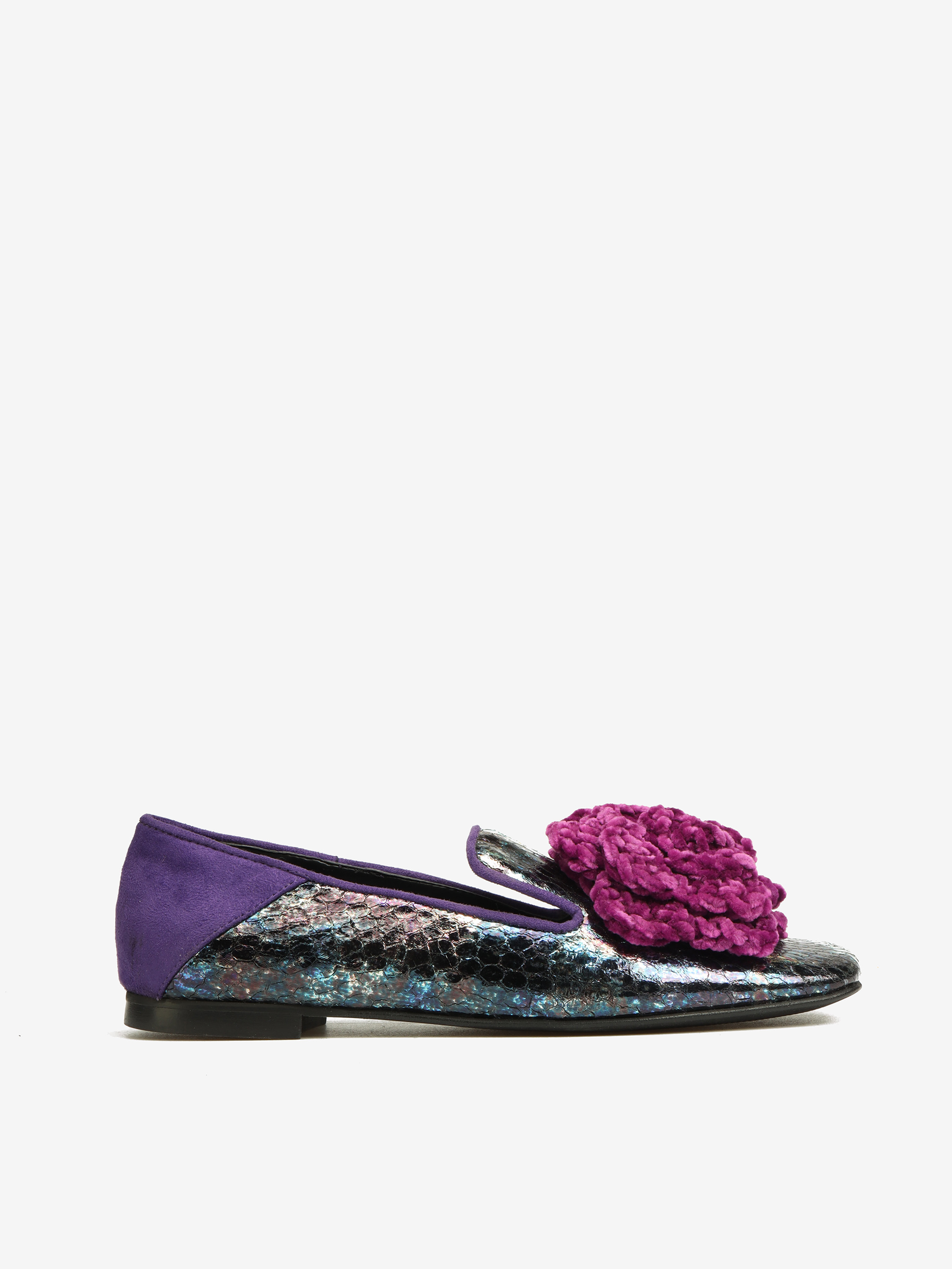 Baleriny z kolekcji HEGO'S Milano wykonane ze skóry z efektowym kwiatem.