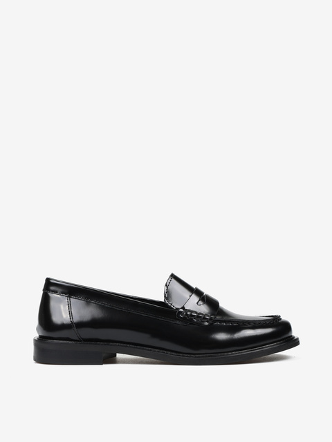 Mokasyny na płaskim obcasie to must have kobiecej garderoby. Wykonane są z wysoko polerowanej skóry naturalnej. Lekkie i wygodne dopasują się do Twojej stopy. Model posiada staranne przeszycia cholewki oraz wysoki język charakterystyczny dla tego fasonu. Klasyka jest ponadczasowa.