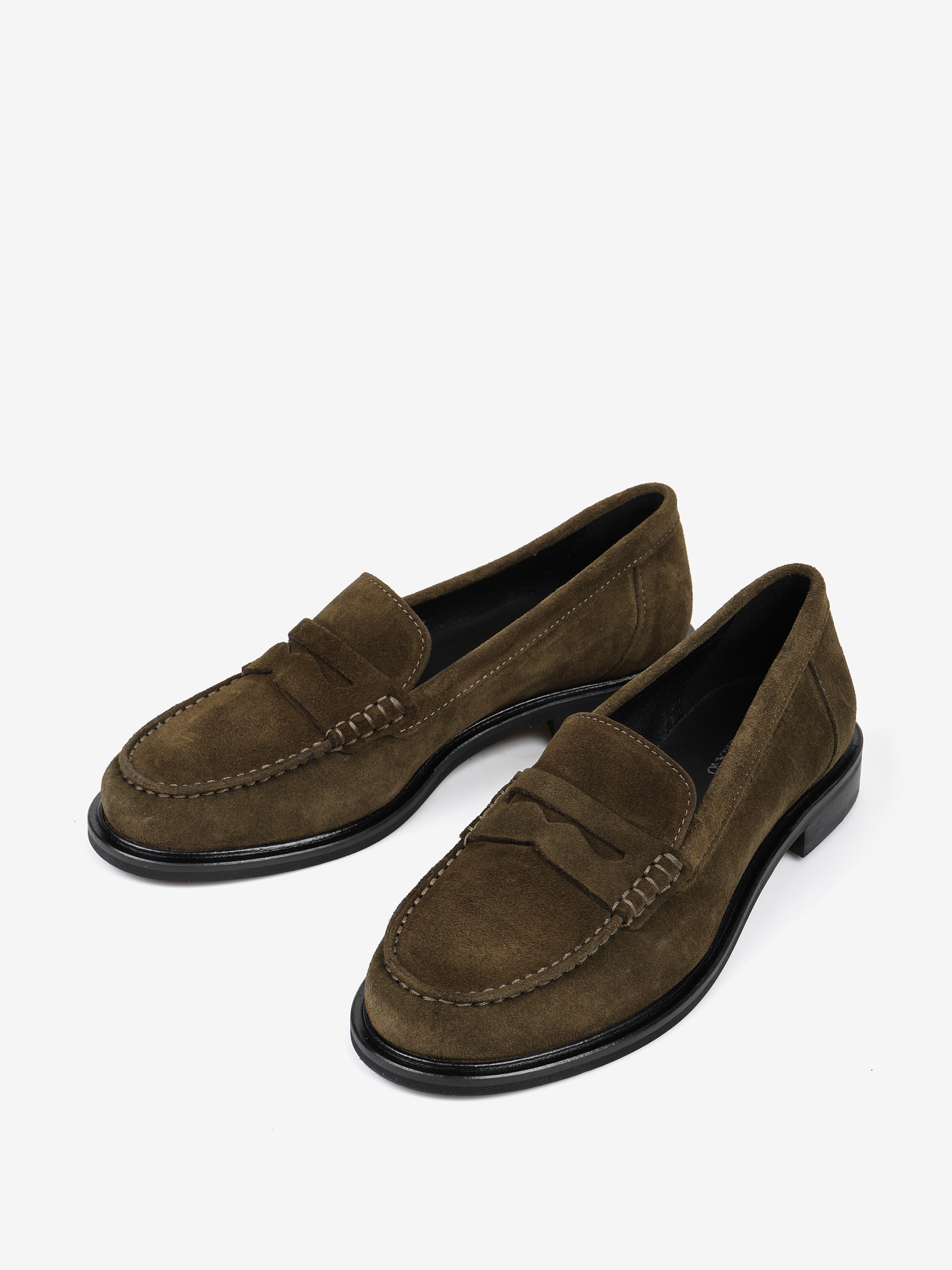 Zamszowe, klasyczne mokasyny college z ozdobną patką i wysokim językiem.