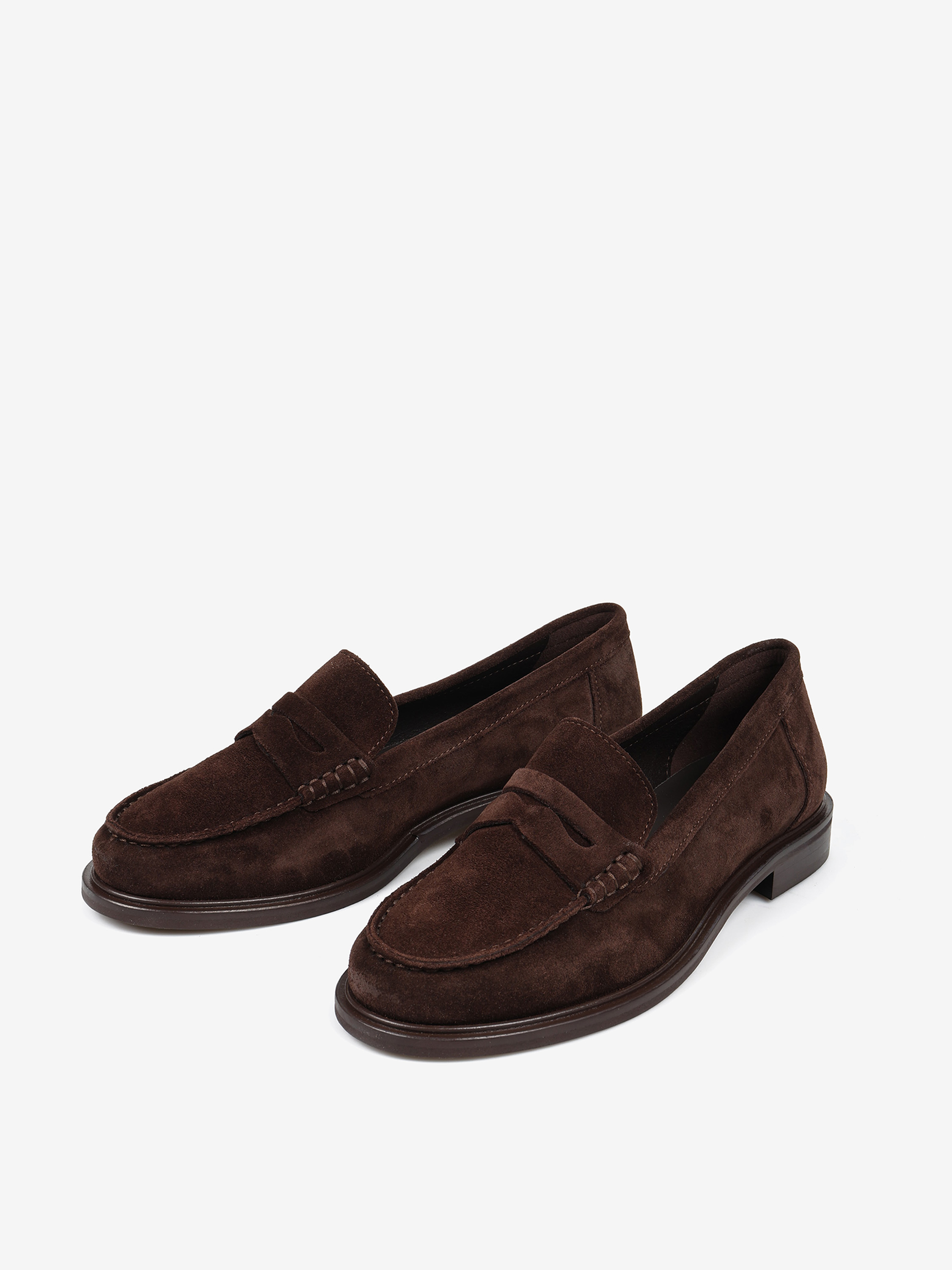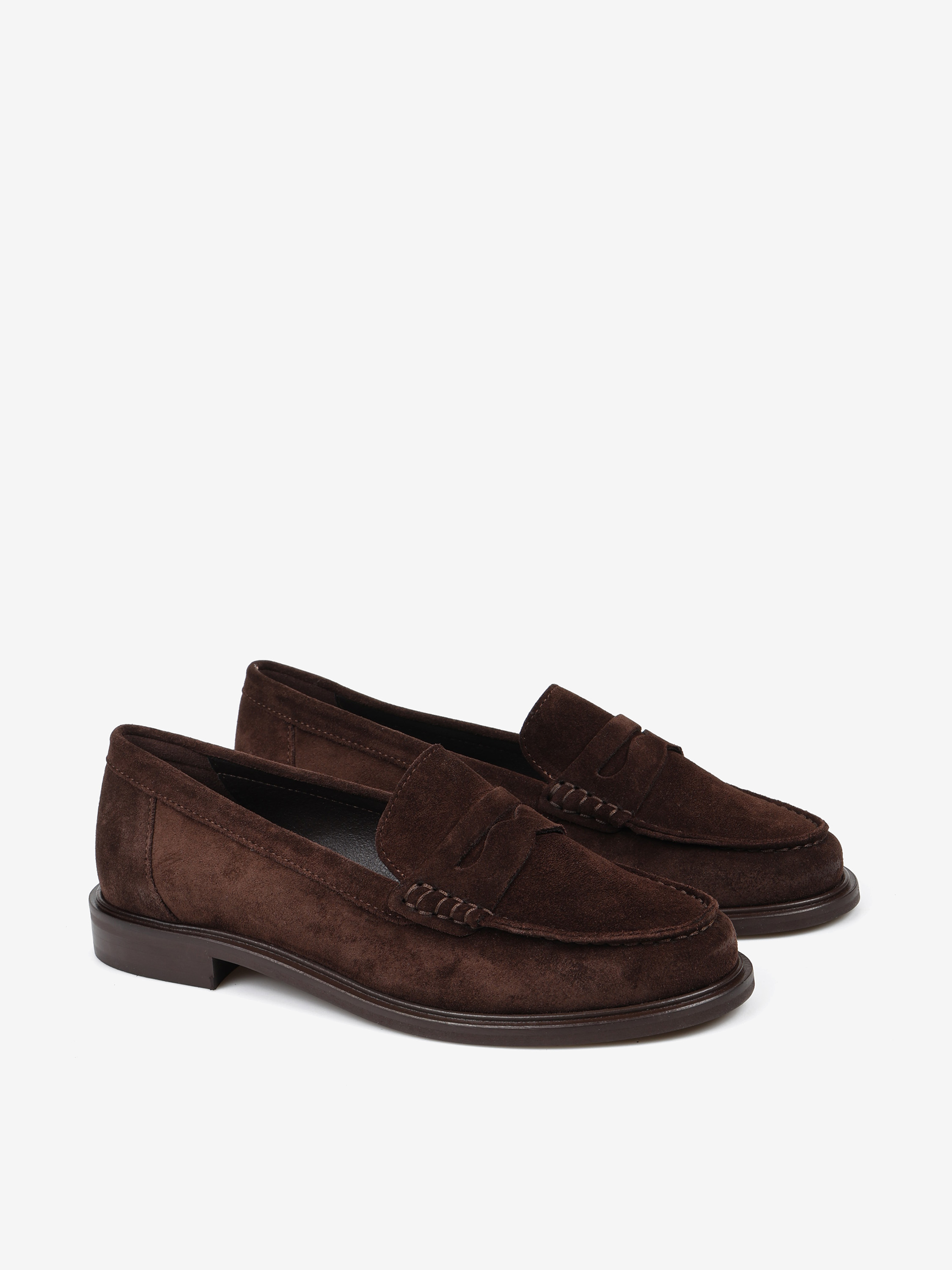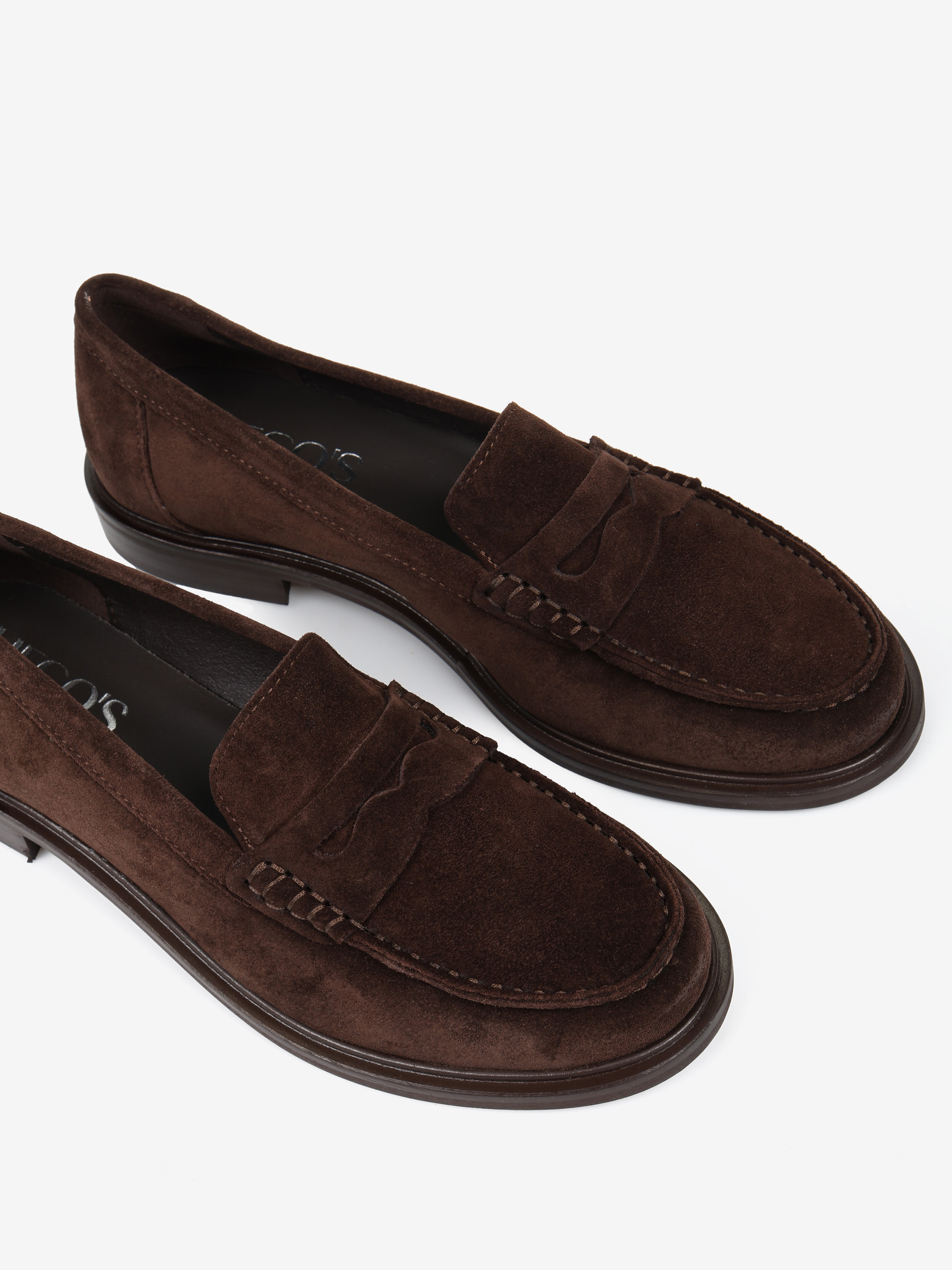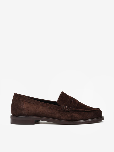 Zamszowe, klasyczne mokasyny college z ozdobną patką i wysokim językiem.