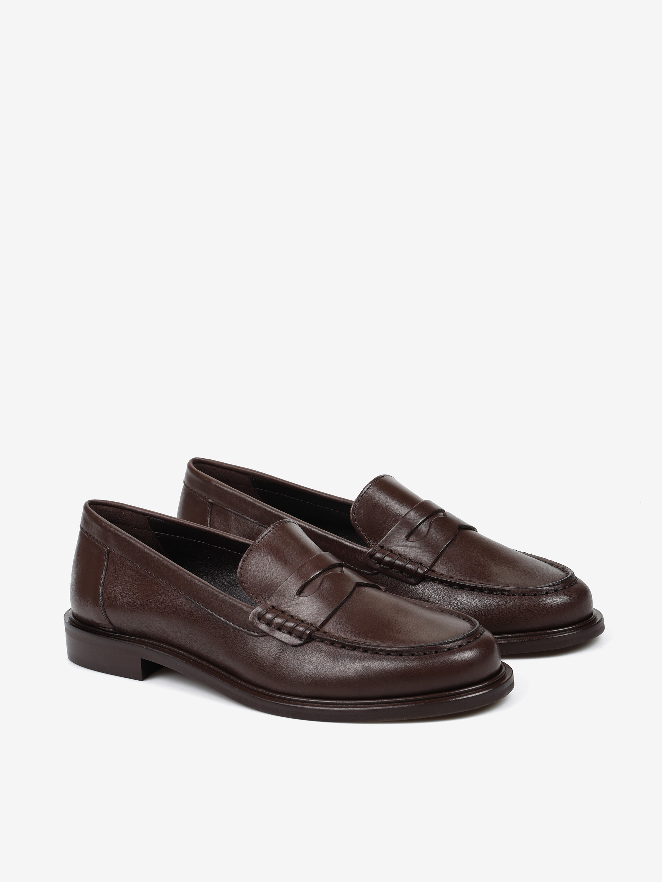 Skórzane, klasyczne mokasyny college z ozdobną patką i wysokim językiem.