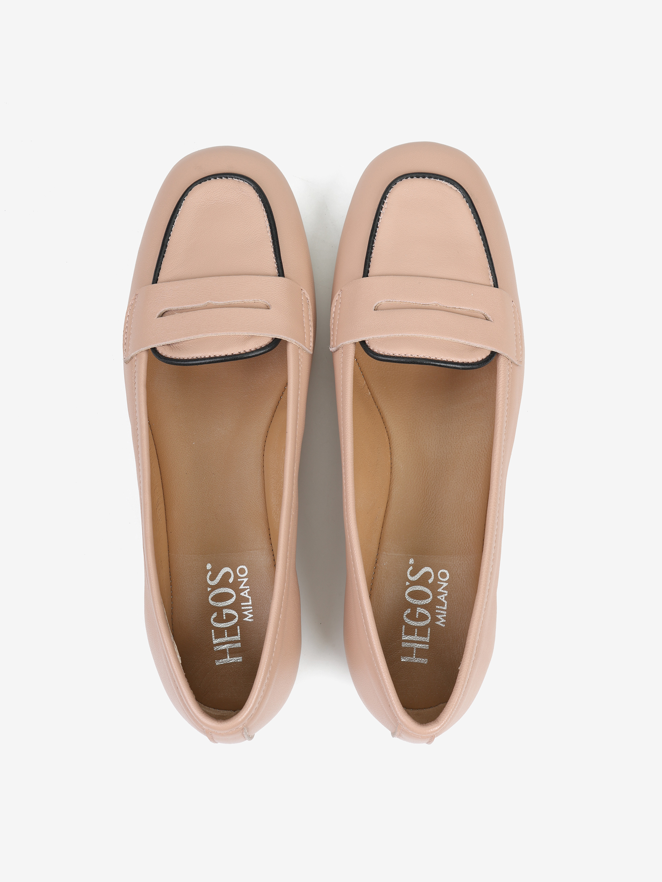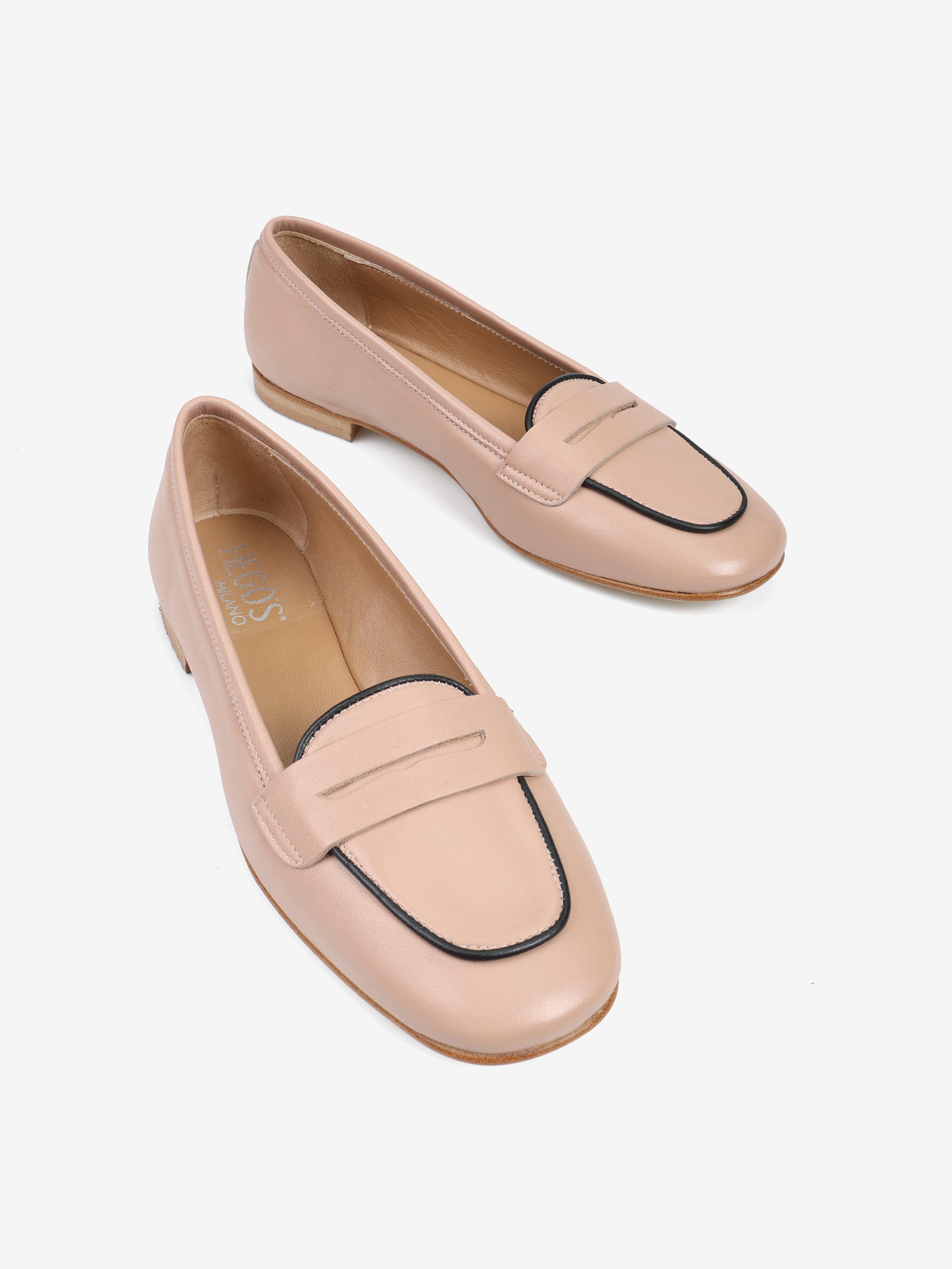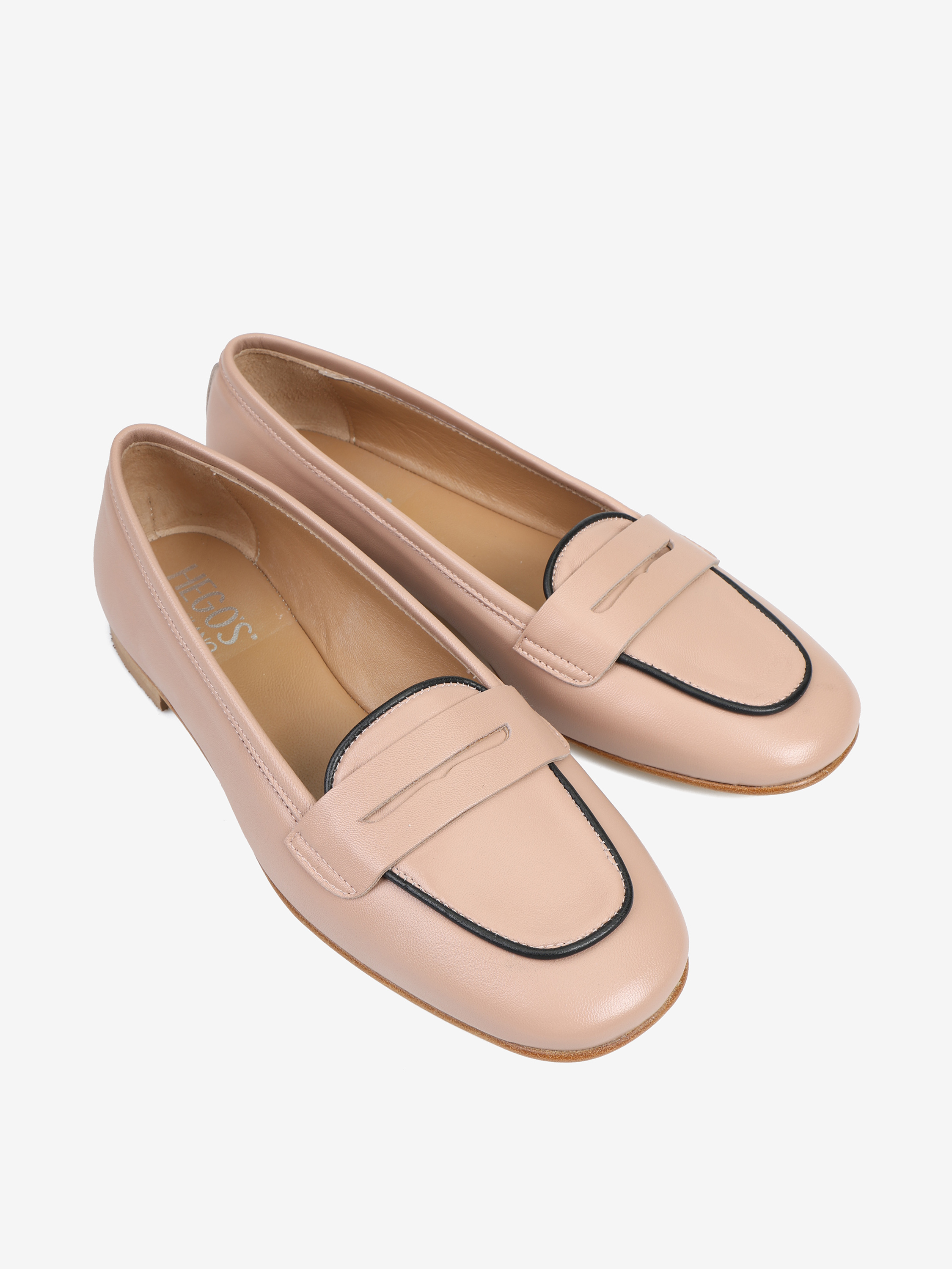 Proste mokasyny ze ozdobną patką. Kontrastująca lamówka.