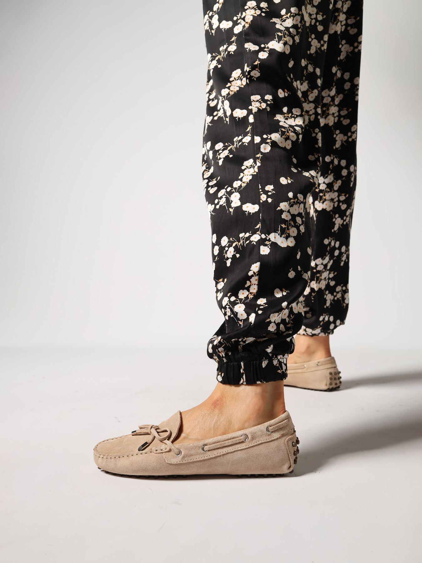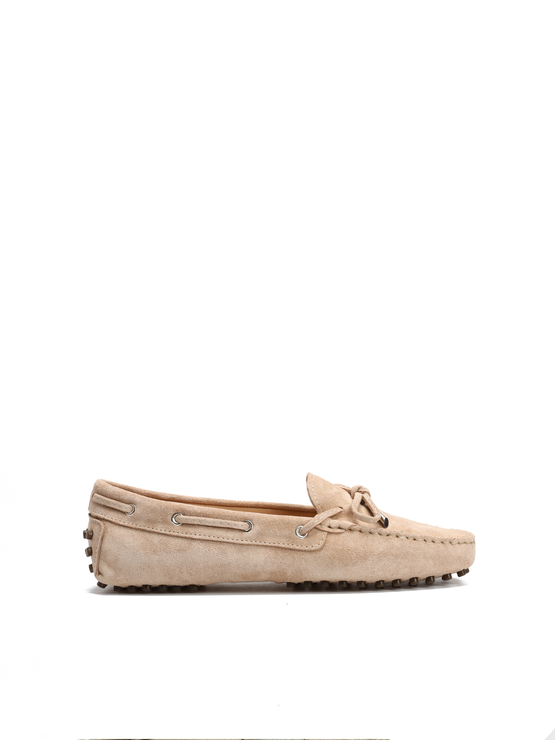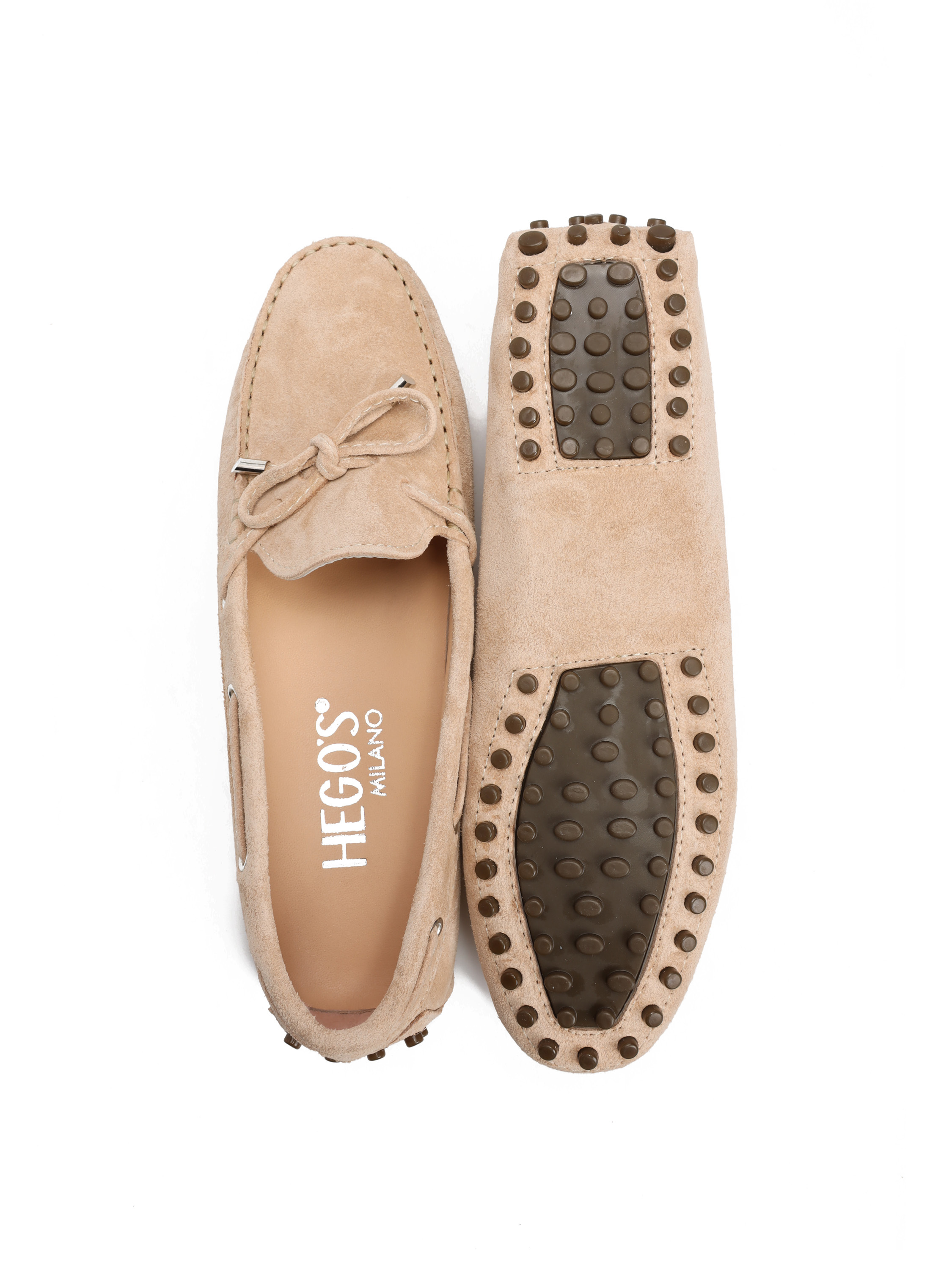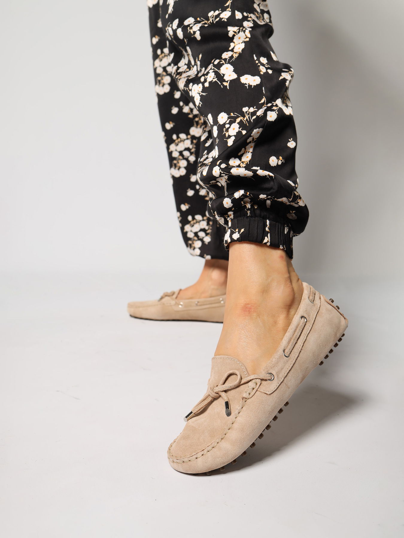 Klasyczne mokasyny wykonane są z naturalnej skóry zamszowej. Lekkie i bardzo wygodne. Minimalistyczny model uzupełniony został kokardką na przodzie. Podeszwa podszyta gumą, odpowiada za komfort podczas chodzenia.