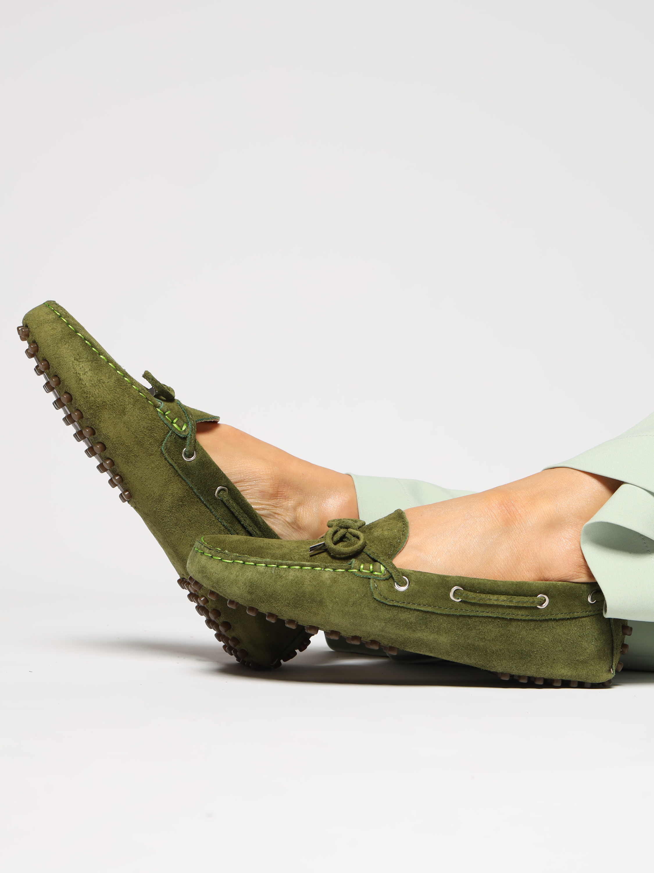 Klasyczne mokasyny wykonane są z naturalnej skóry zamszowej. Lekkie i bardzo wygodne. Minimalistyczny model uzupełniony został kokardką na przodzie. Podeszwa podszyta gumą, odpowiada za komfort podczas chodzenia.