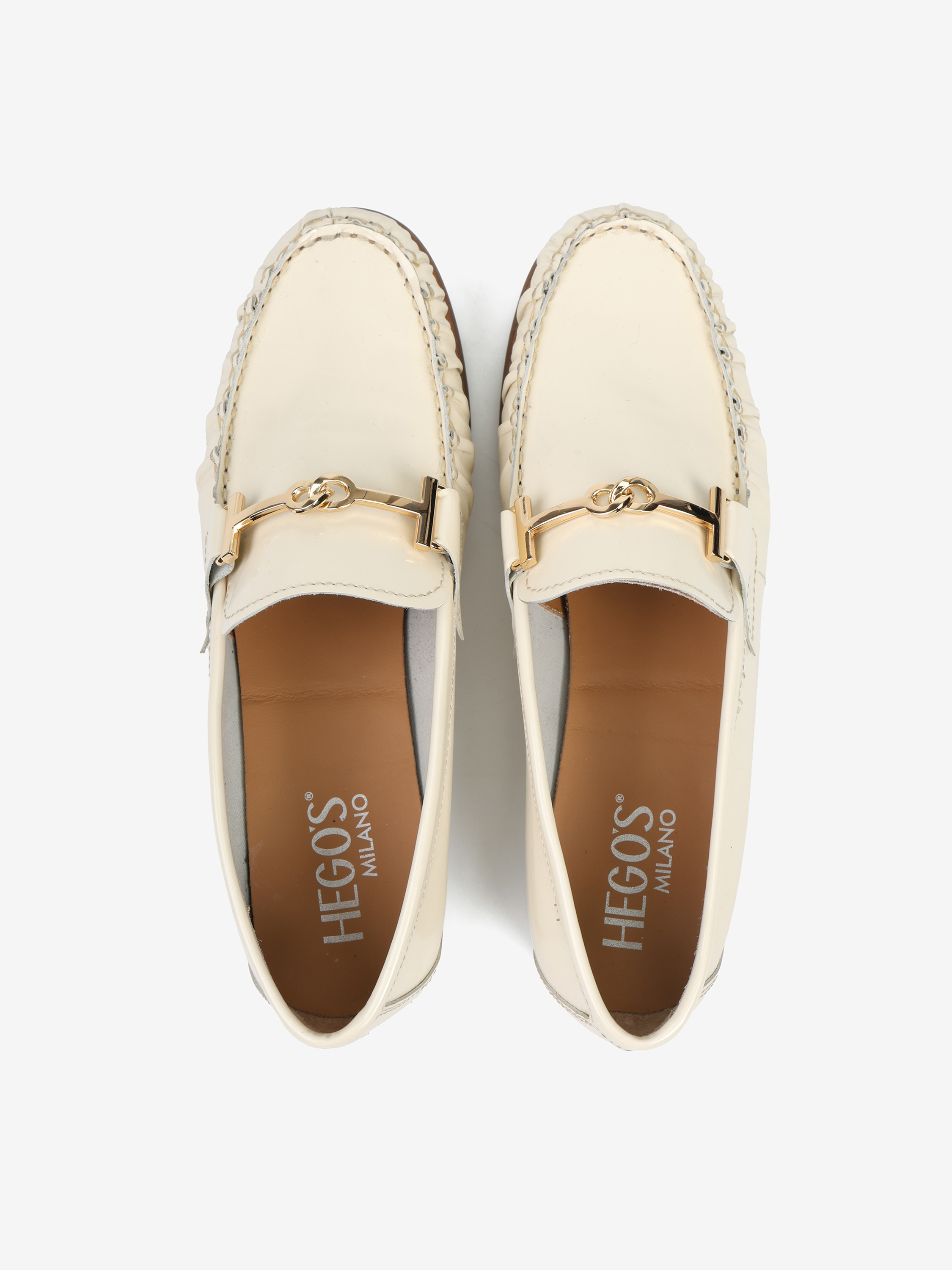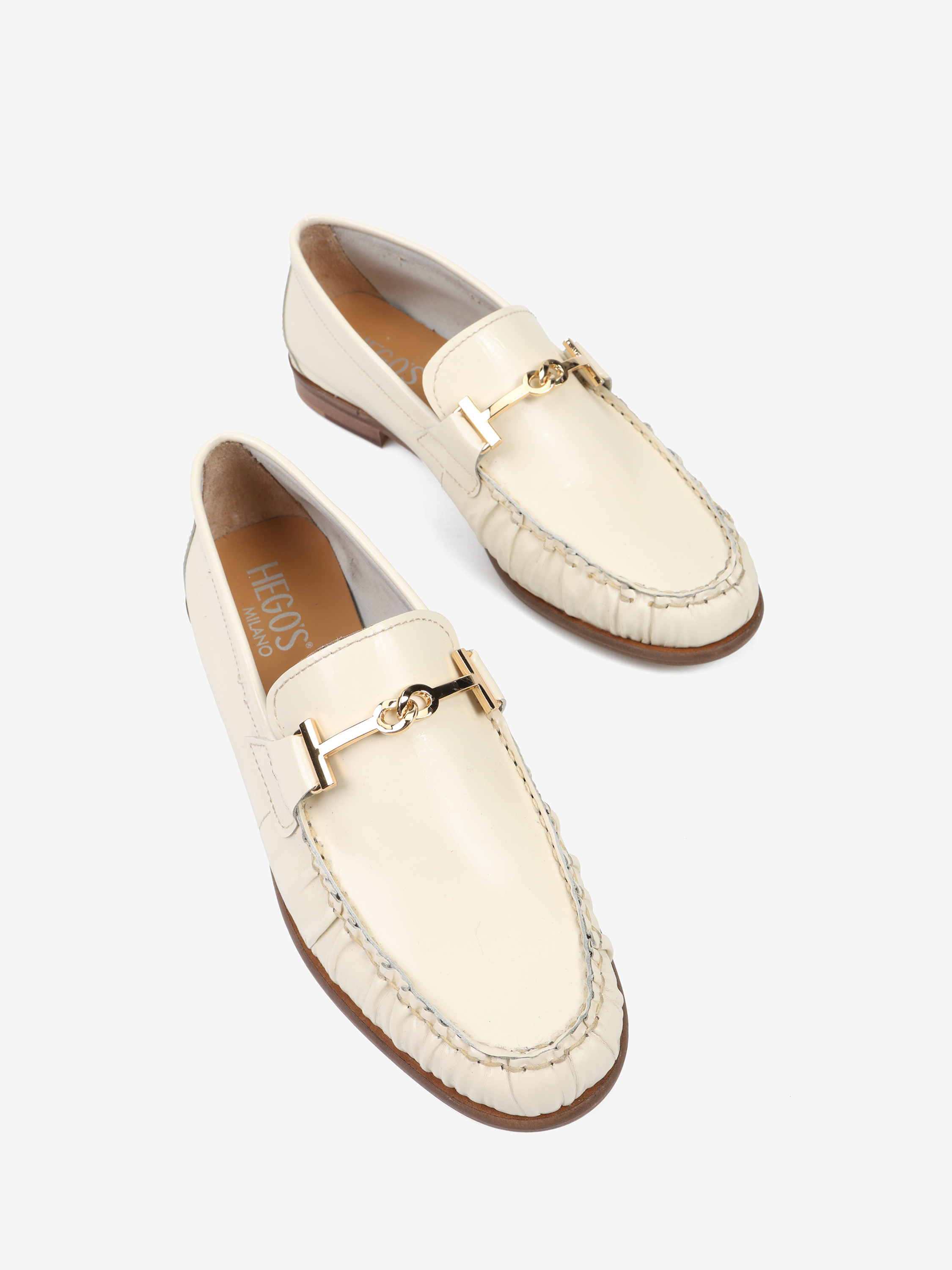 KREMOWE MOKASYNY Z METALOWĄOZDOBĄ HEGO'S Milano
