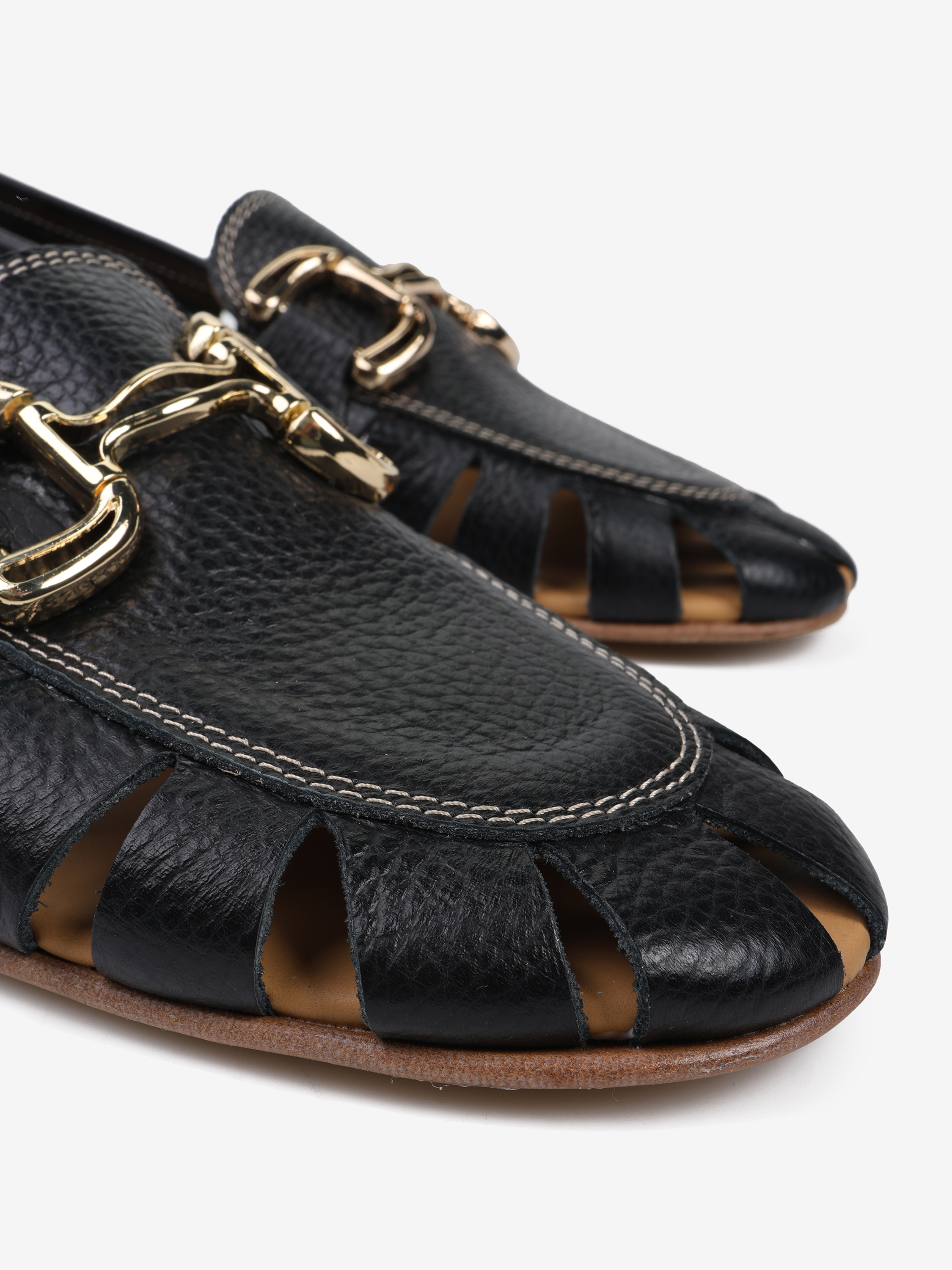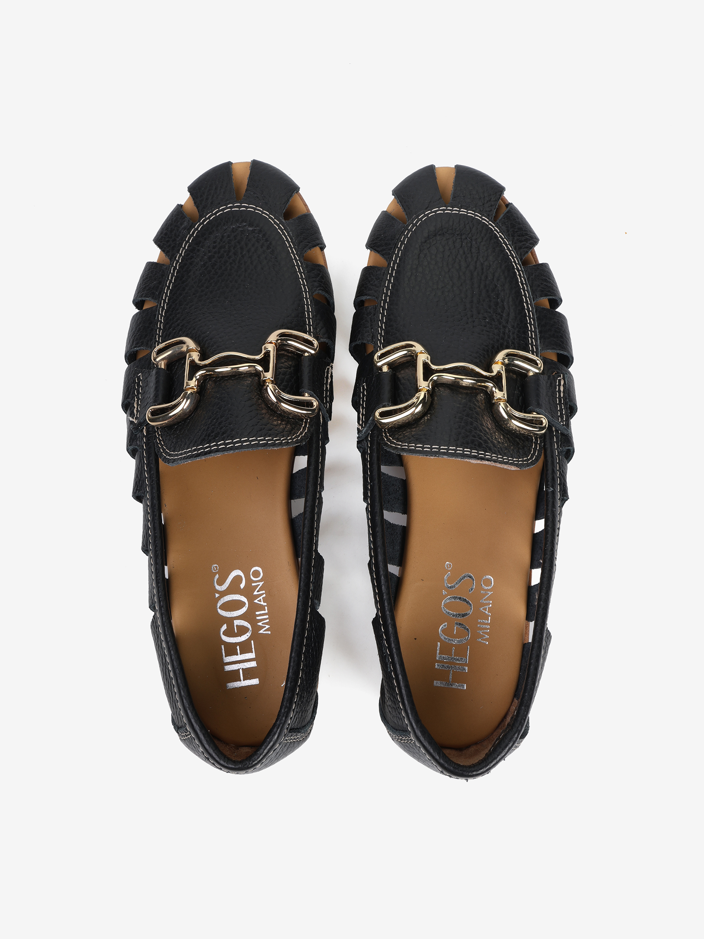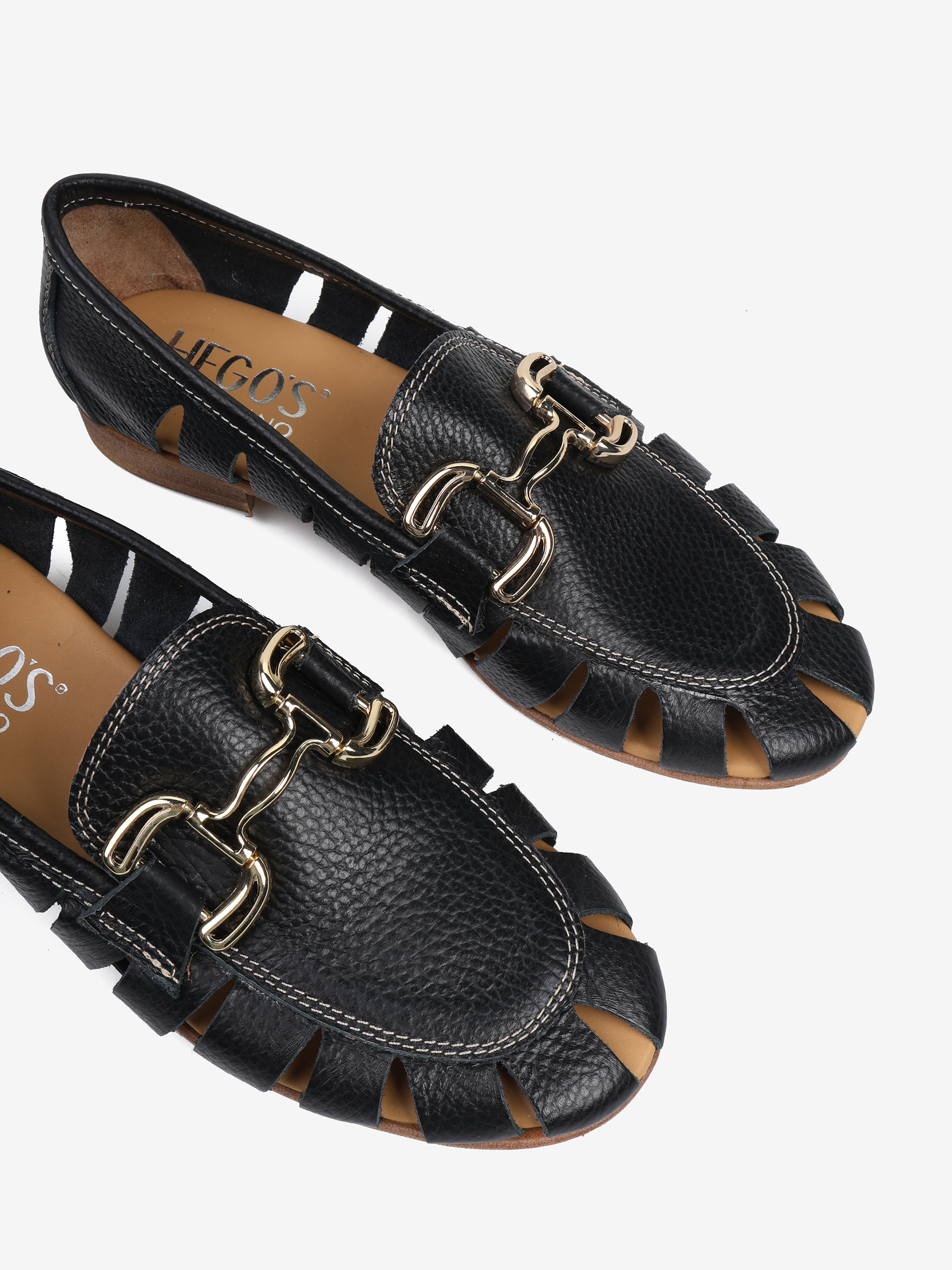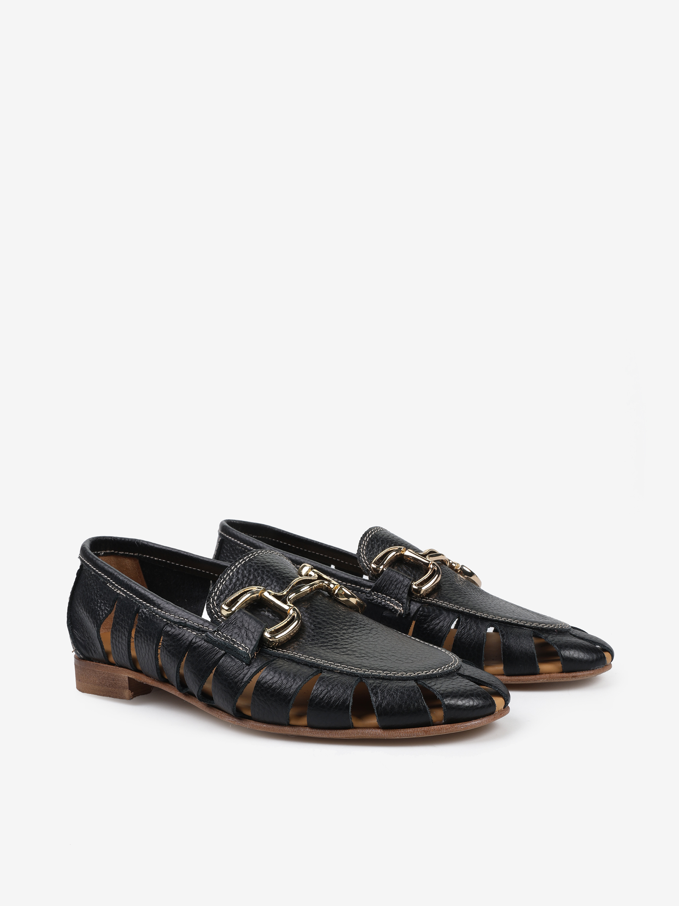 Ażurowe mokasyny z ozdobnym wędzidłem.