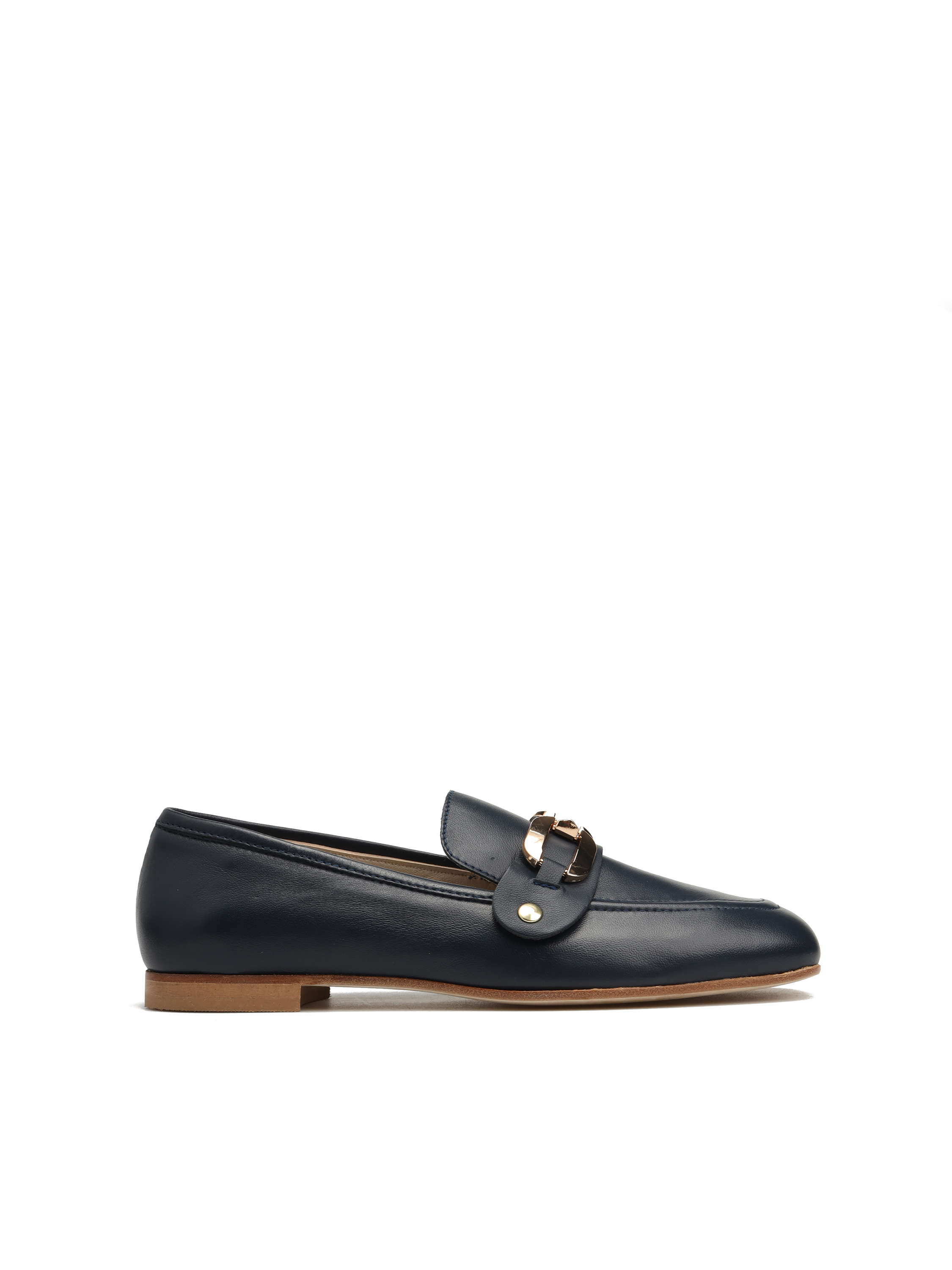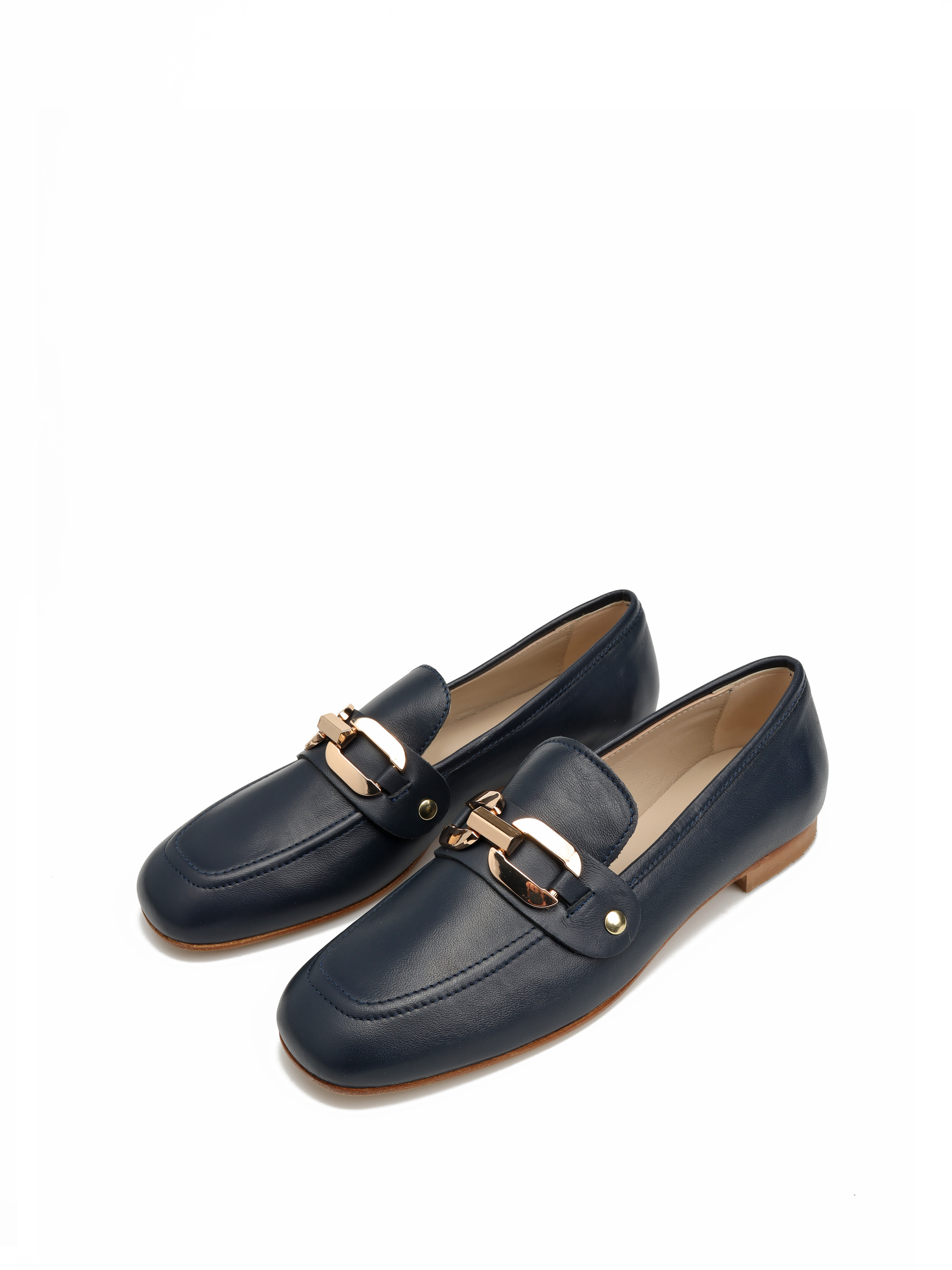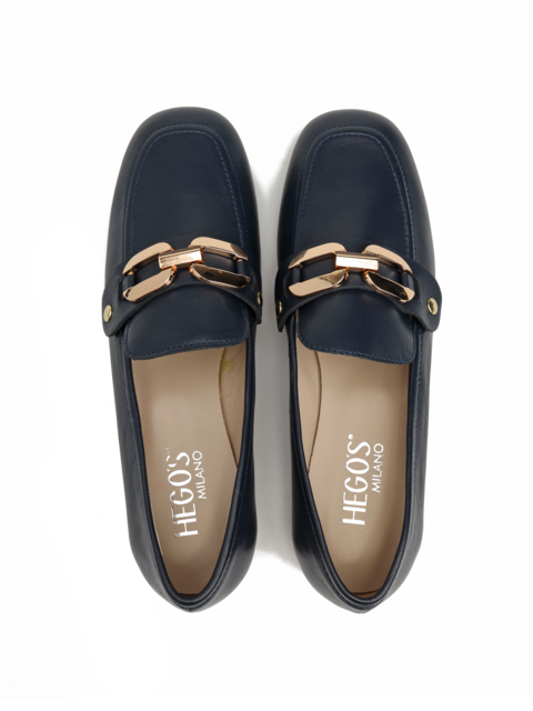 Mokasyny na płaskim obcasie to propozycja dla kobiet szukających wygodnych i prostych rozwiązań. Model wykonany z naturalnej skóry. Odpinaną, złotą klamrę można zamienić na gładki pasek i nosić według upodobań. To model 3 w 1. Klasyczny fason z modnym, kwadratowym noskiem.