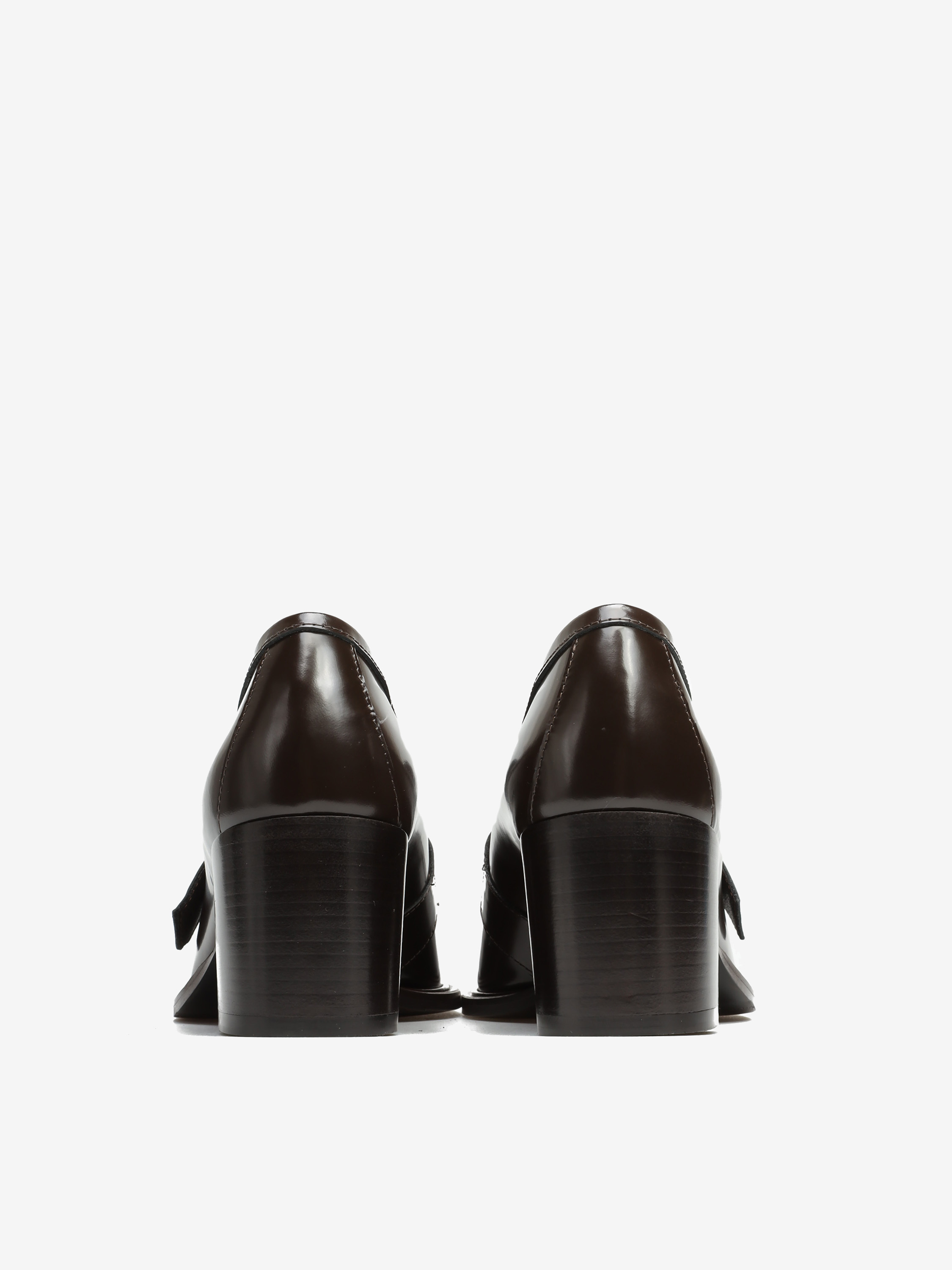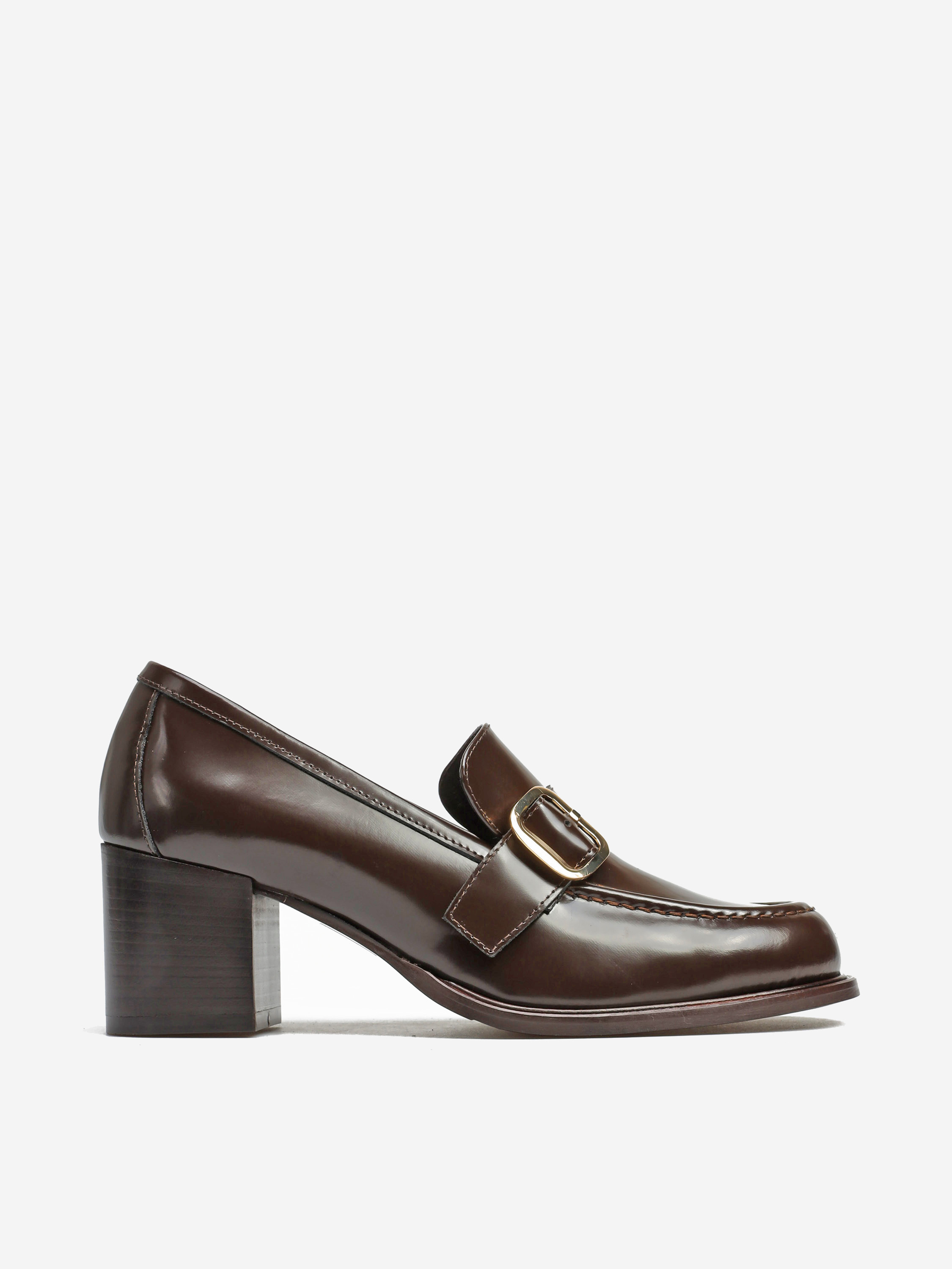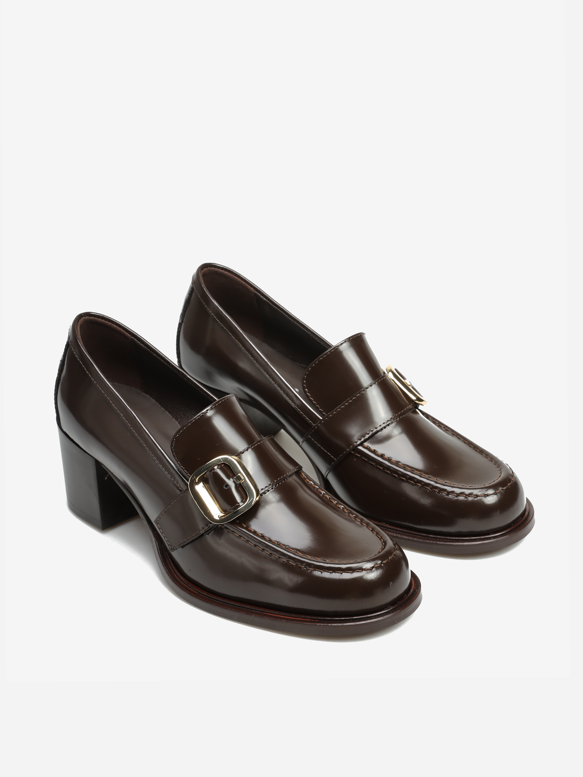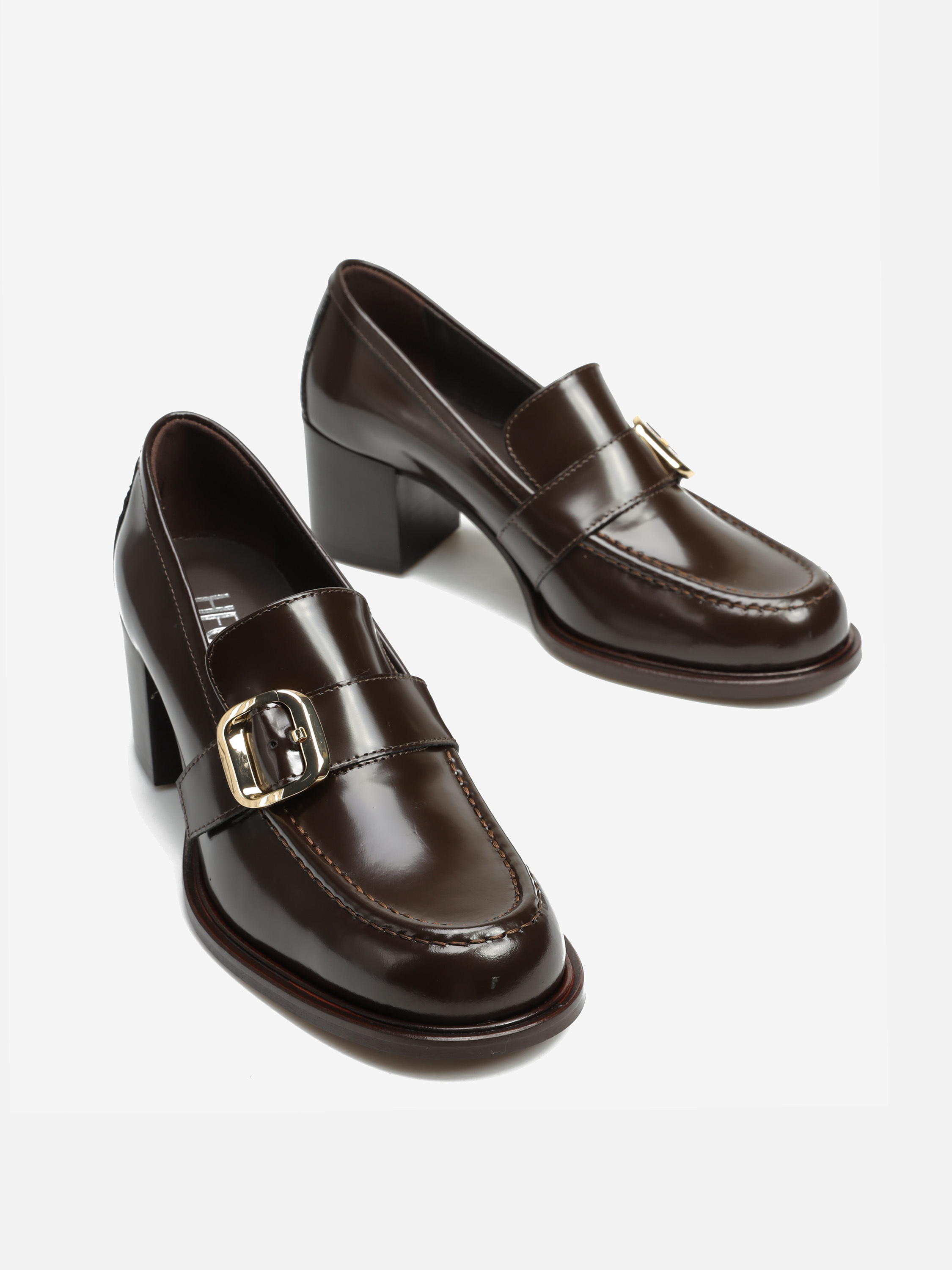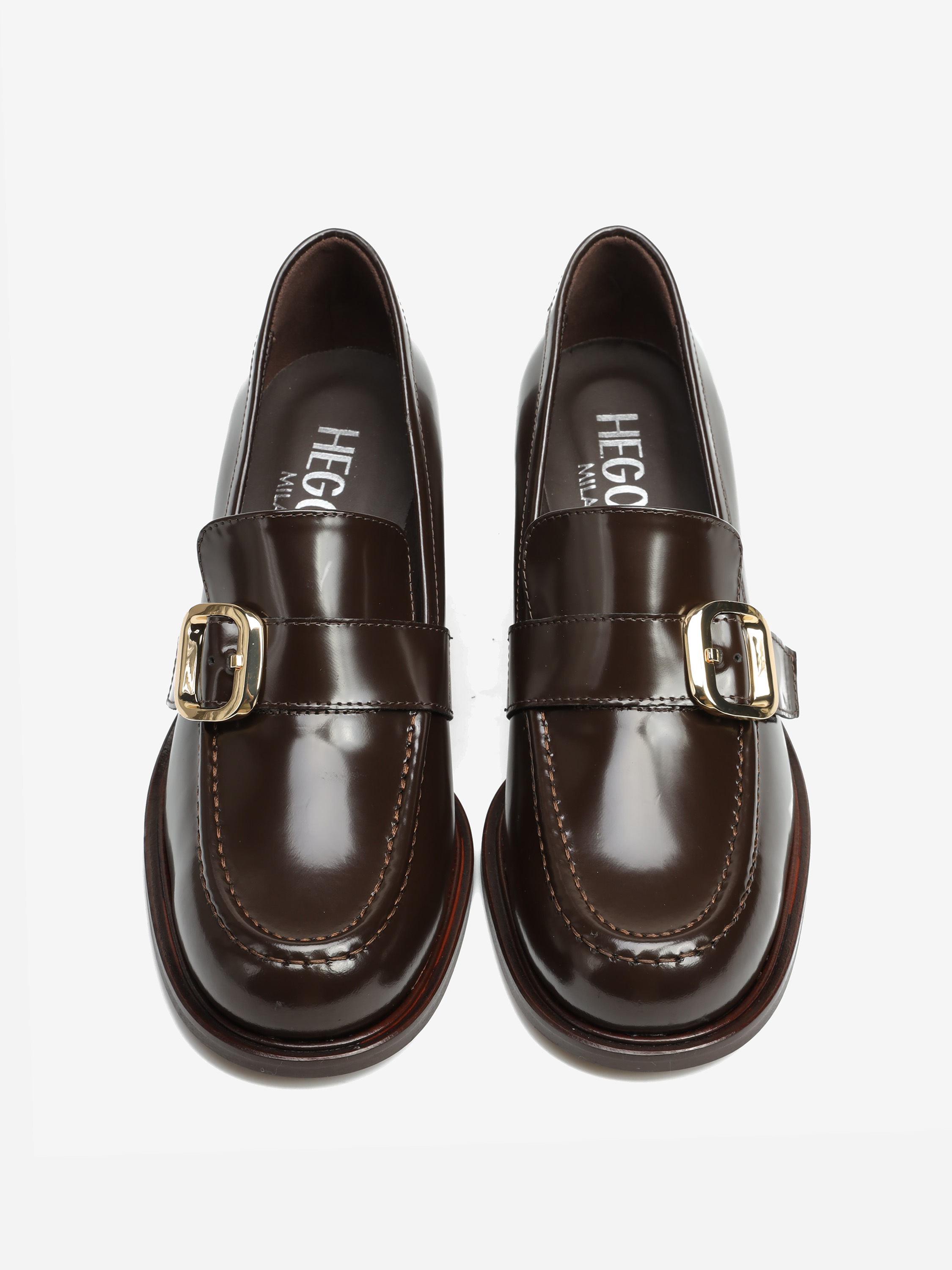 BRĄZOWE MOKASYNY NA OBCASIE HEGO'S Milano