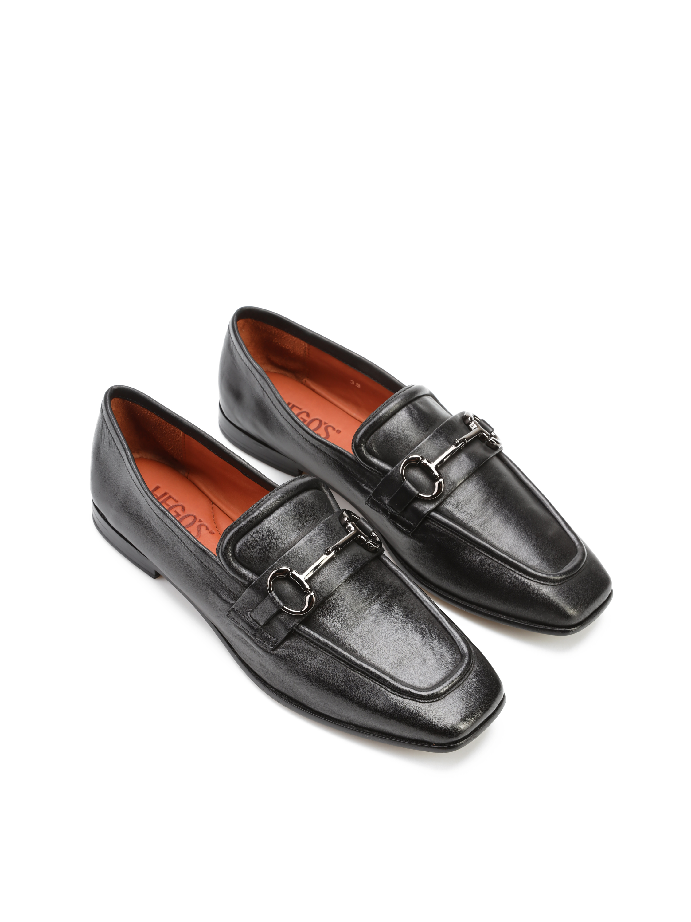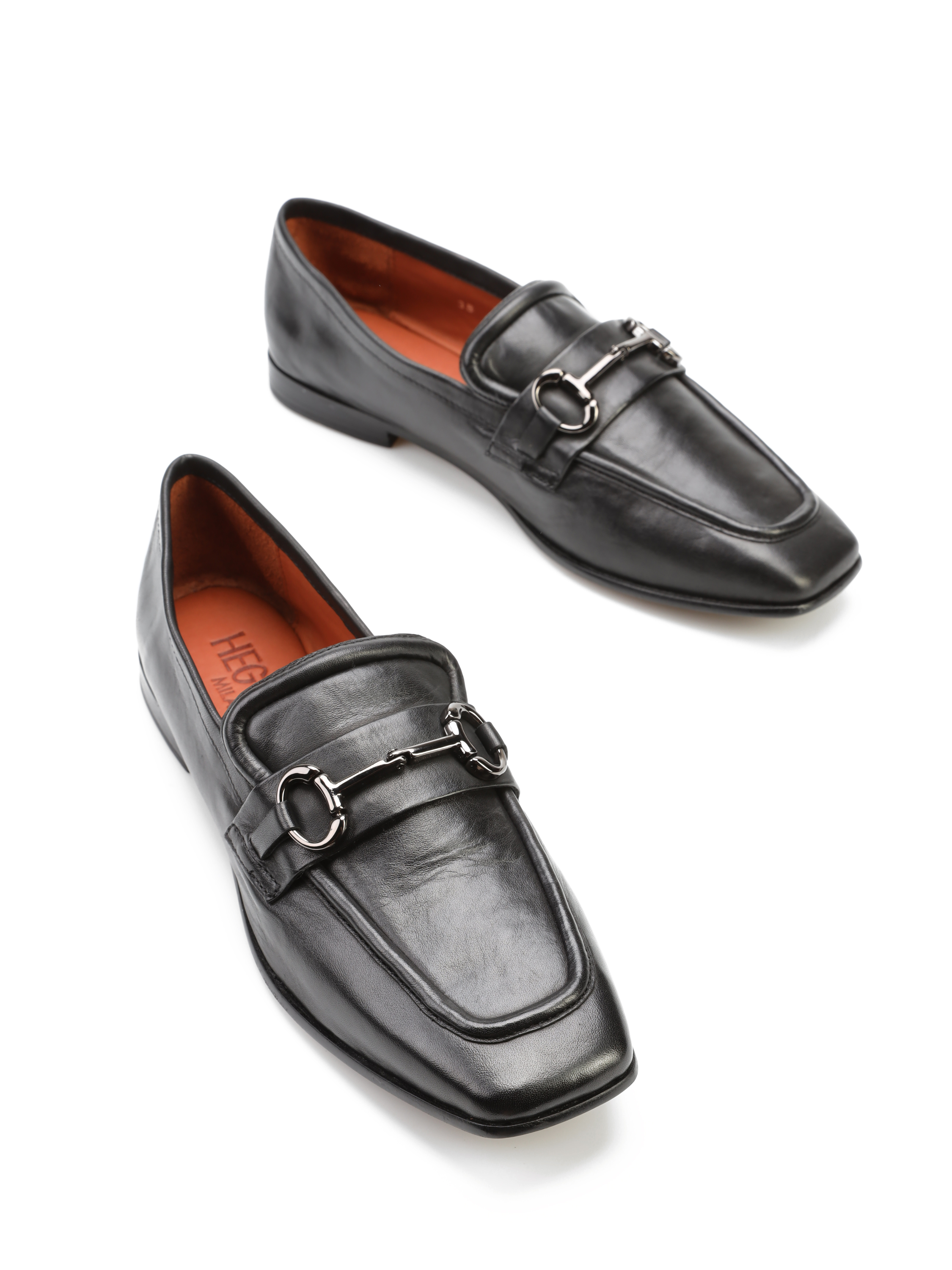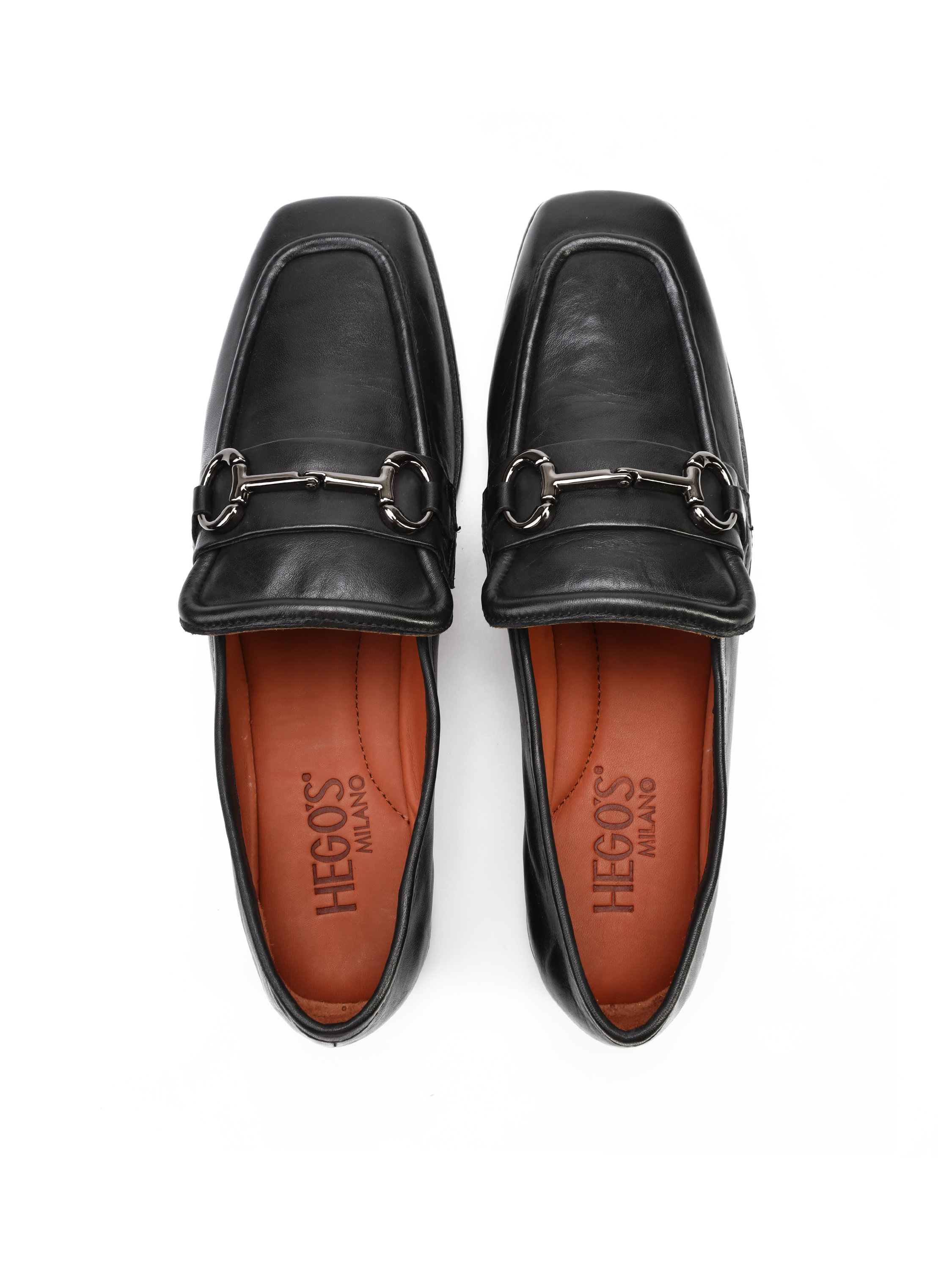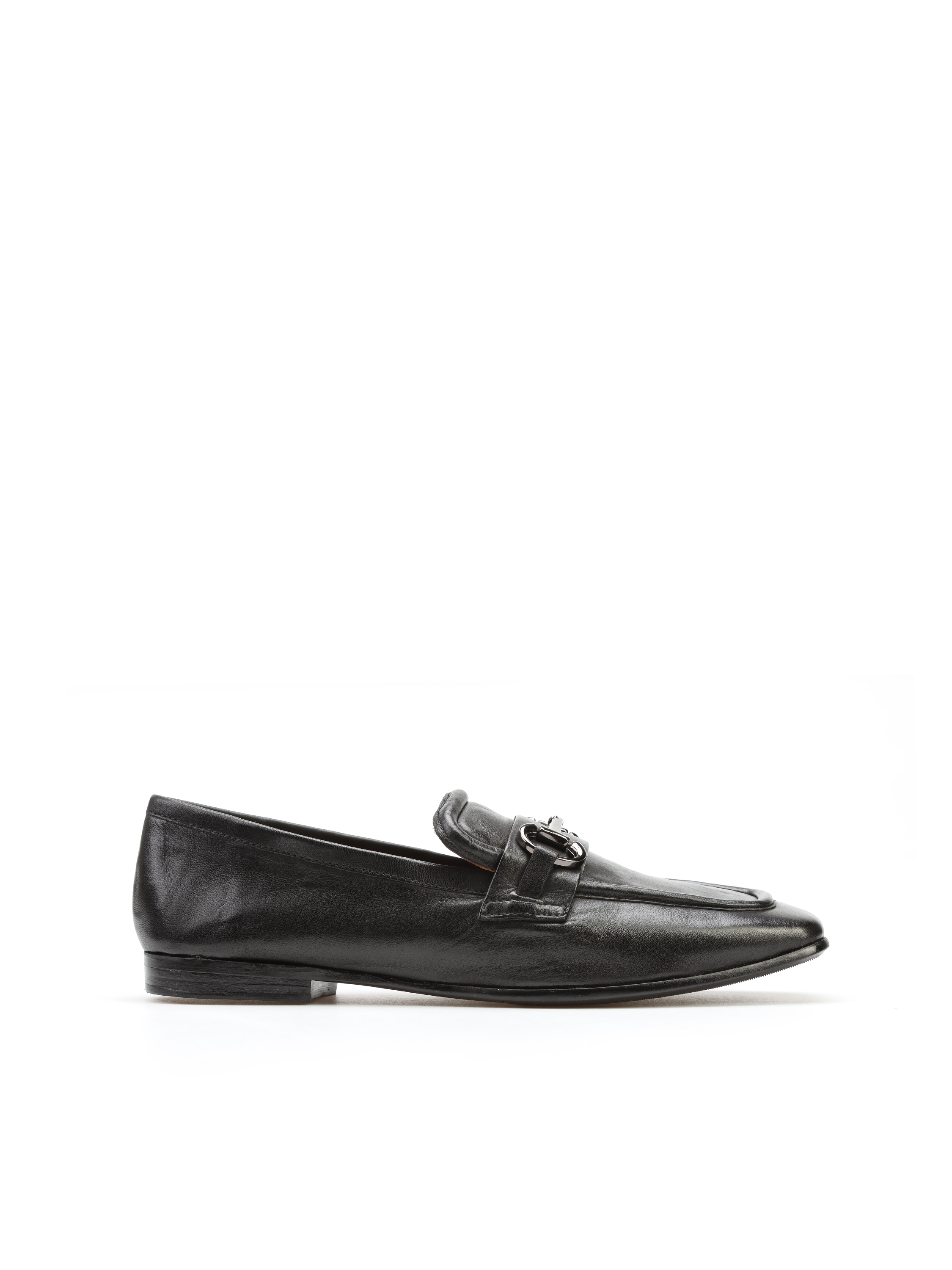 Mokasyny na płaskim obcasie to Trend nie tylko tego sezonu. Włoskie mokasyny wykonane są z naturalnej skóry. Cholewka w czarnym kolorze ozdobiona została metalową klamrą w stylu Gucci. Model z kwadratowym noskiem posiada wysoki język charakterstyczny dla fasonu lordsy.